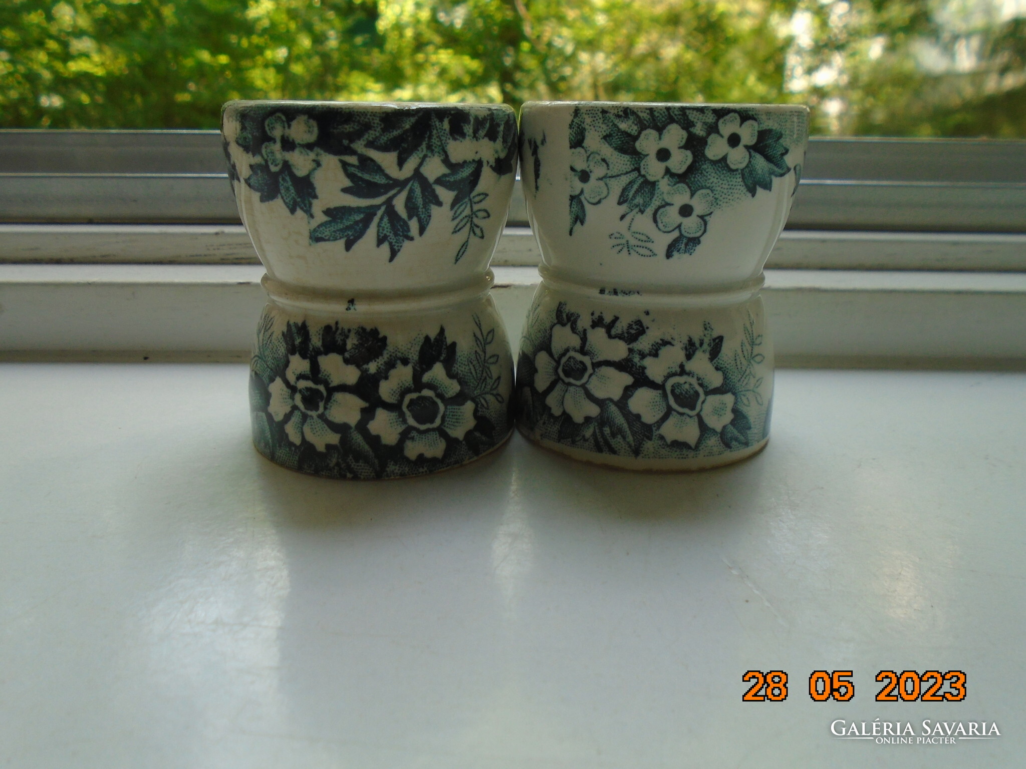 19.sz Saint-Amand manufaktúra Marie-Luise mintás fajansz COQUETIER DIABOLO tojástartó pohár 2 db