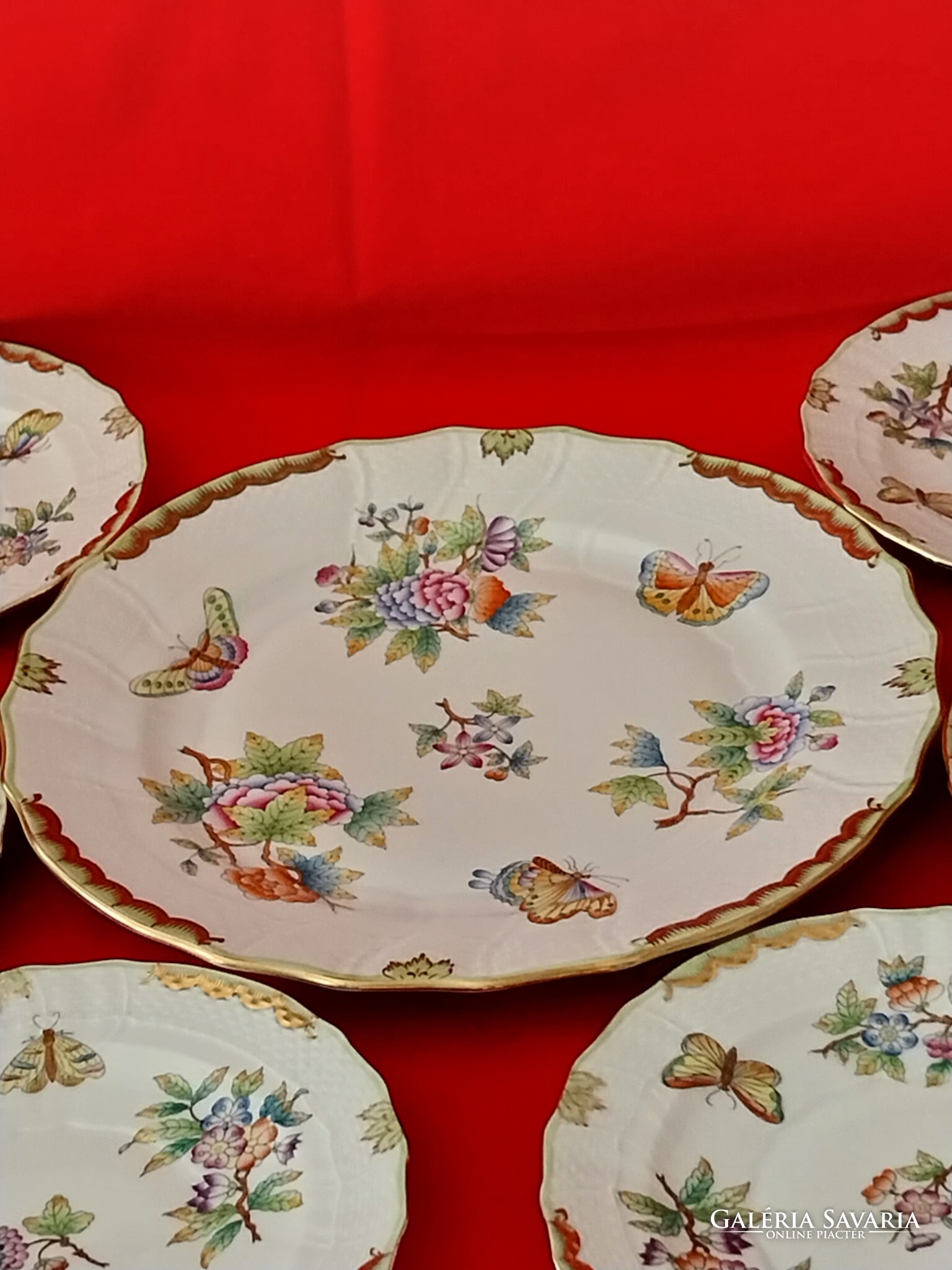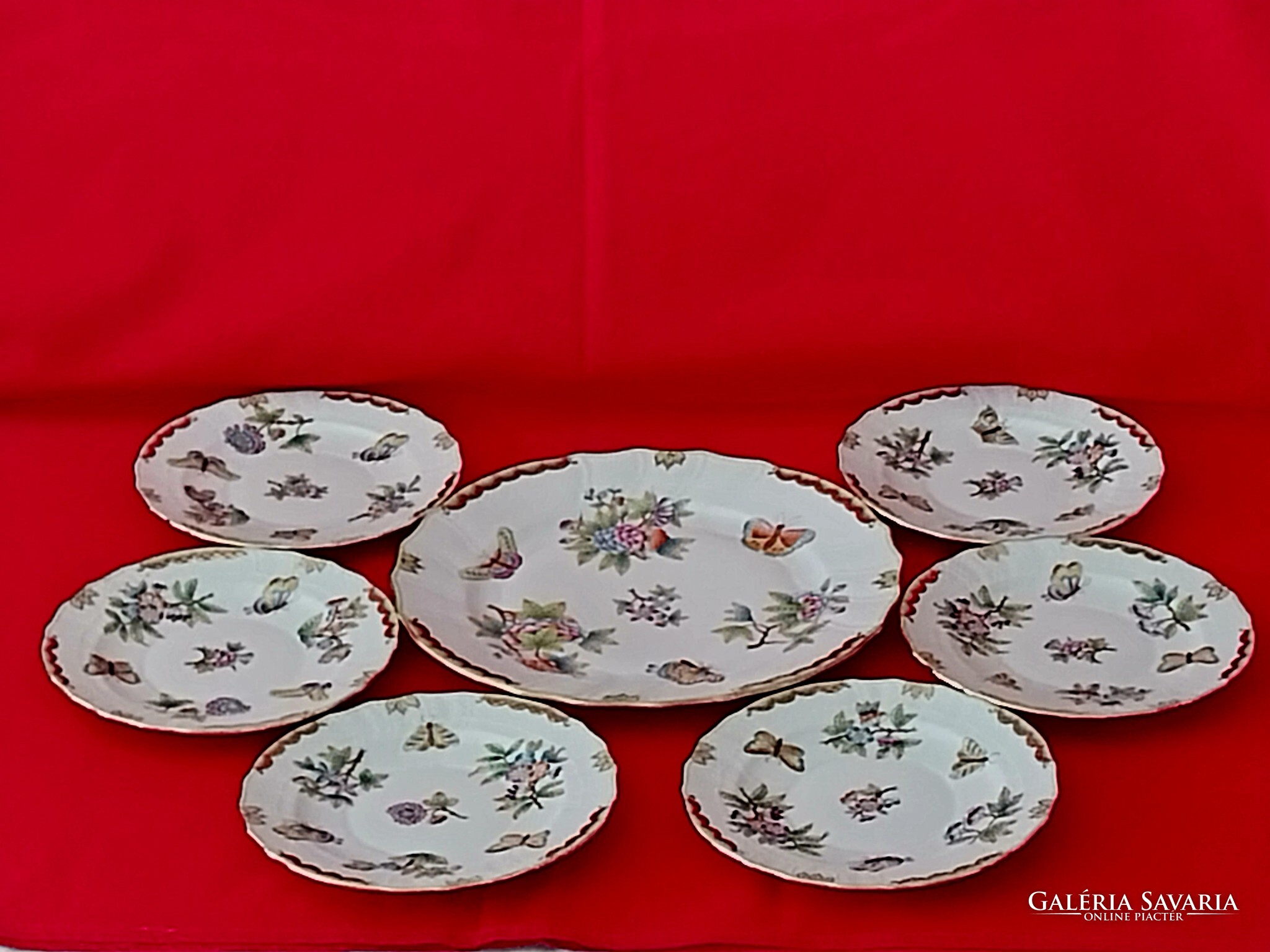 Herendi Viktória mintás 6 személyes 7 darabos süteményes készlet.
