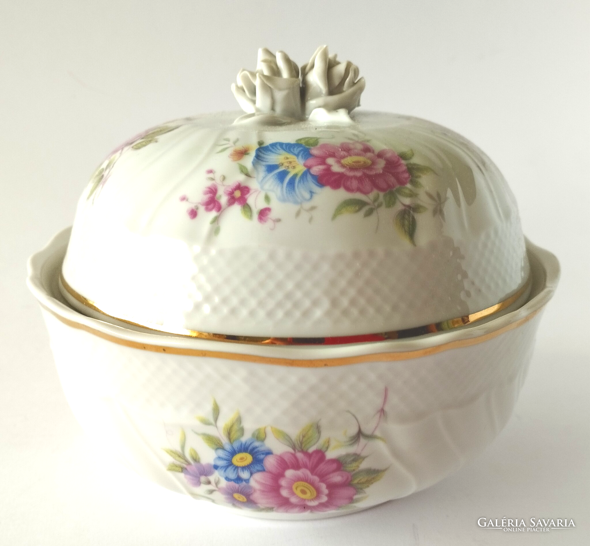 Hollóházi porcelán Pannónia - Hajnalka mintás nagy bonbonier,doboz hibátlan állapotban.