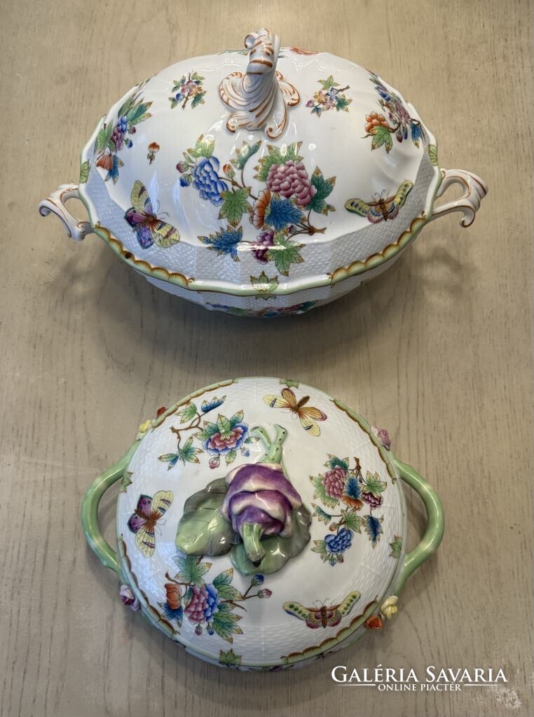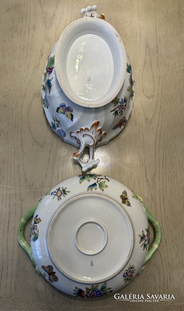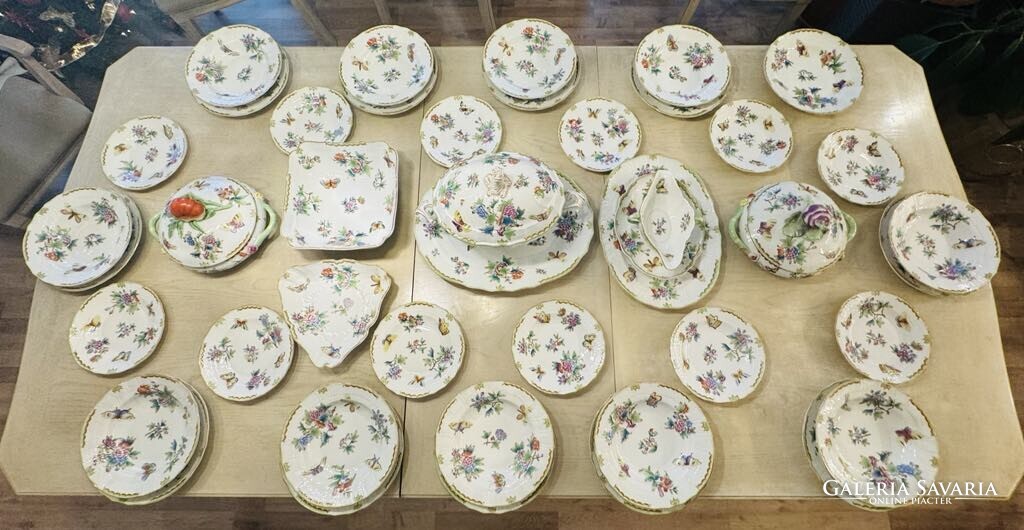 Ritkán fellelhető ,korának megfelelő szép állapotú Herendi Victoria királynő mintás rokályos étkészlet az 1900-as évekből!Extra kiegészítő tálakkal!
