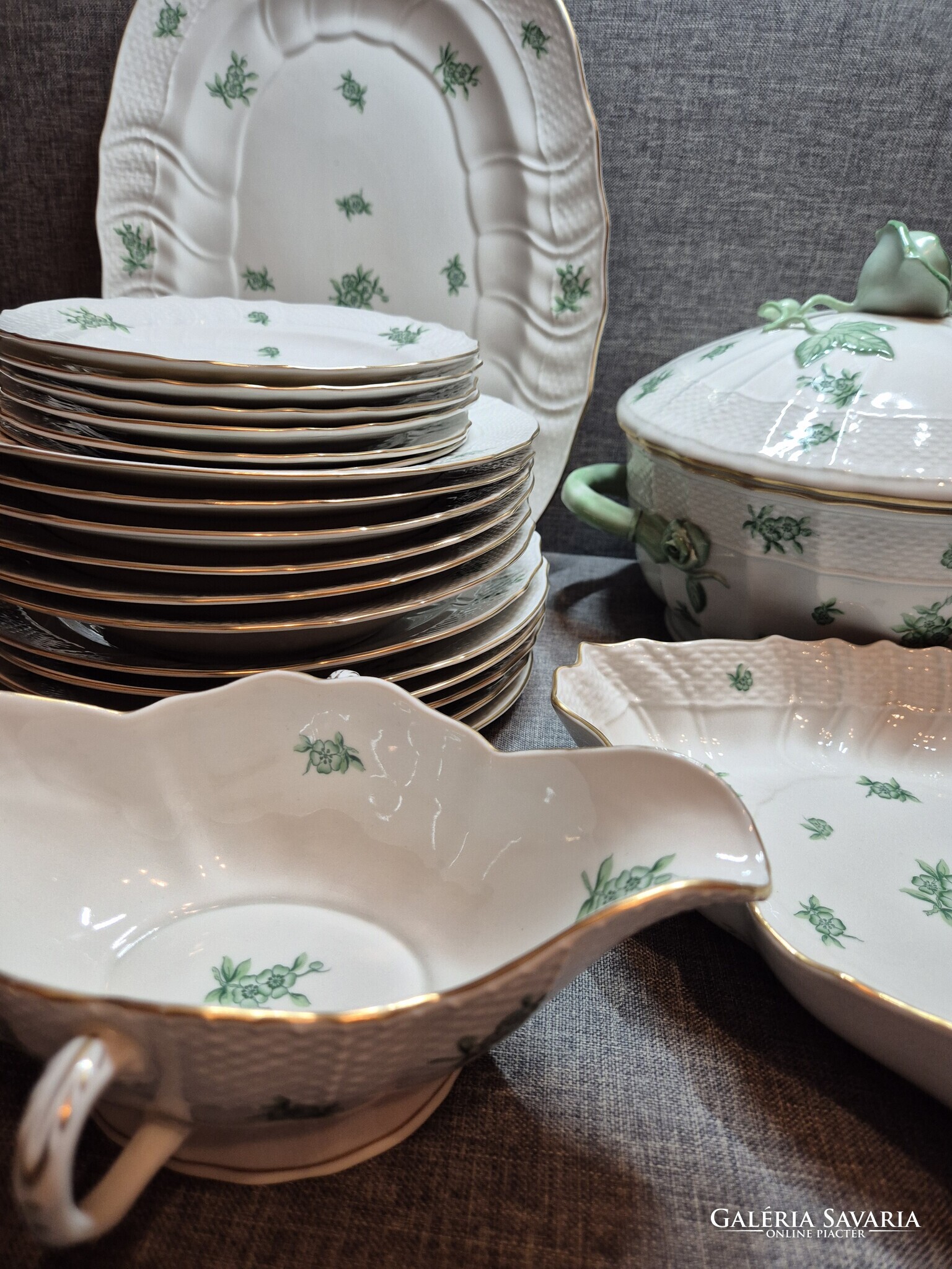 Herendi zöld "PC"(POMMIER CHINOIS) mintás 6 személyes étkészlet