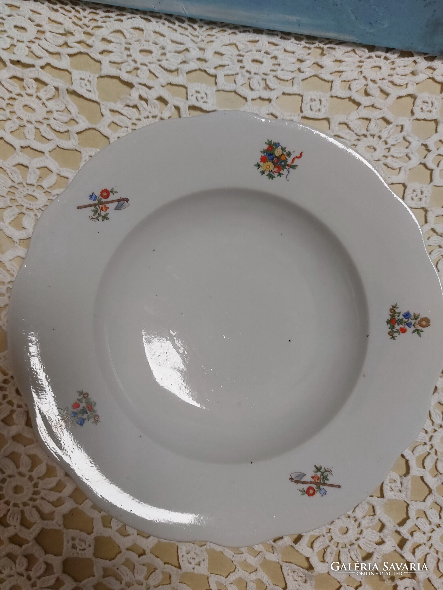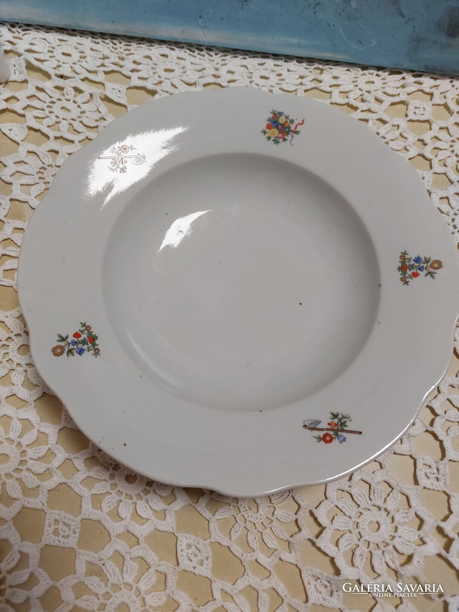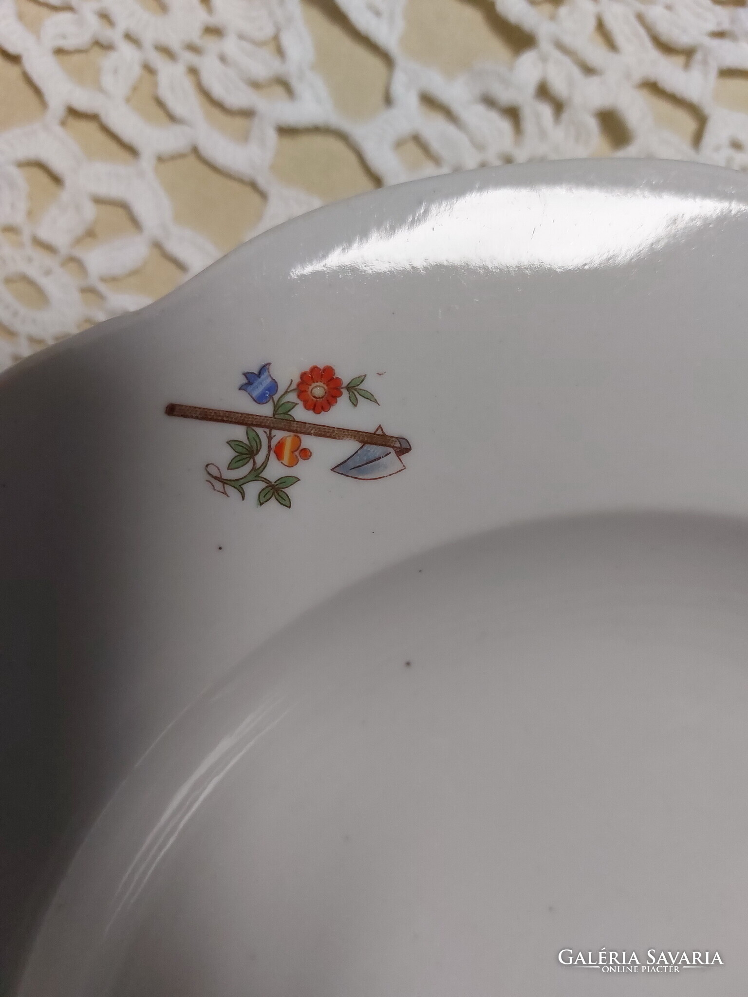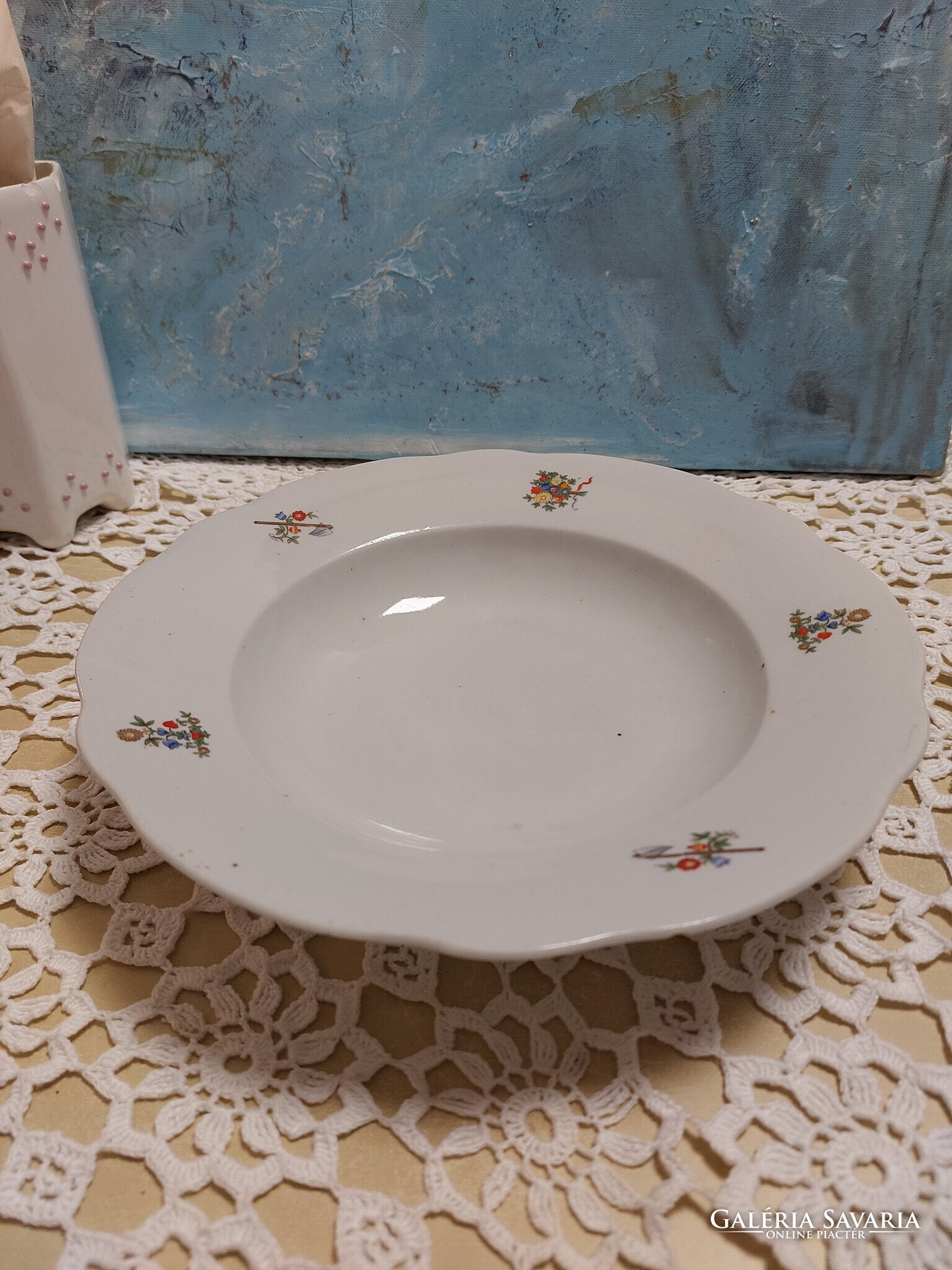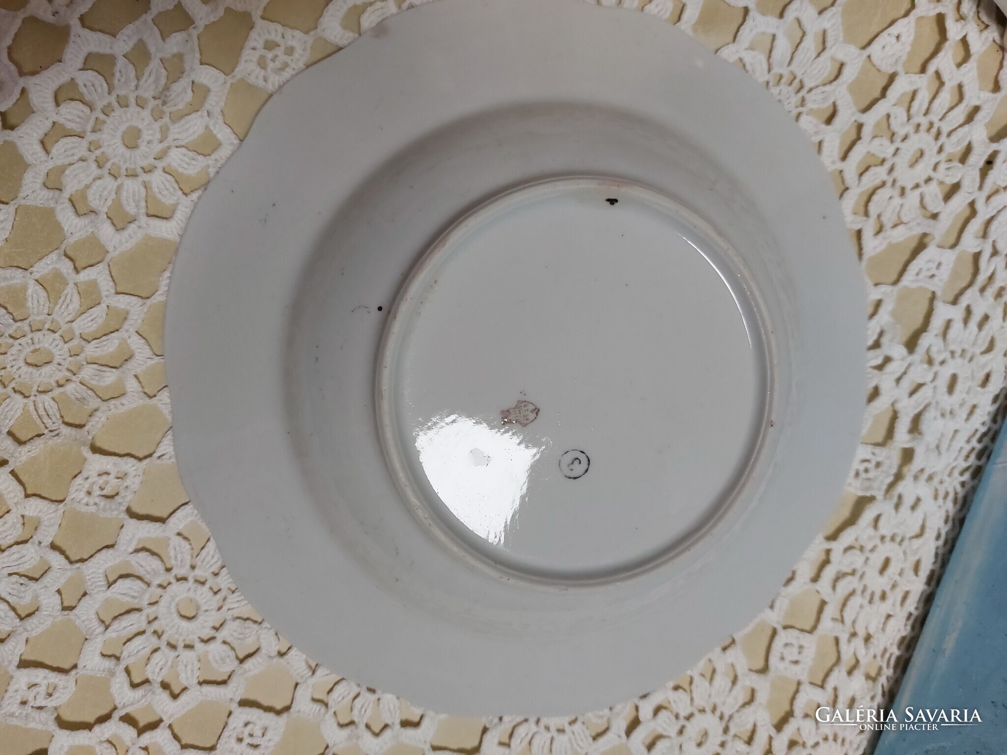 Zsolnay, régi ritka mély tányér, szép kapa-virág mintás