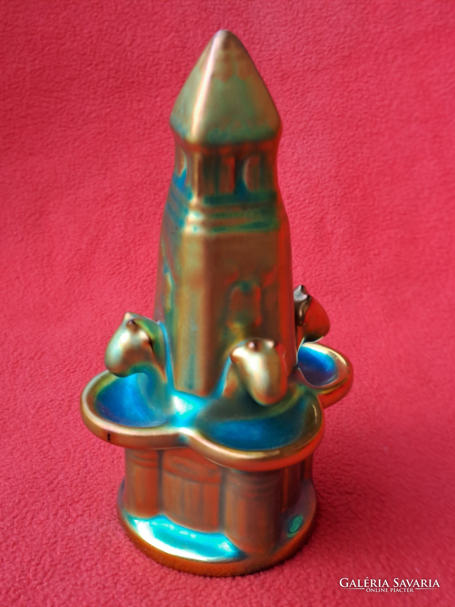 Pajzspecsétes, gyönyörű színekben pompázó Zsolnay eozin szökőkút