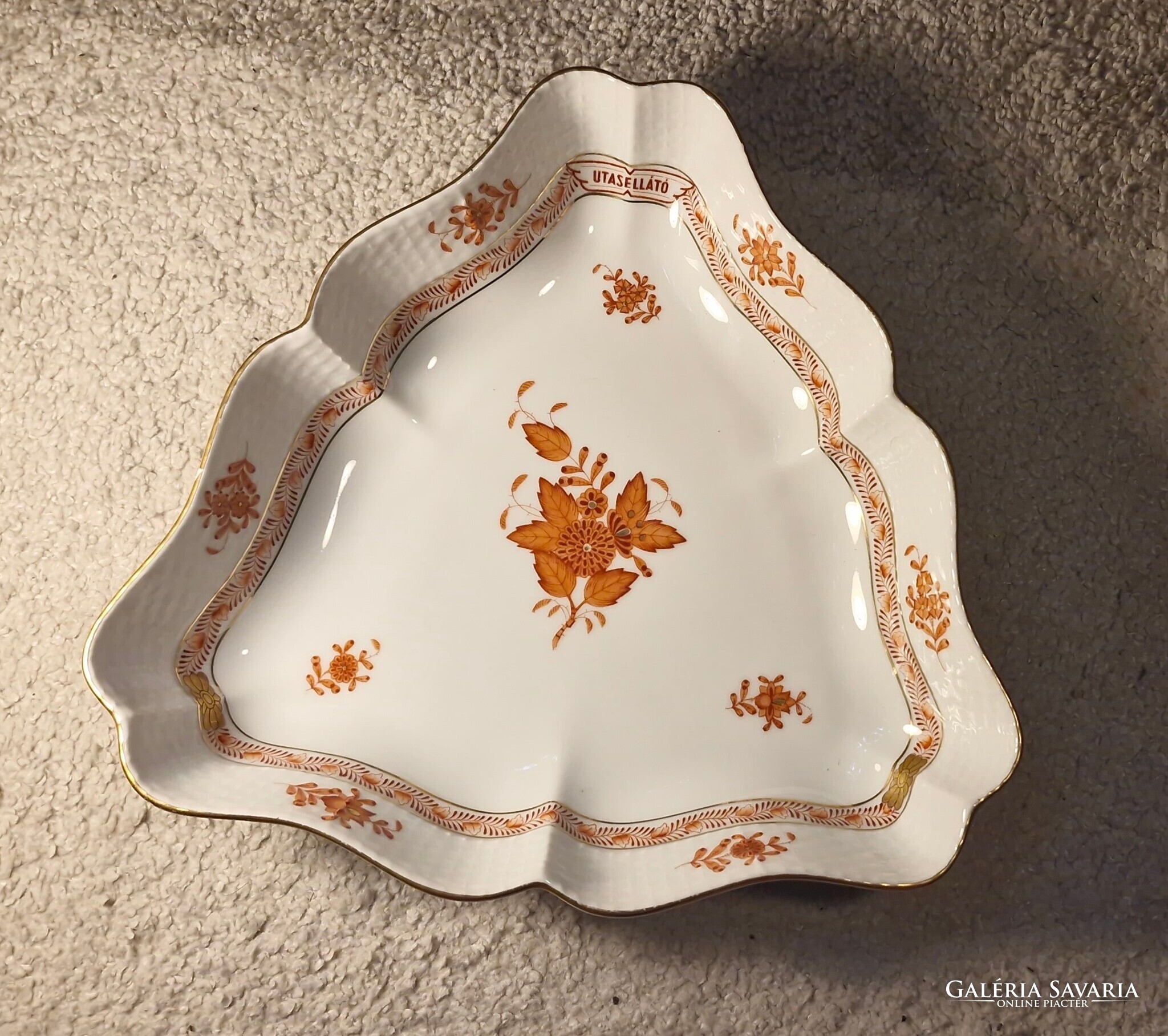 Herendi Apponyi orange Utasellátó salátástál, 1976-os jubileumi kiadás