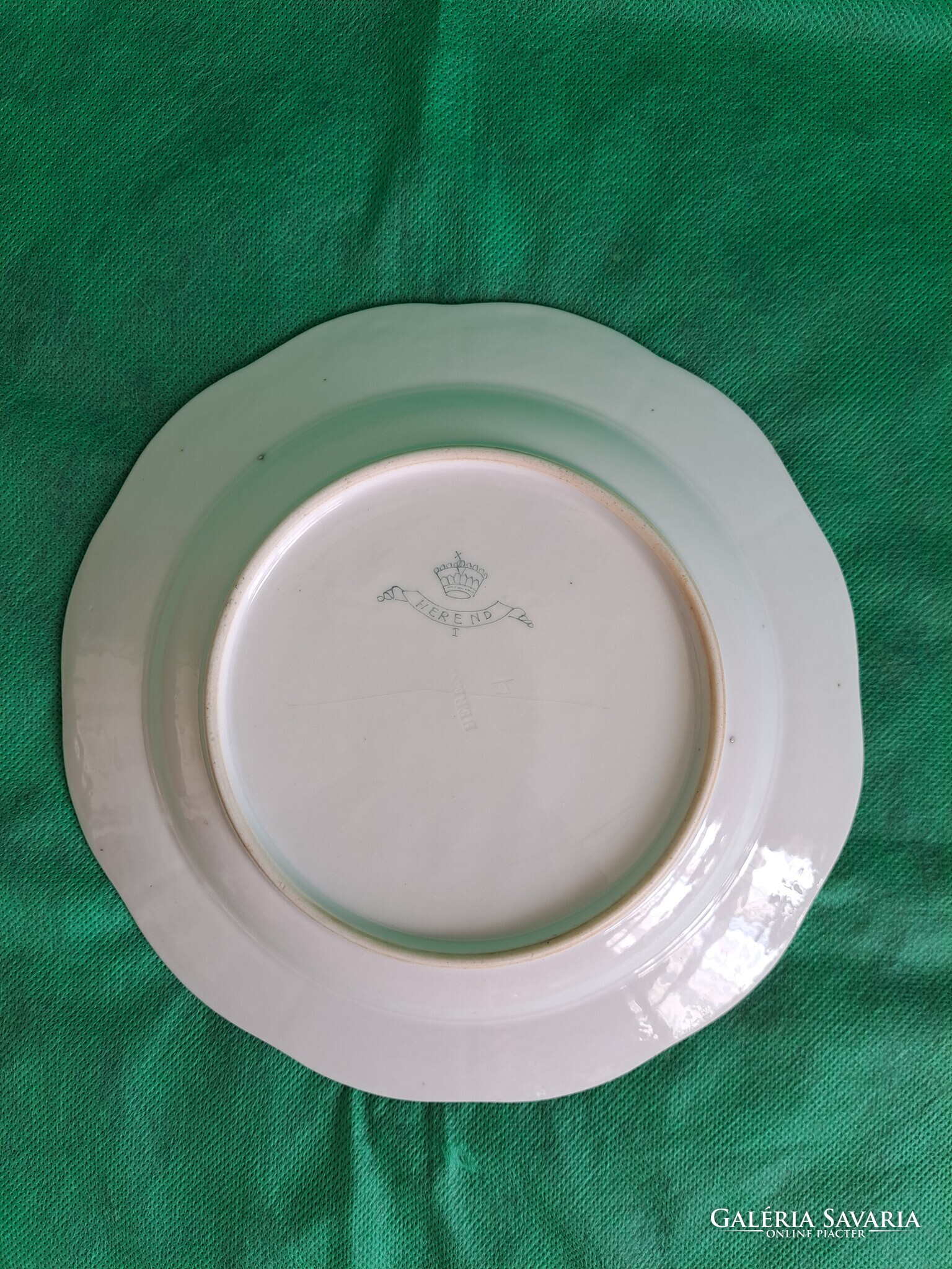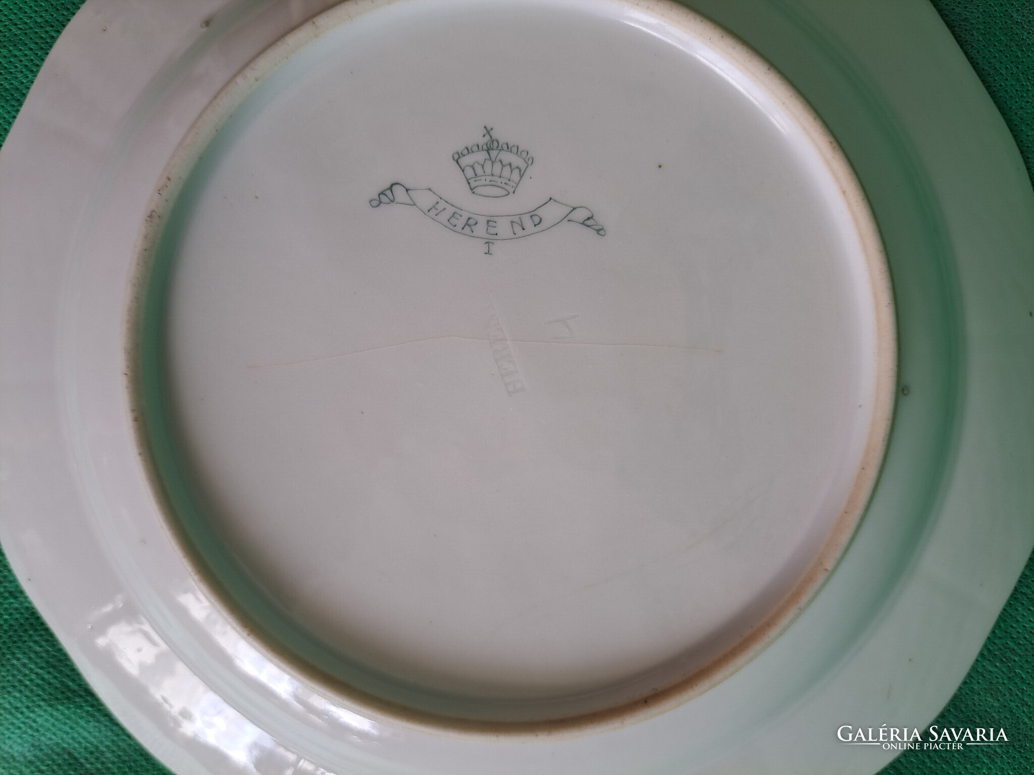 20,5 cm átmérőjű. Párját is árulom. Jelzett, szalag-koronás Herendi márkajegy és HEREND masszába nyomva.