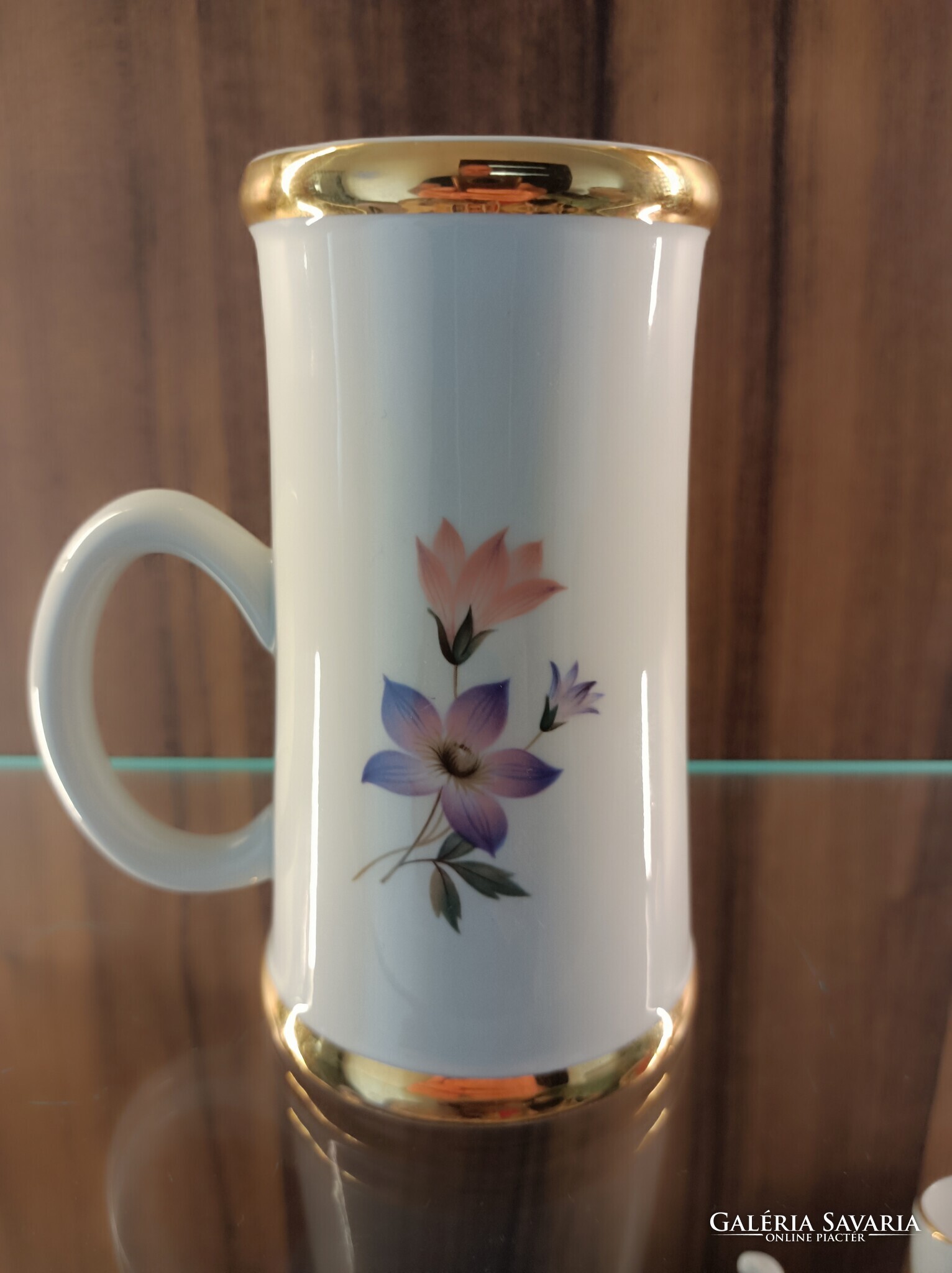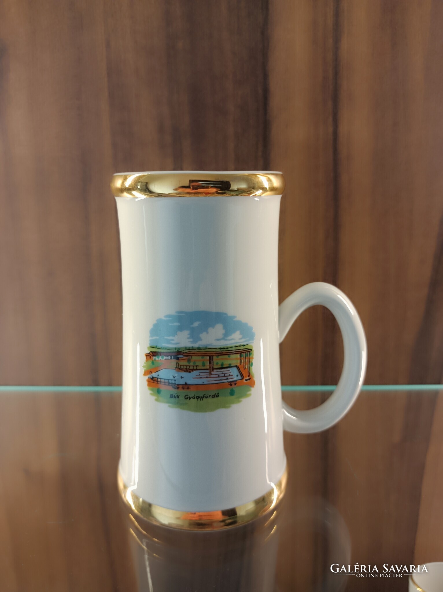 HOLLÓHÁZI Porcelán Korsó.Bük felirattal. Kézzel festett , Aranyozott. Hibátlan állapotban. Jelzett.