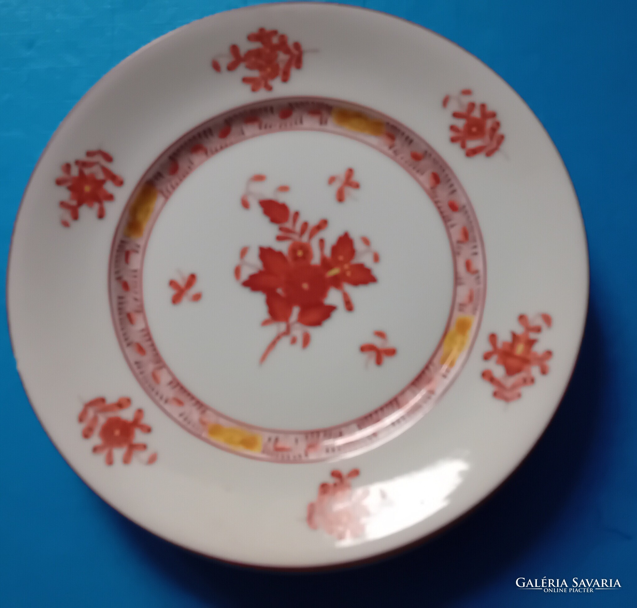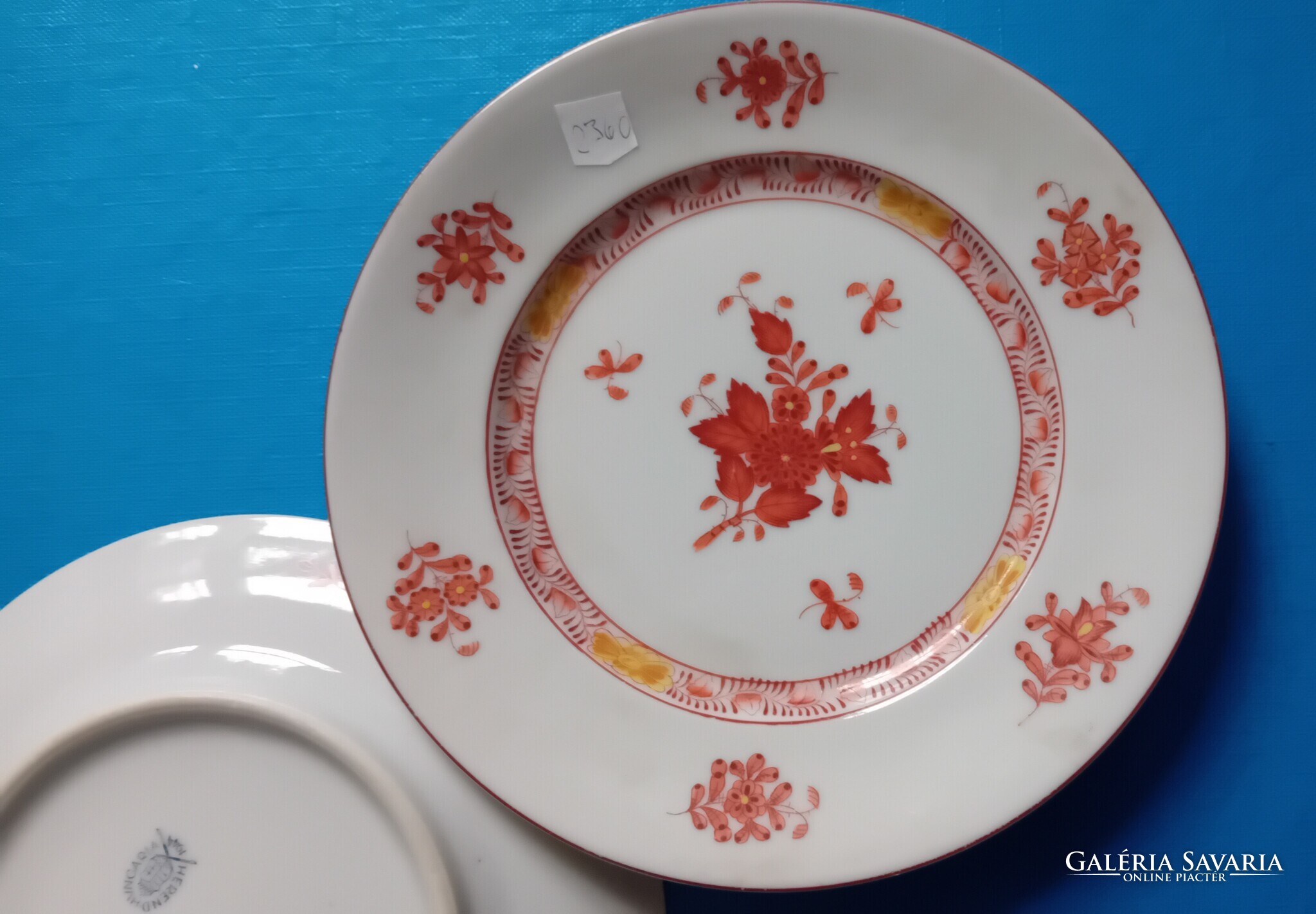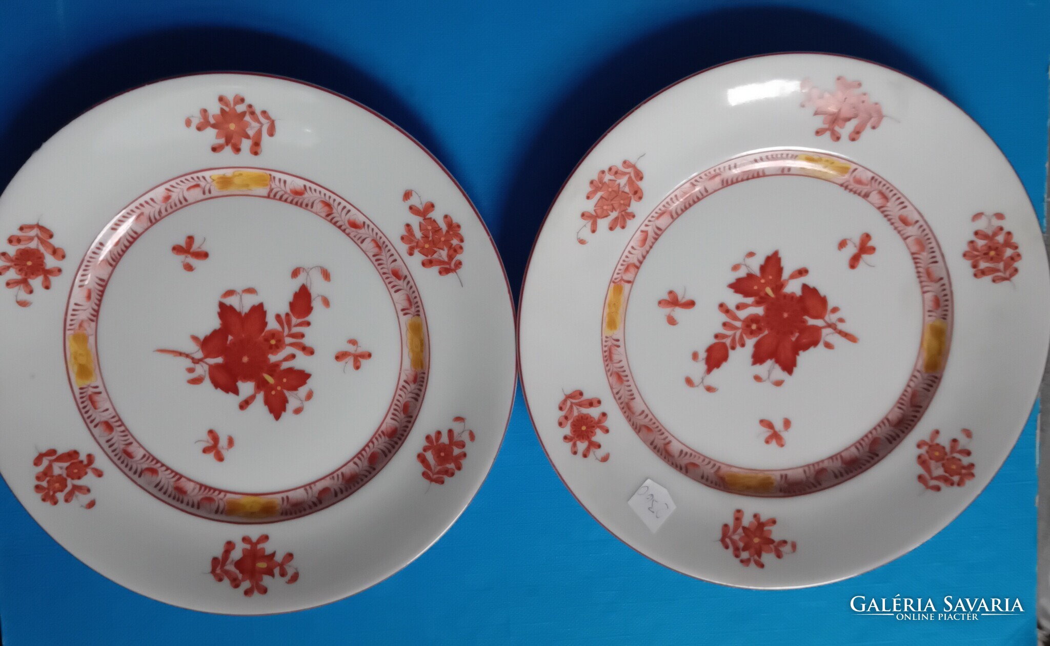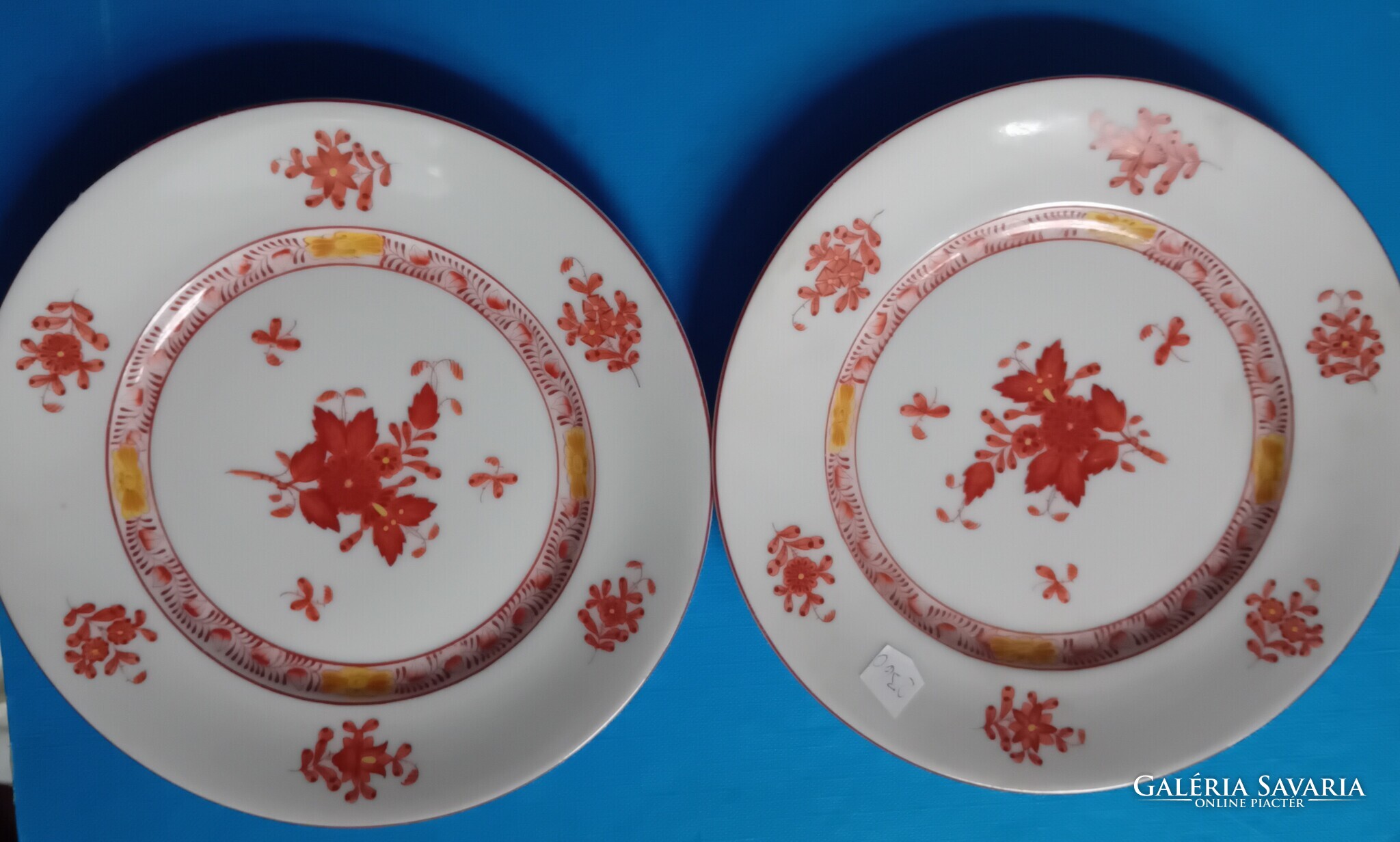 2 Herendi süteményes tányér , tégla színű Apponyi mintával. A tányérok átm.: 15,2 cm. Az alján I. osszt. márkajelzés. Az egyik tányér peremén pici csorbulás van. (fotók szerint)