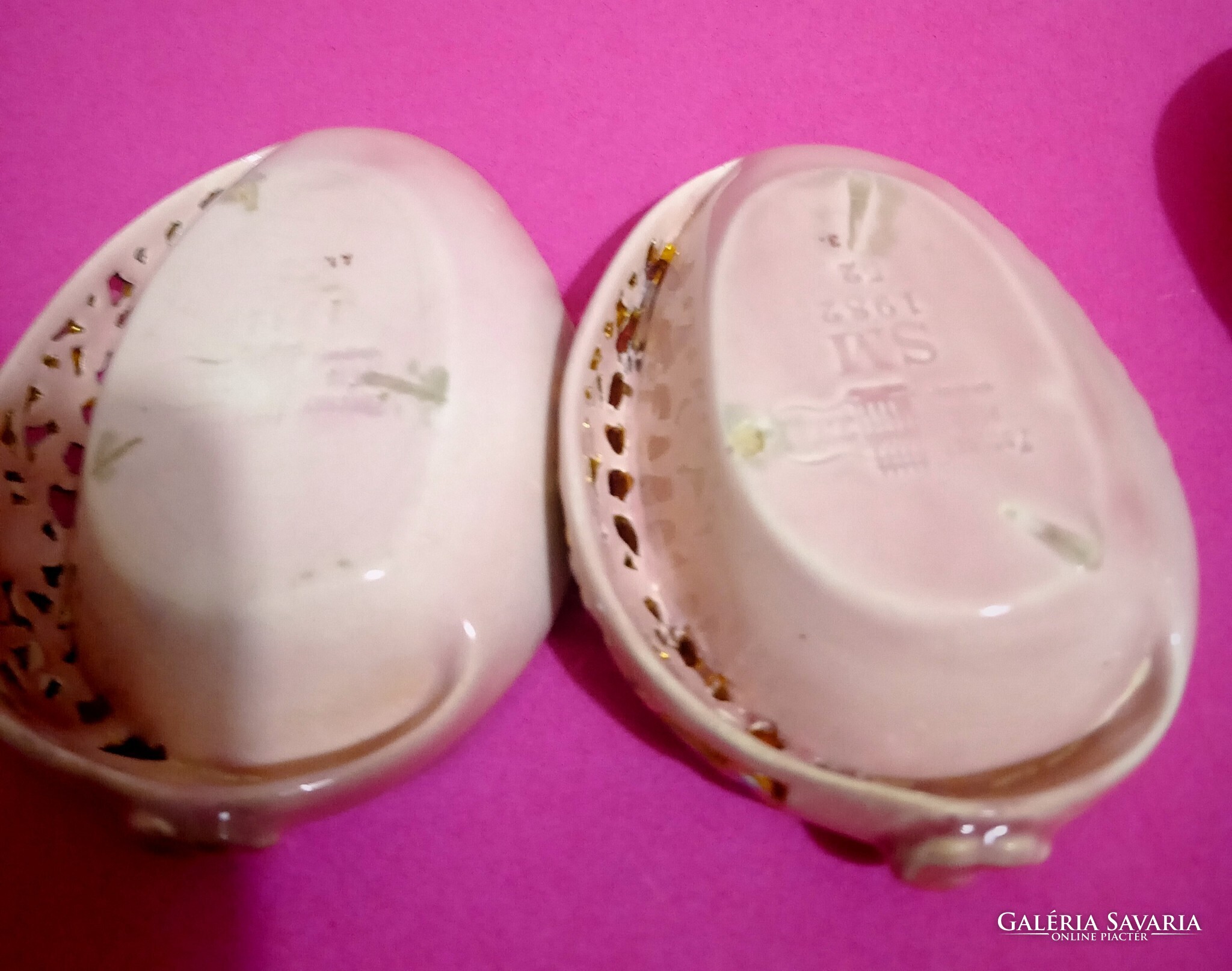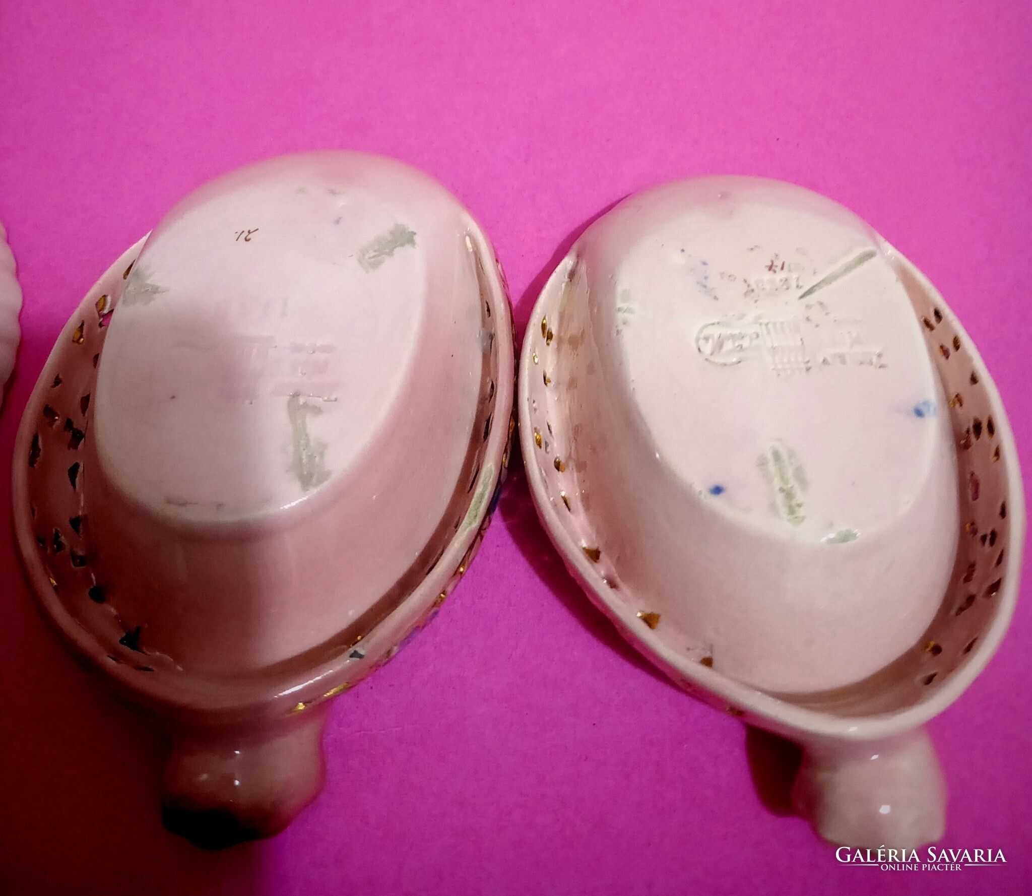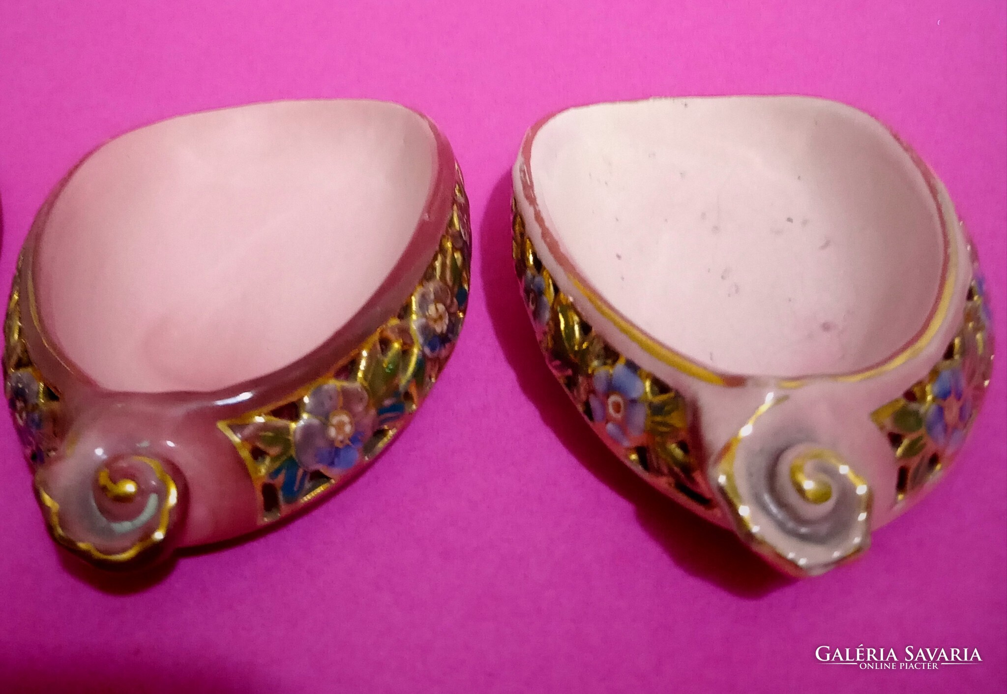Zsolnay Antik családi pecsétes majolika pink áttört tálkák