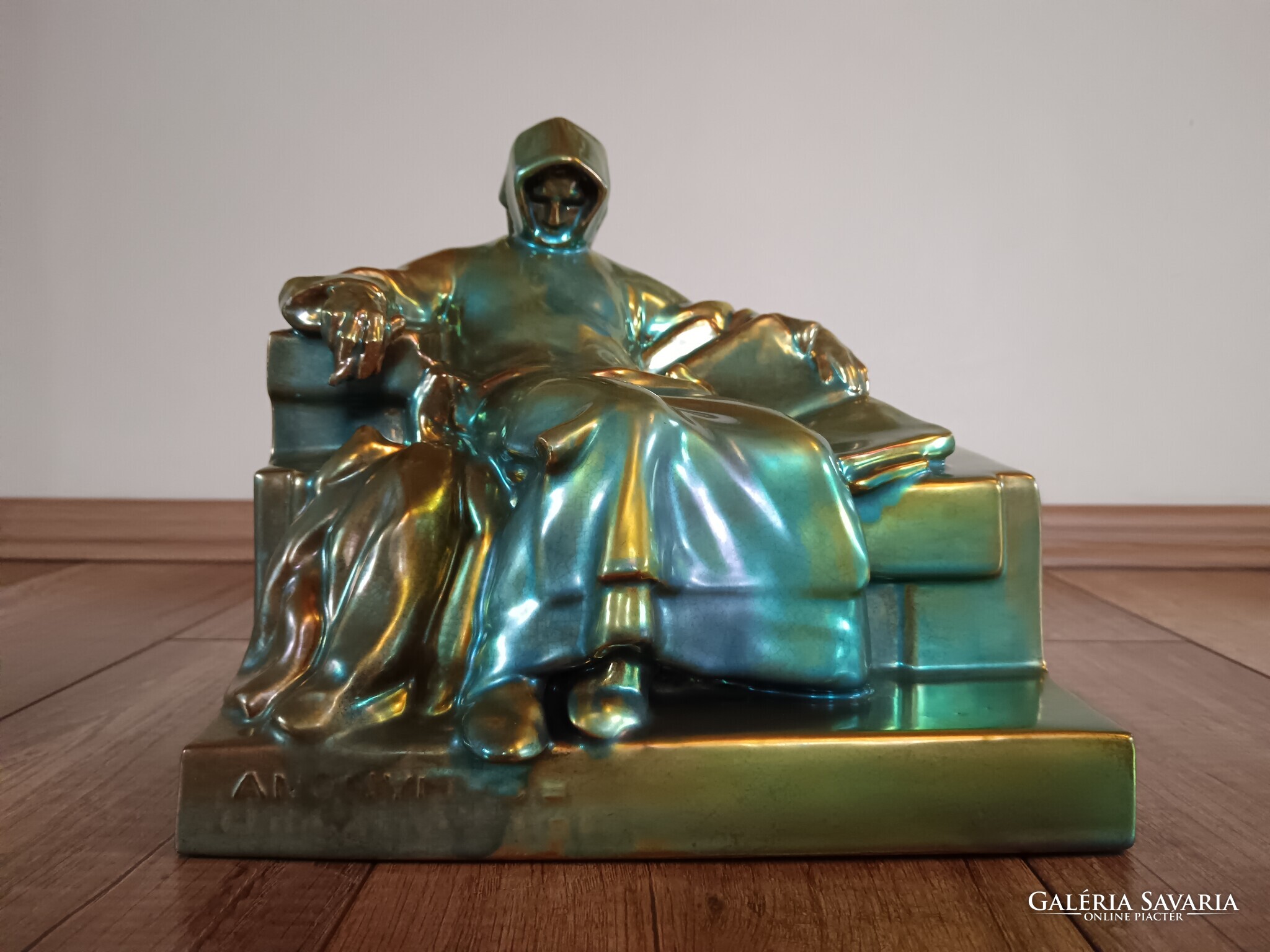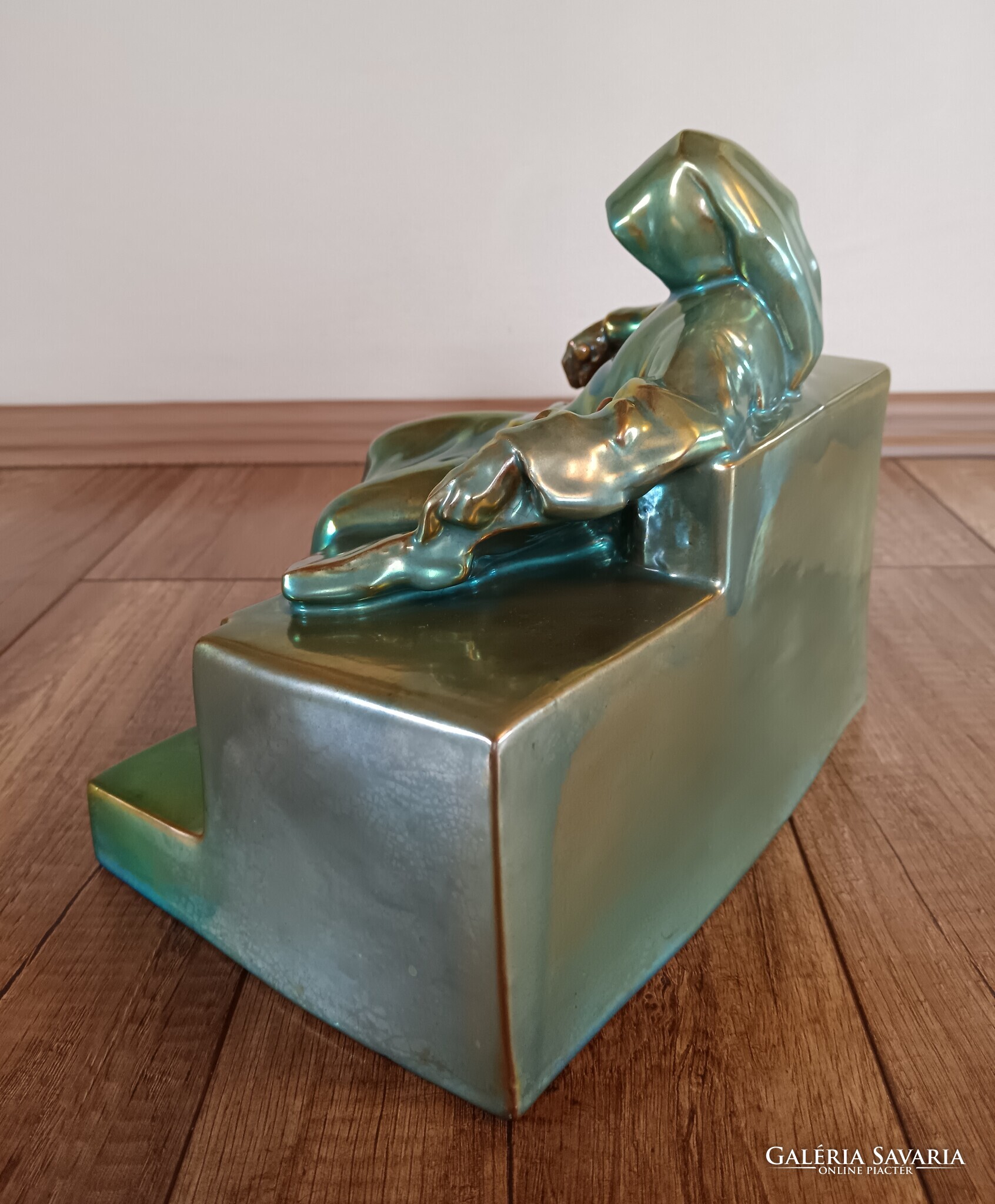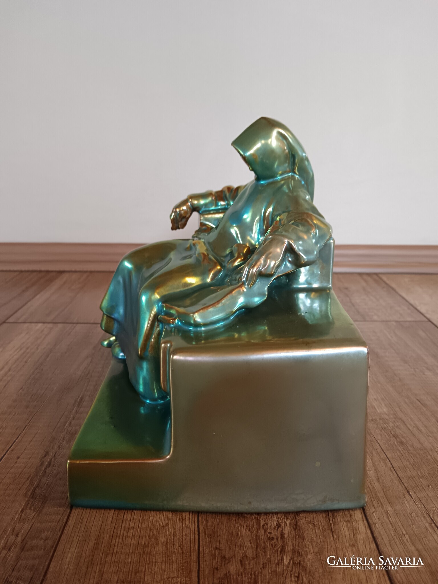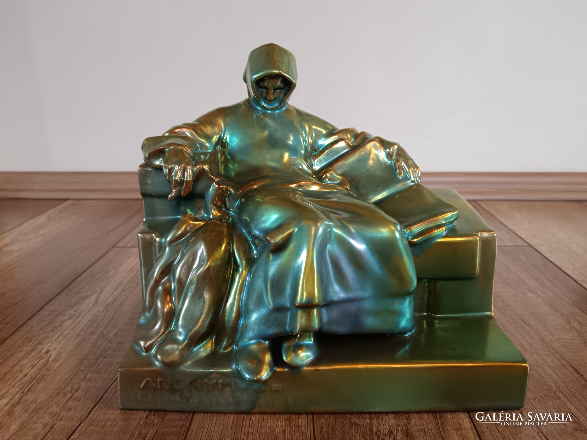 Antik Zsolnay eozin mázas Anonymus figura szép, hibátlan állapotban eladó!