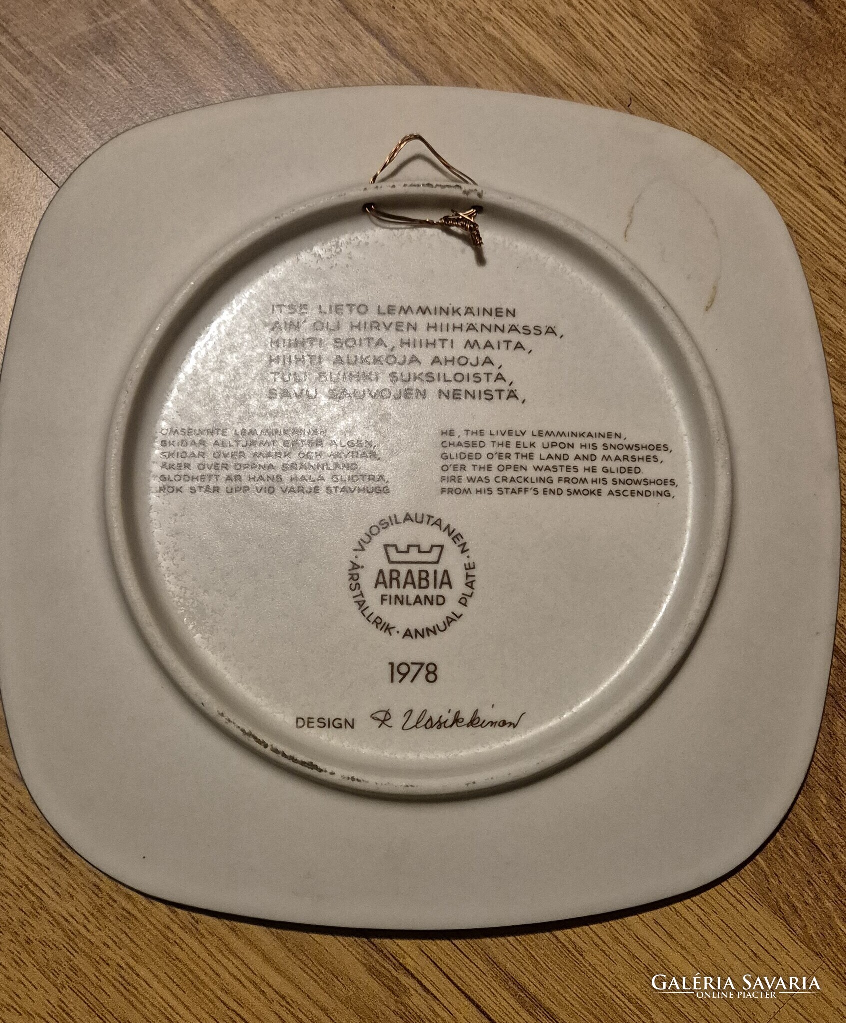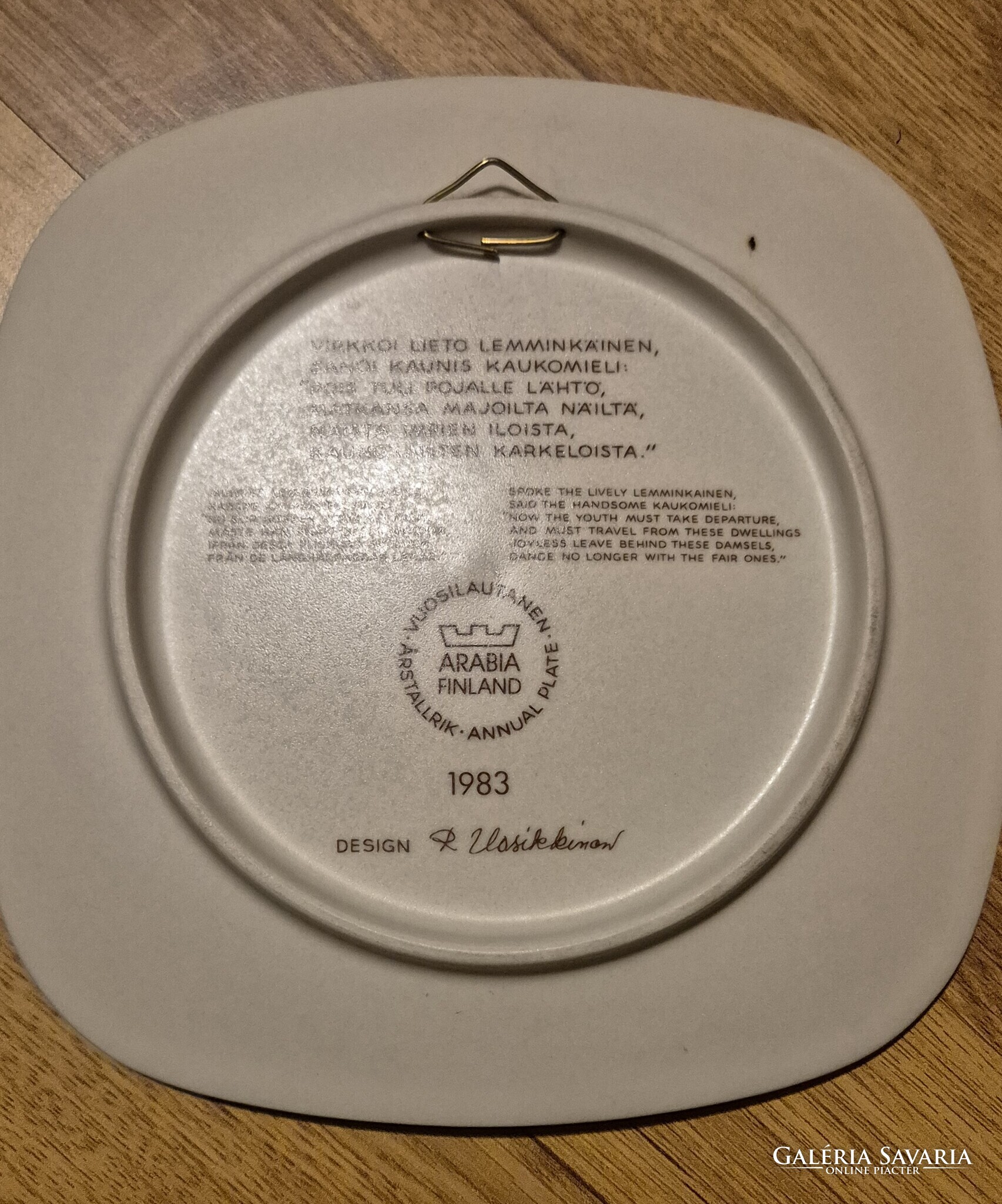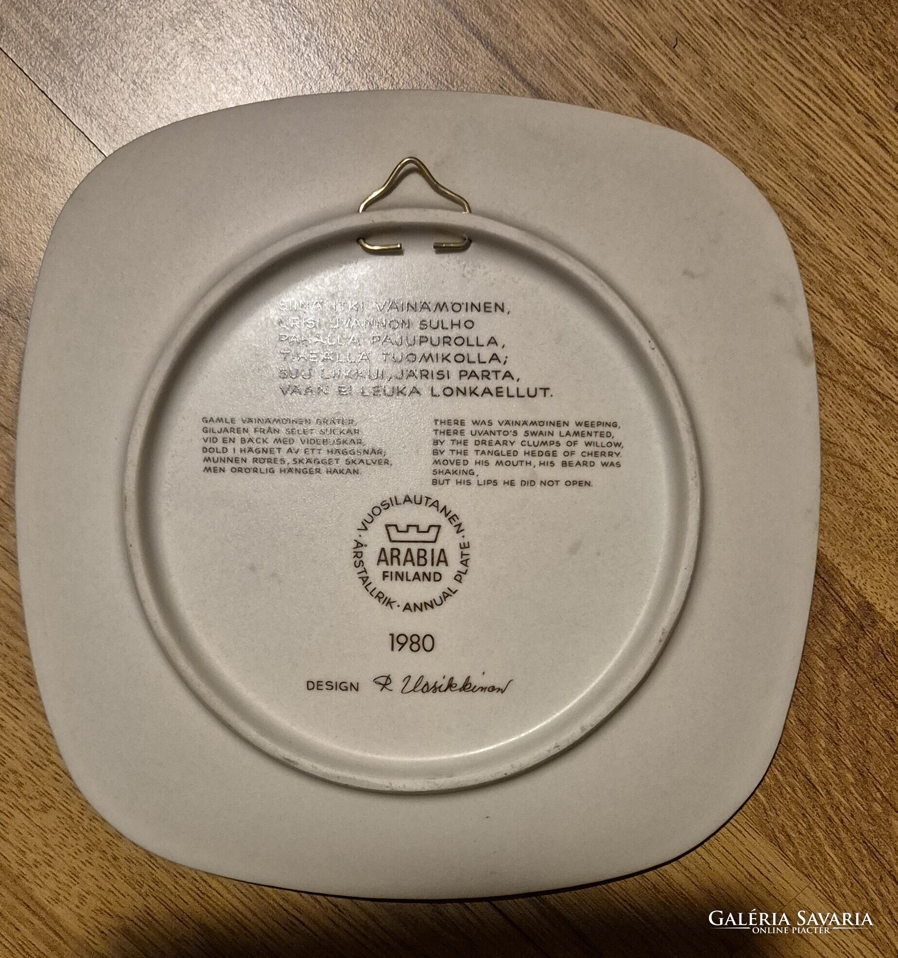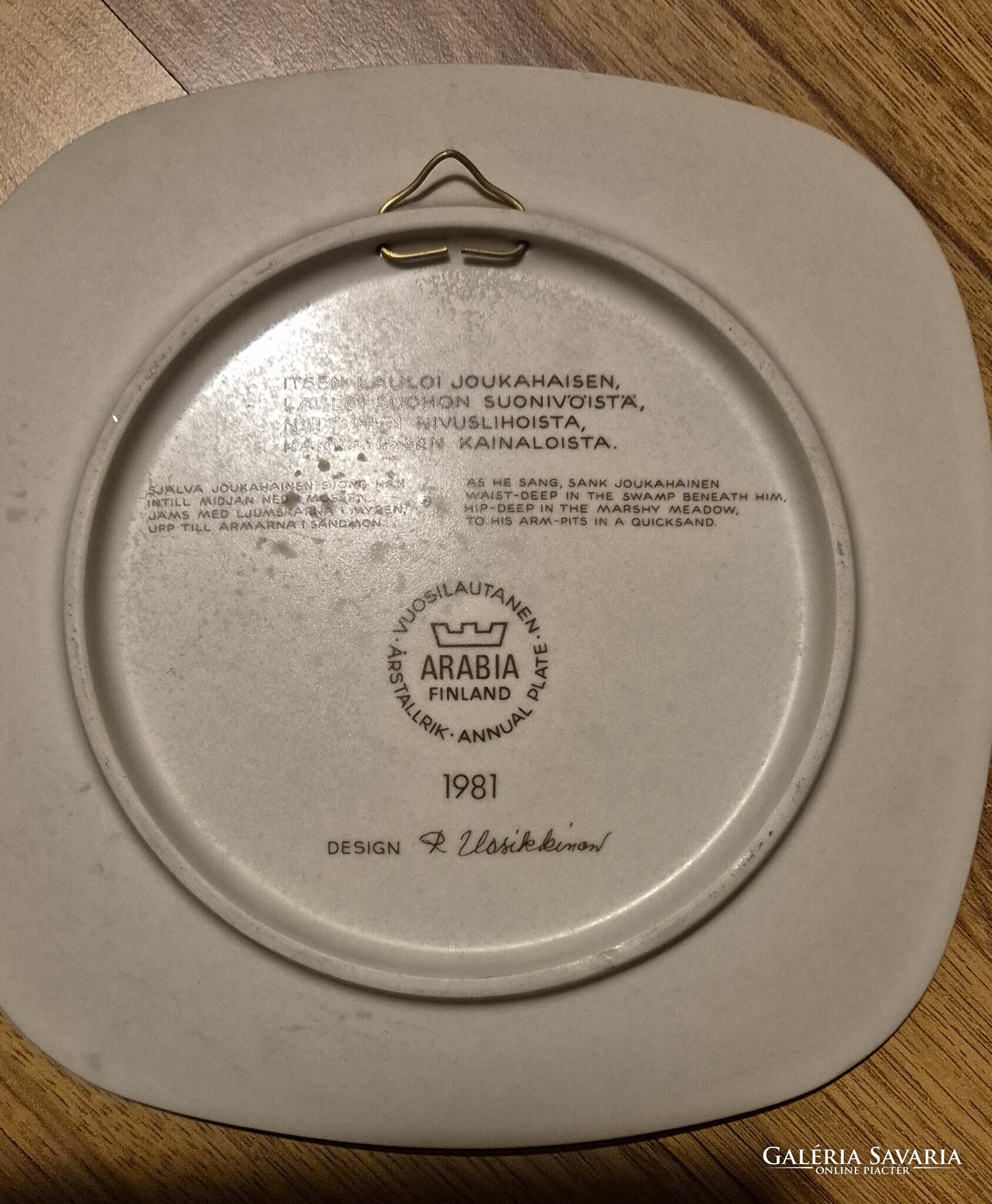 A hátoldalon Kalevala-idézet található finn nyelven, valamint angol fordításban.Tervező: Raija Uosikkinen.Eredeti falitányér, évszámozott kiadás, megkímélt állapotban.