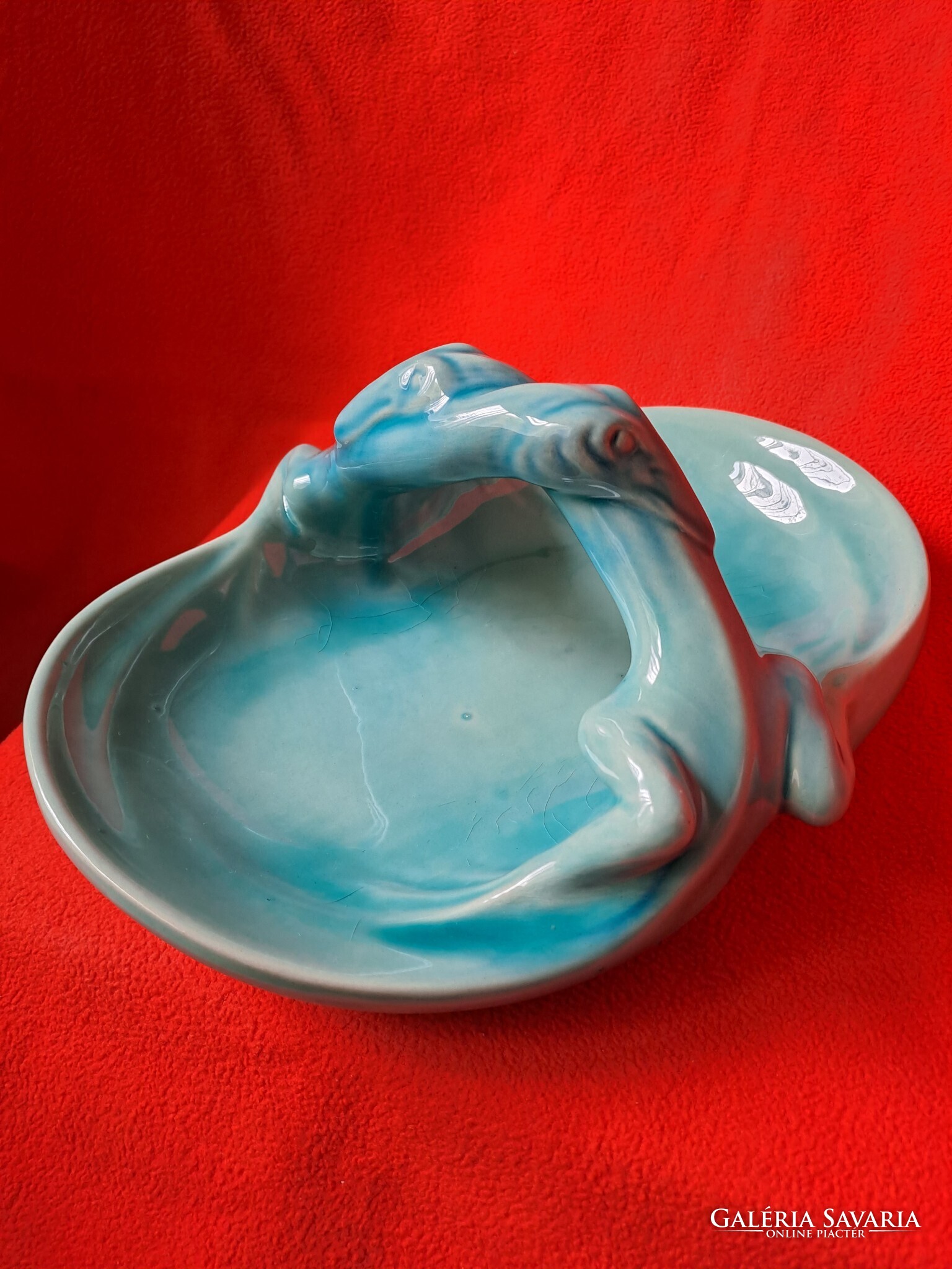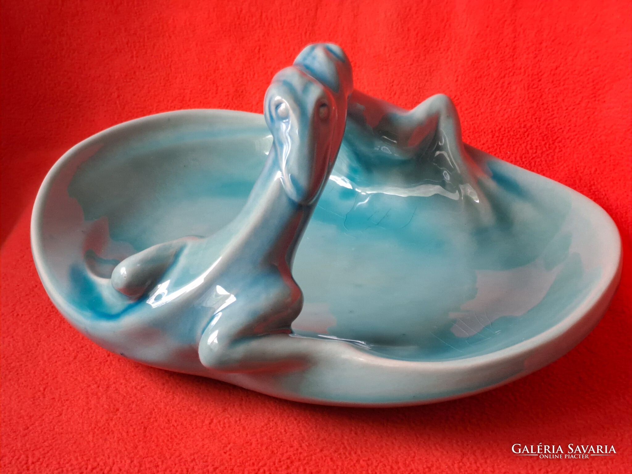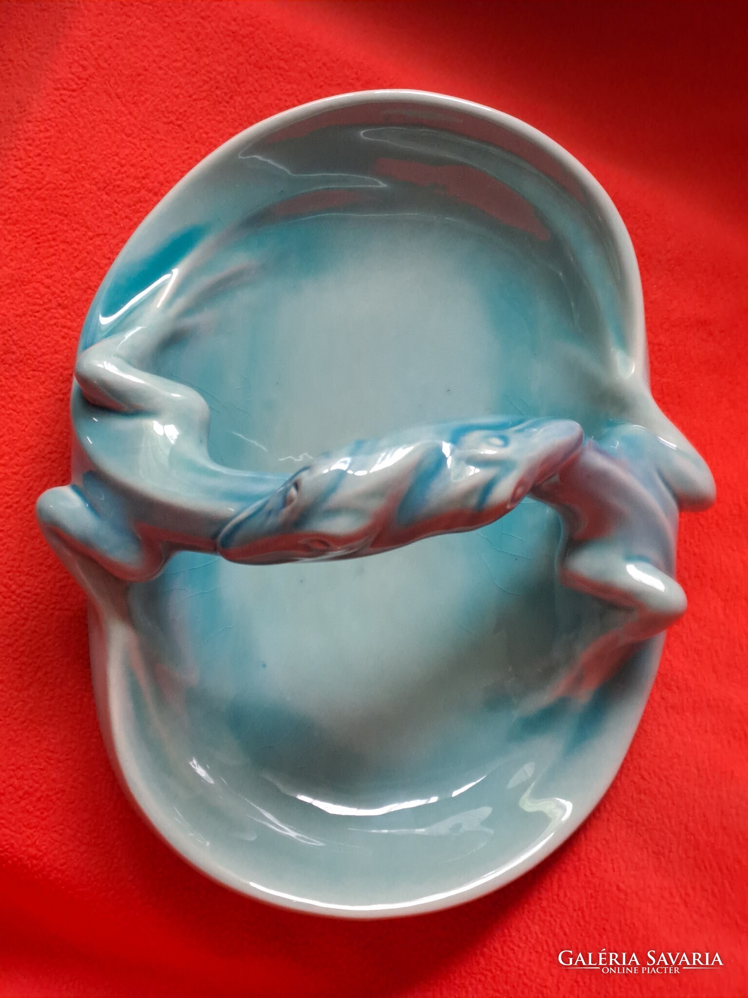 Hibátlan Zsolnay (eozin) alapmázas sárkányfogós - gyíkos tál