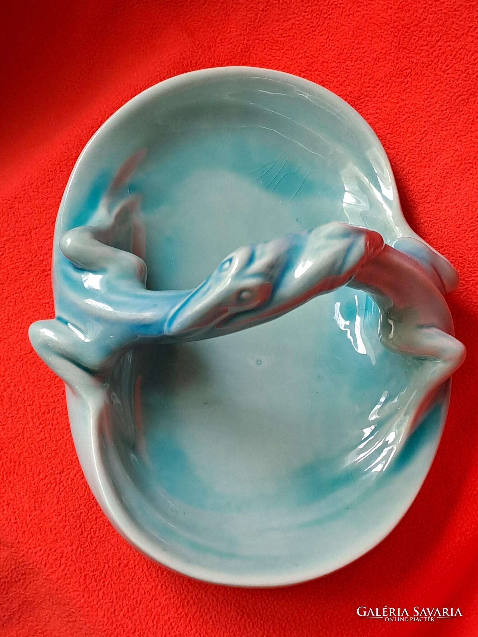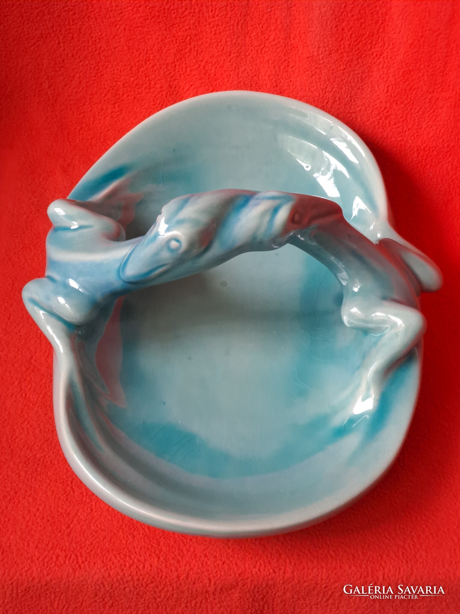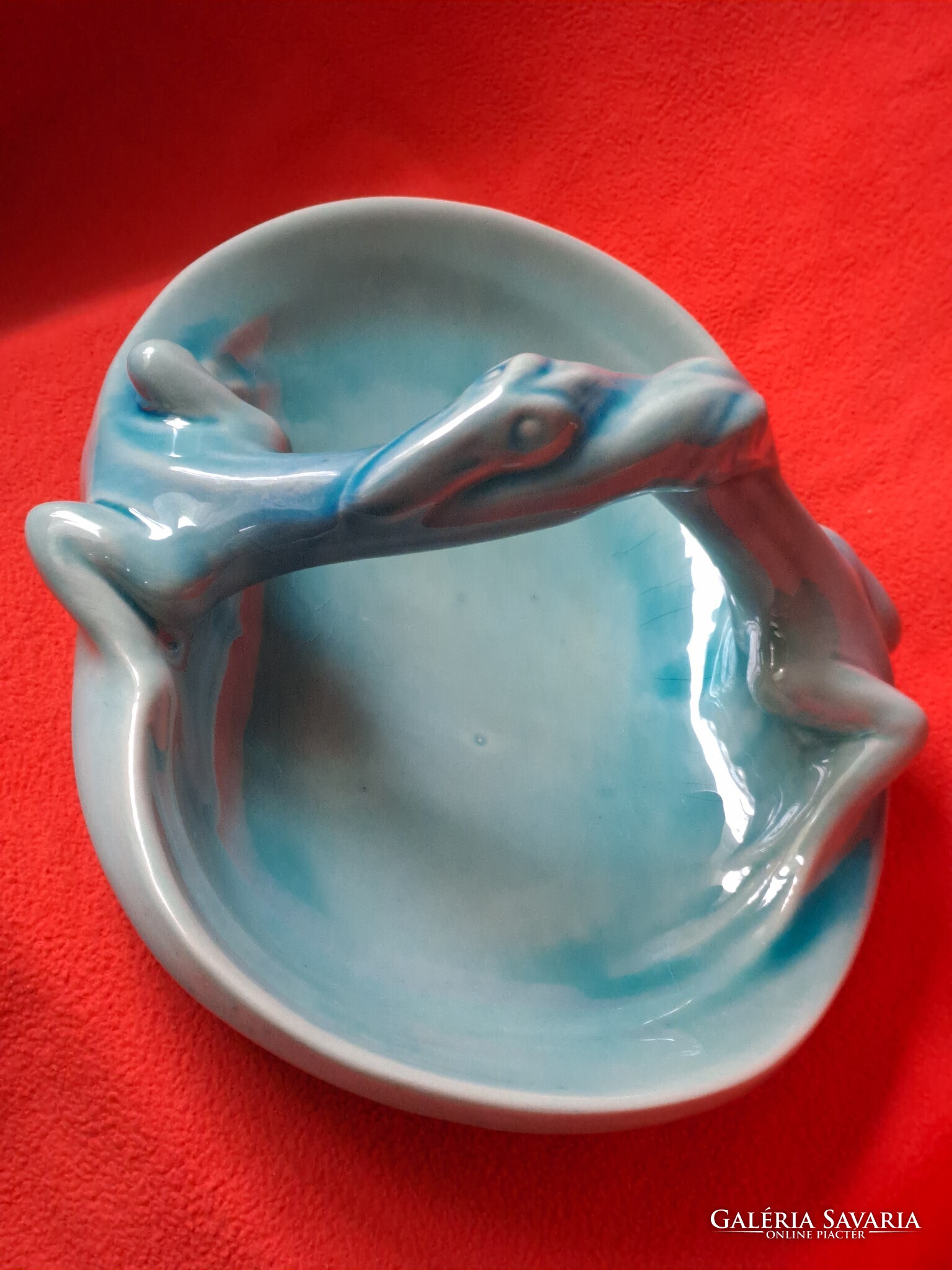 Hibátlan Zsolnay (eozin) alapmázas sárkányfogós - gyíkos tál