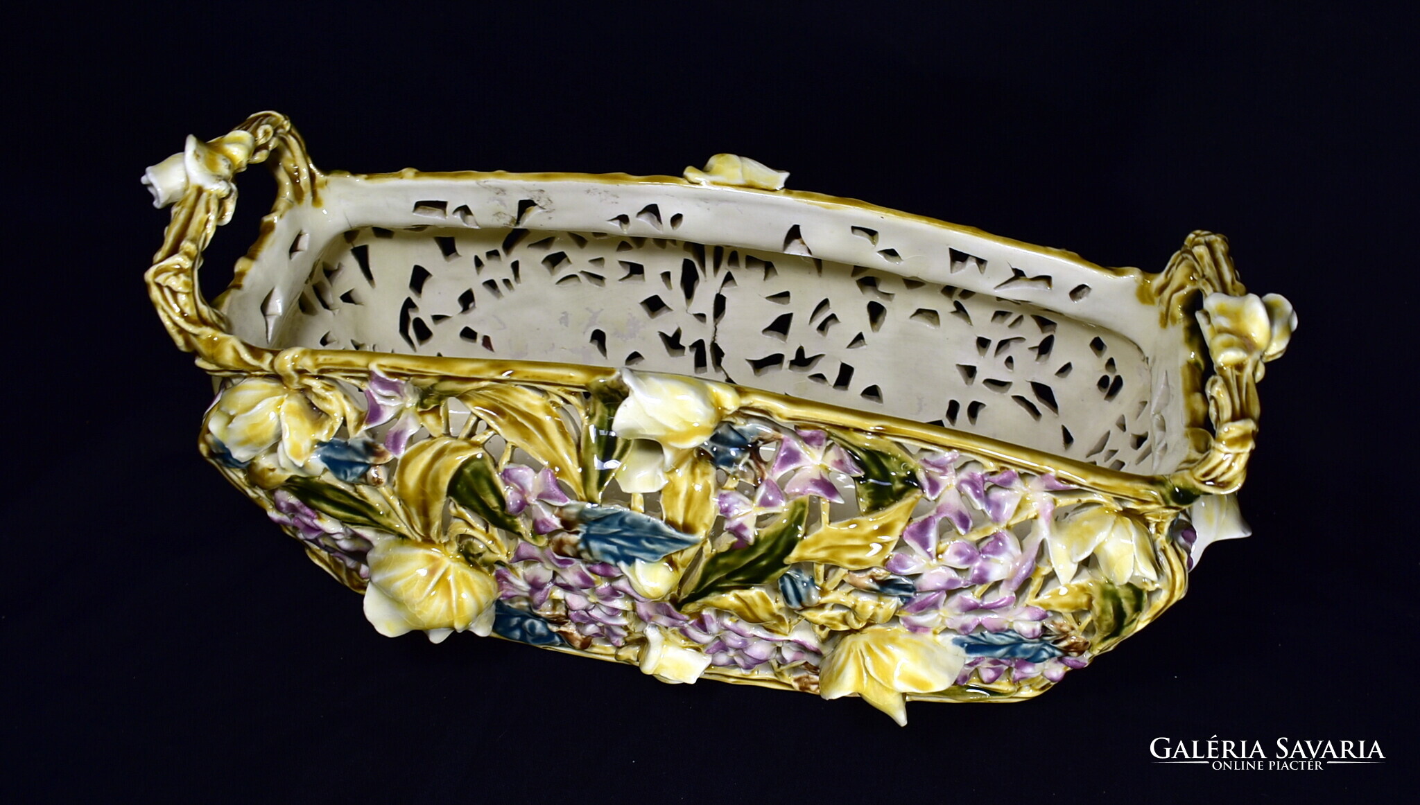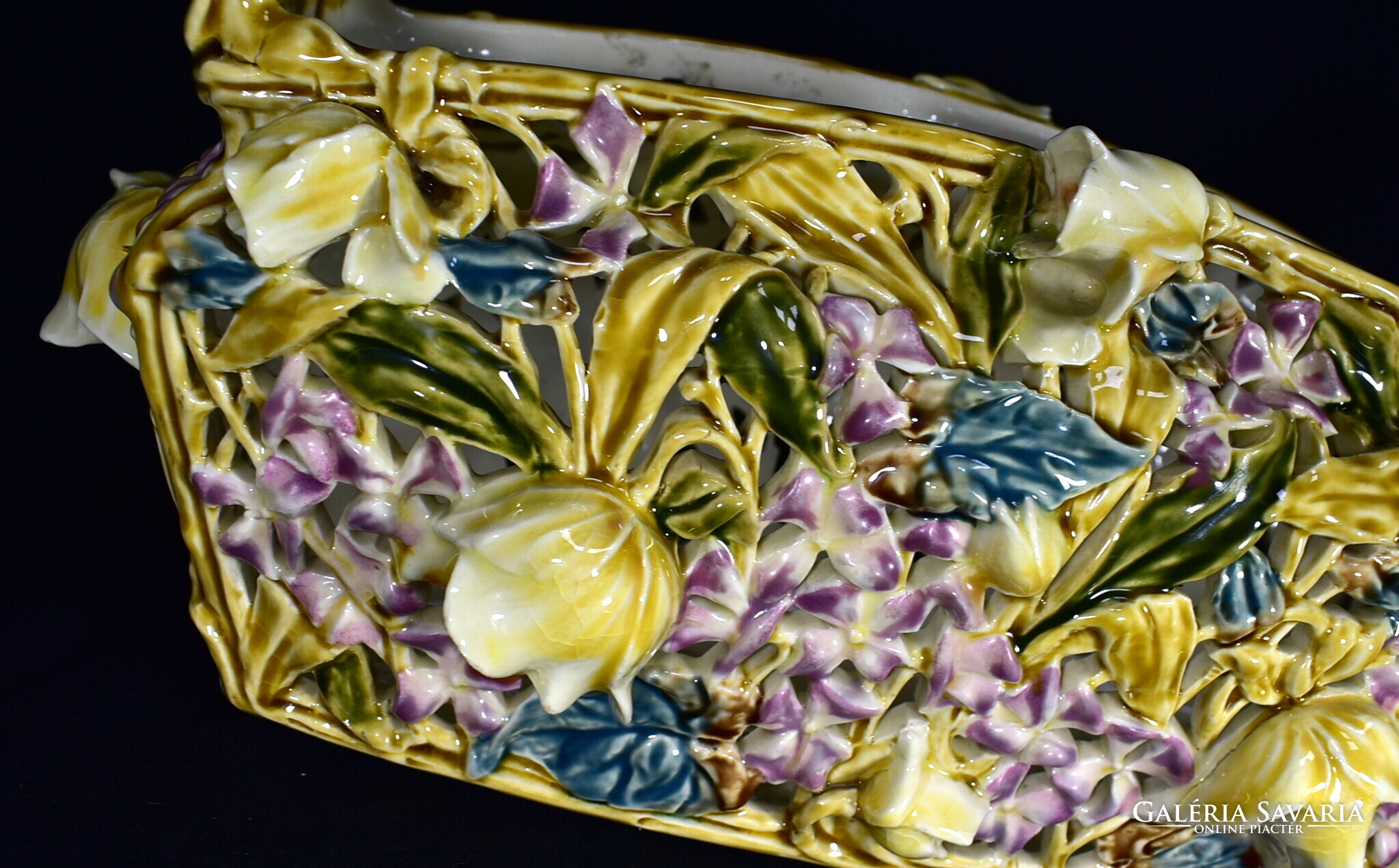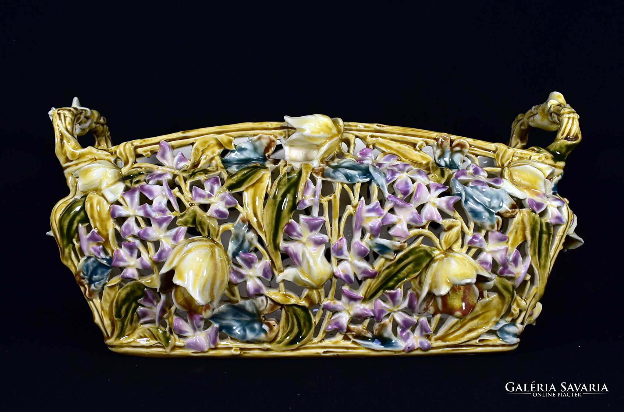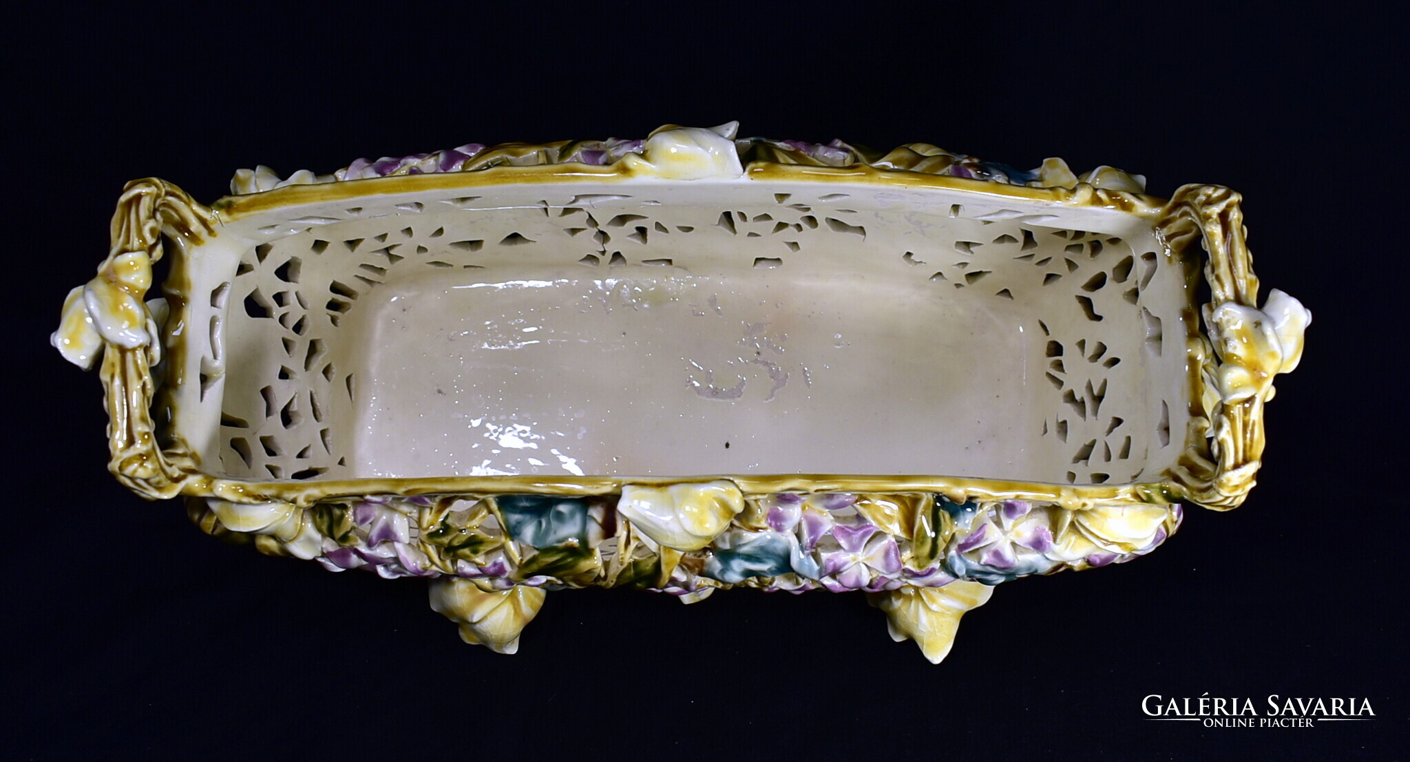 ZSOLNAY ÁTTÖRT MINTÁS HISTORIZÁLÓ KASPÓ - JARDINIERE A MÁLYVA SOROZATBÓL 1890 körül !