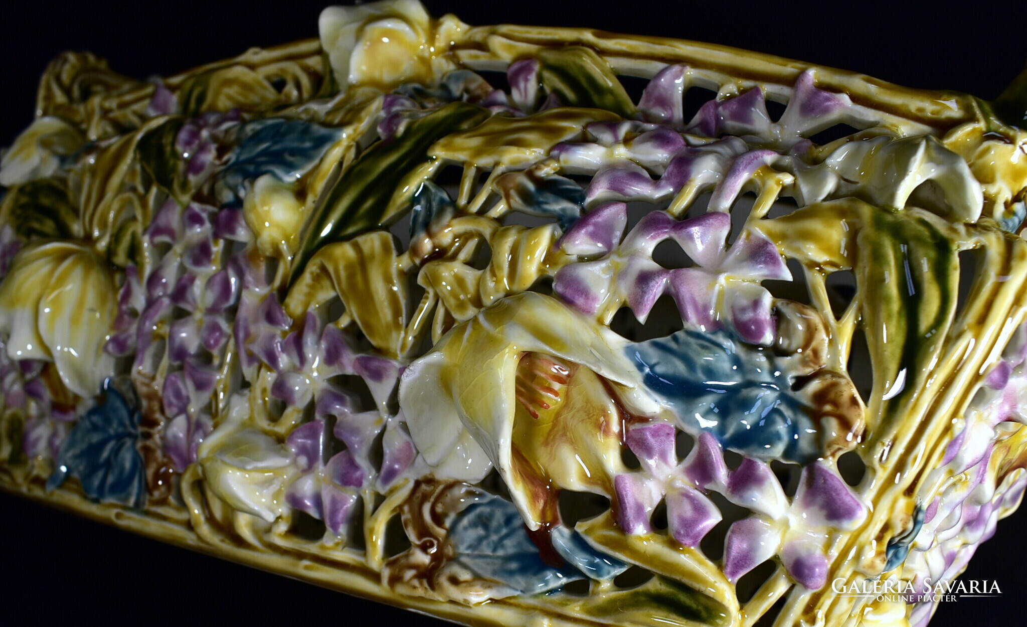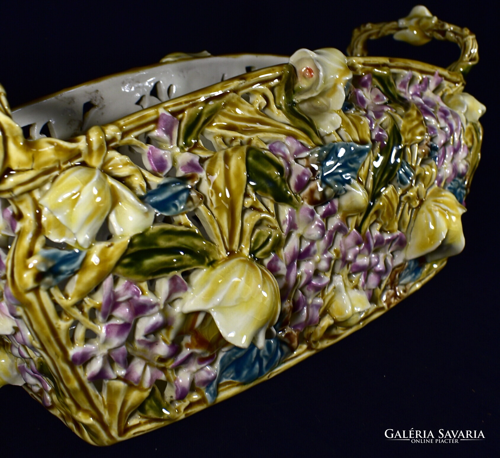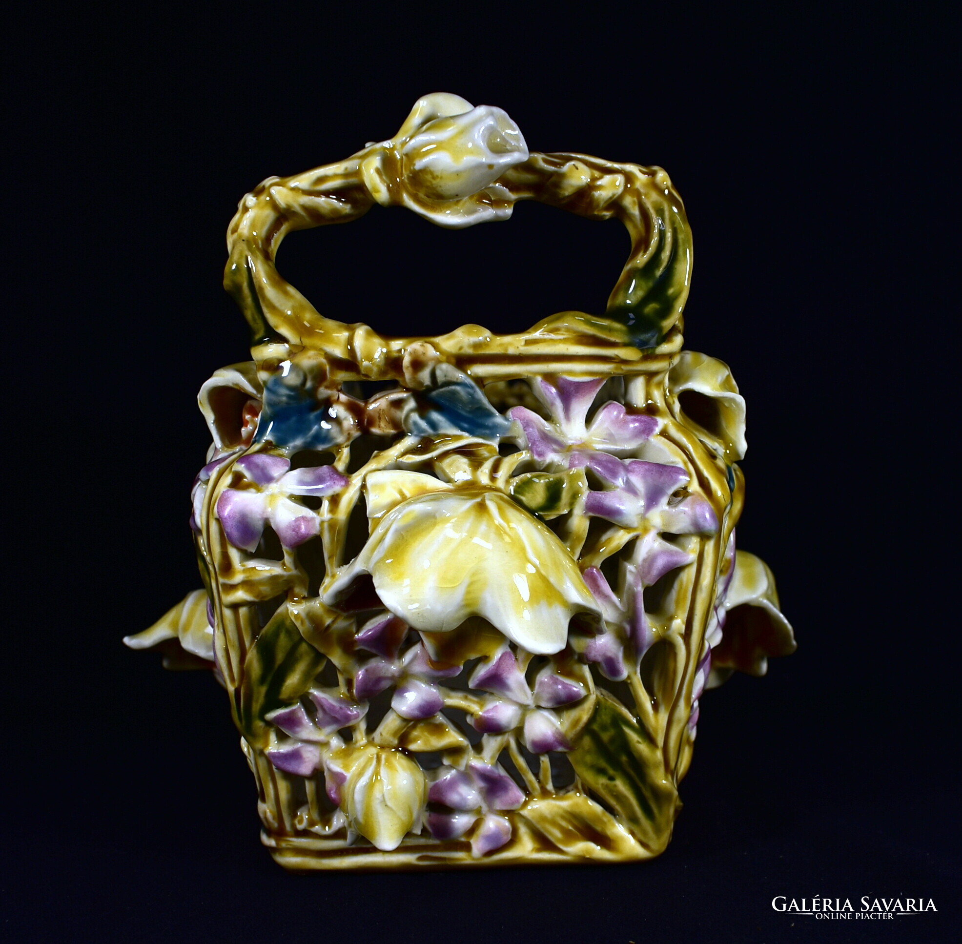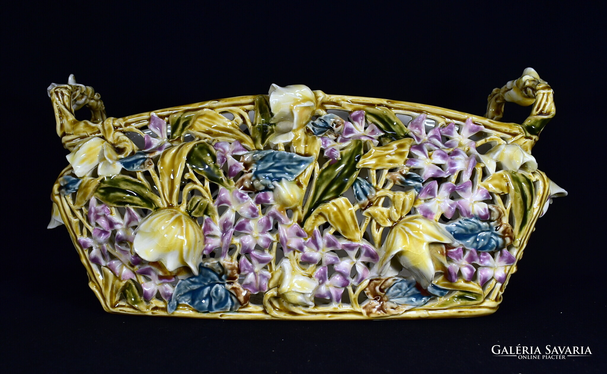 ZSOLNAY ÁTTÖRT MINTÁS HISTORIZÁLÓ KASPÓ - JARDINIERE A MÁLYVA SOROZATBÓL 1890 körül !