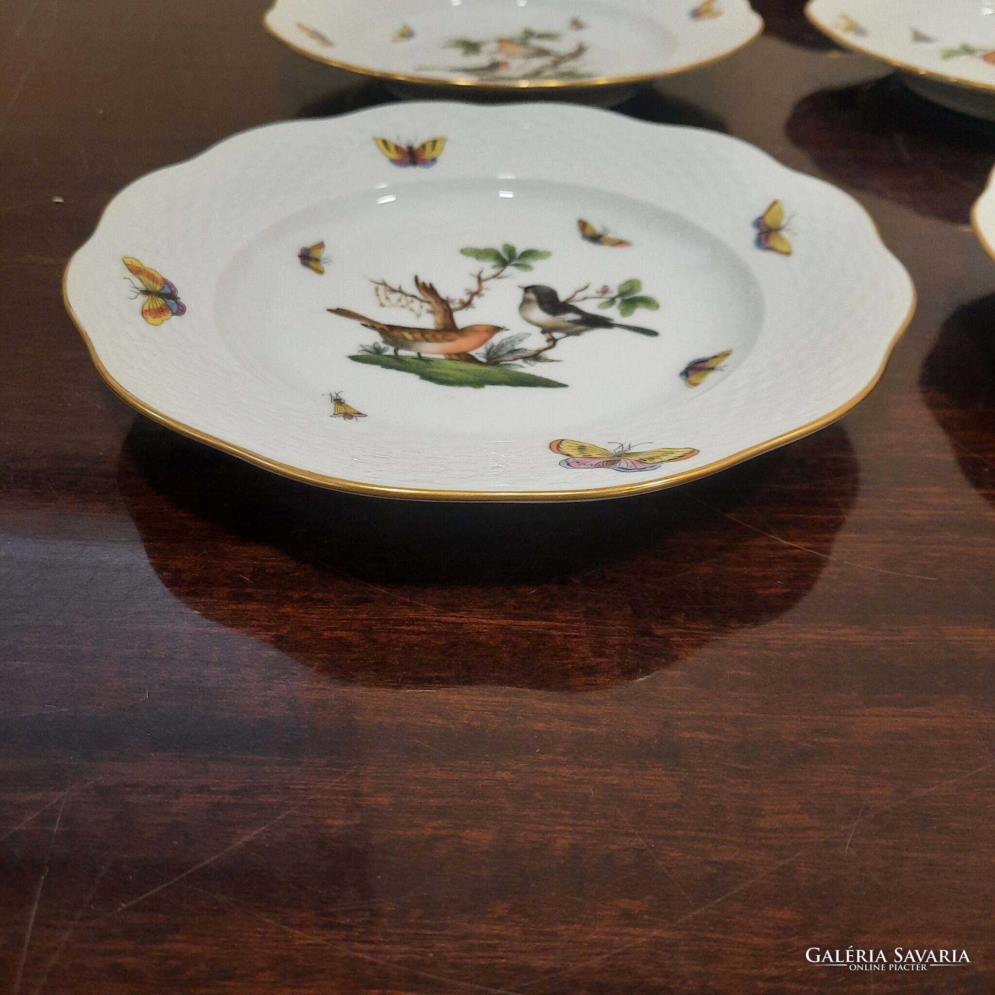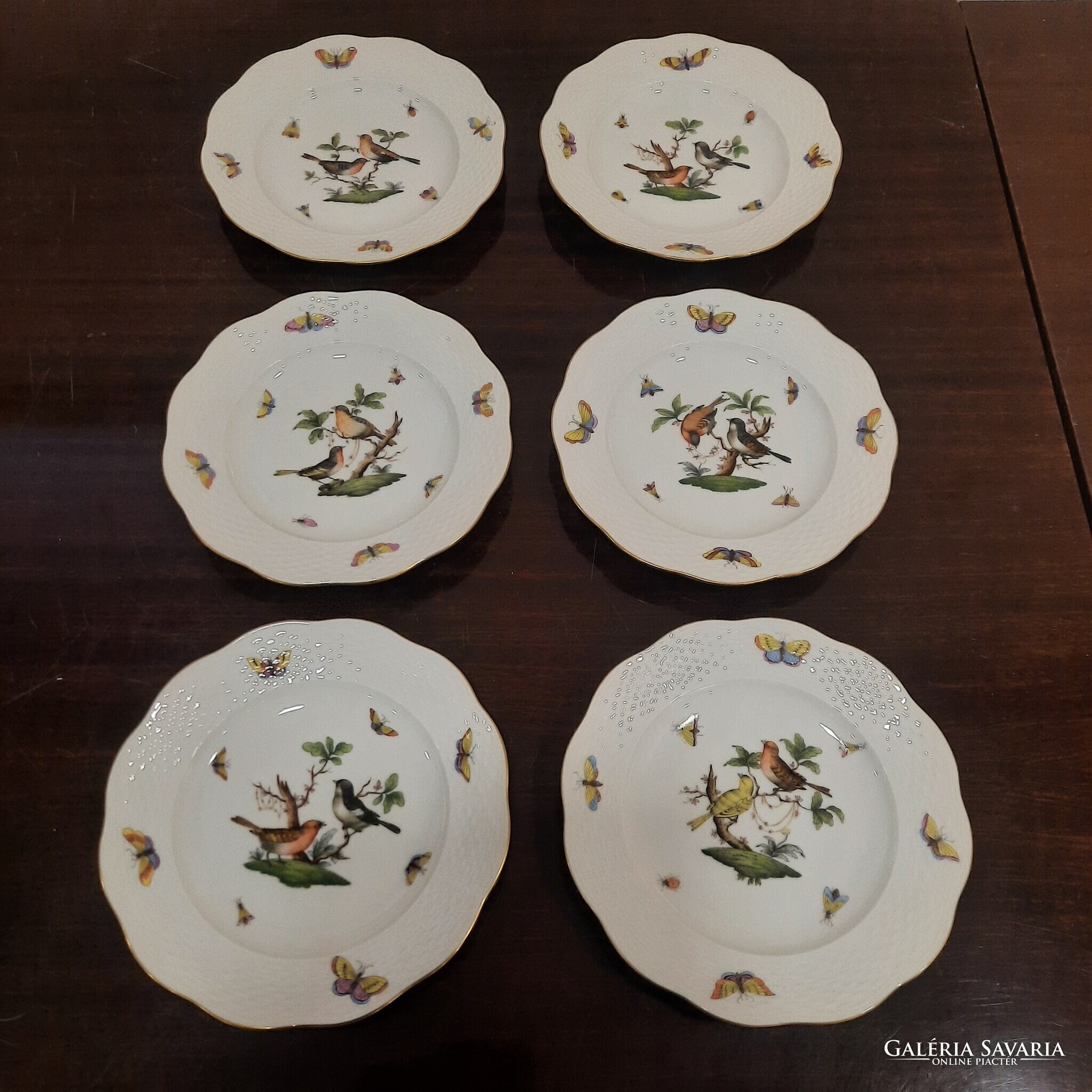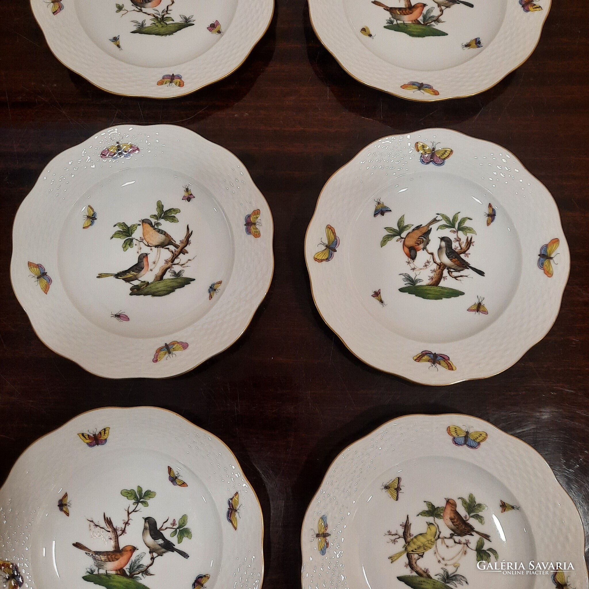 6 db Herendi Rothschild mintás porcelán süteményes tányér készlet