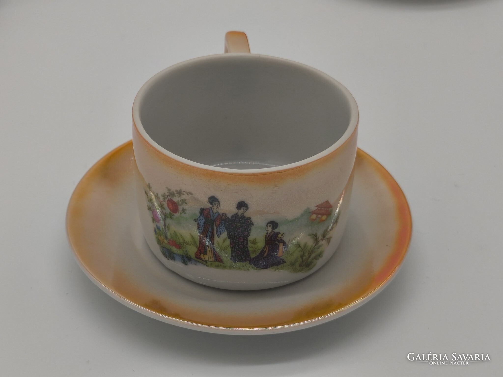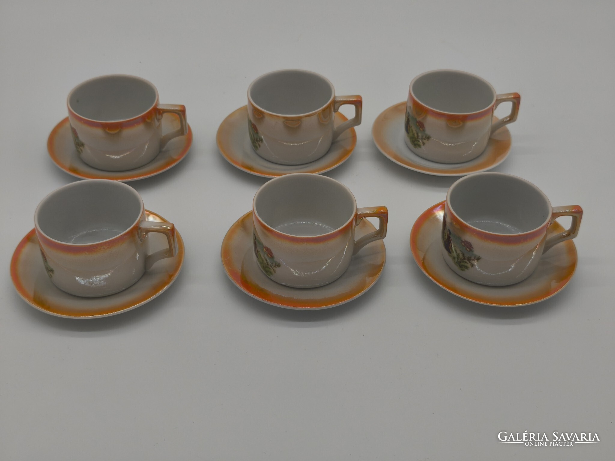 6 DB SZÉP ANTIK ZSOLNAY JAPÁN GÉSA MINTÁS, MÁZAS KÁVÉS CSÉSZE SZETT TP3