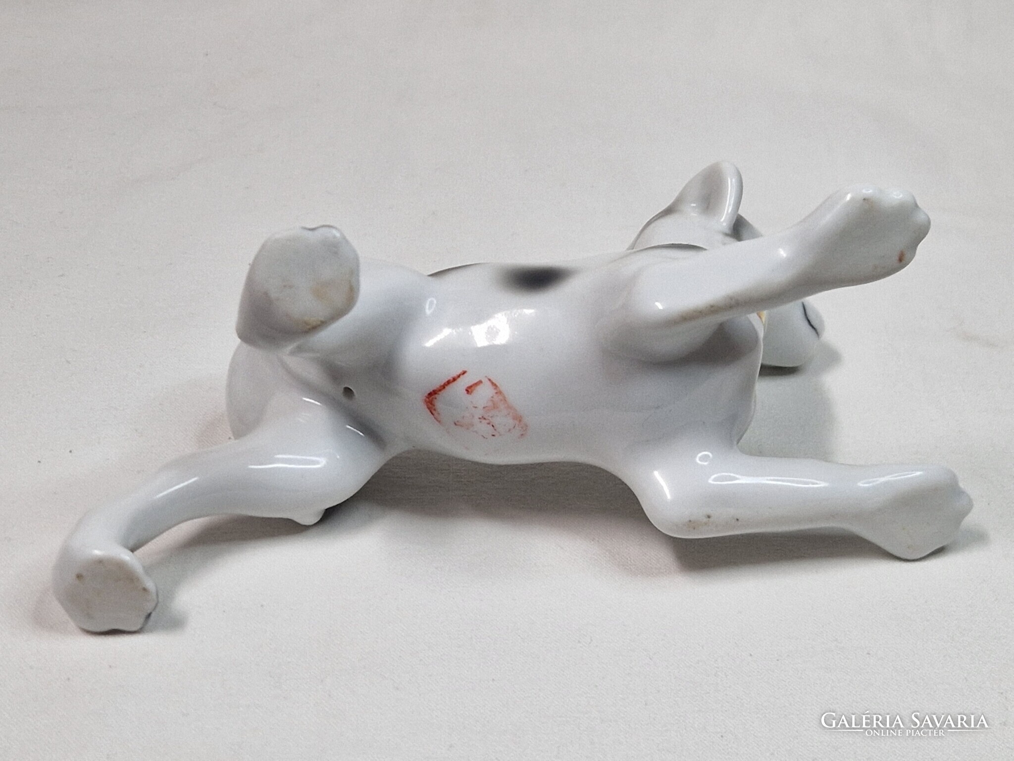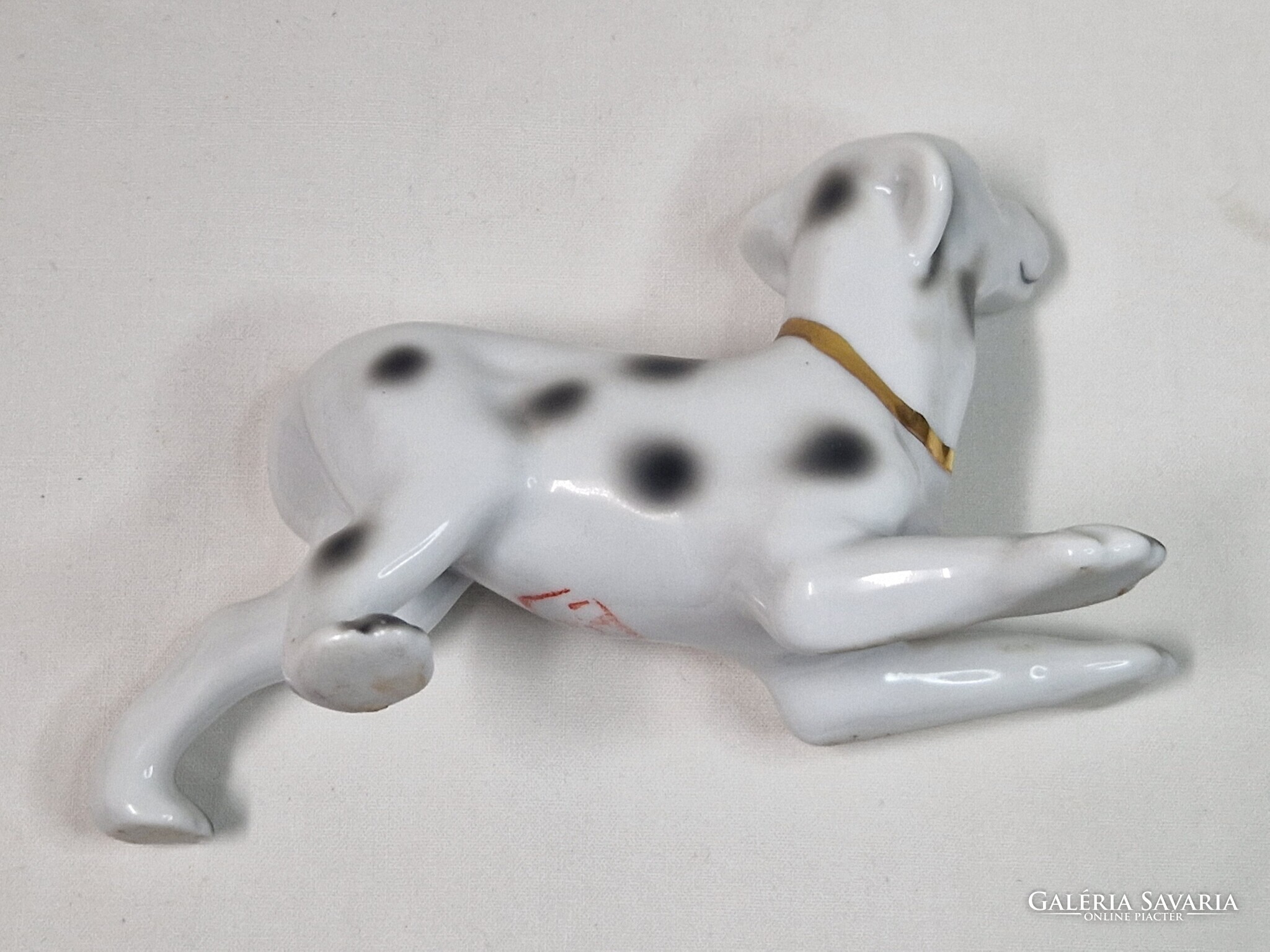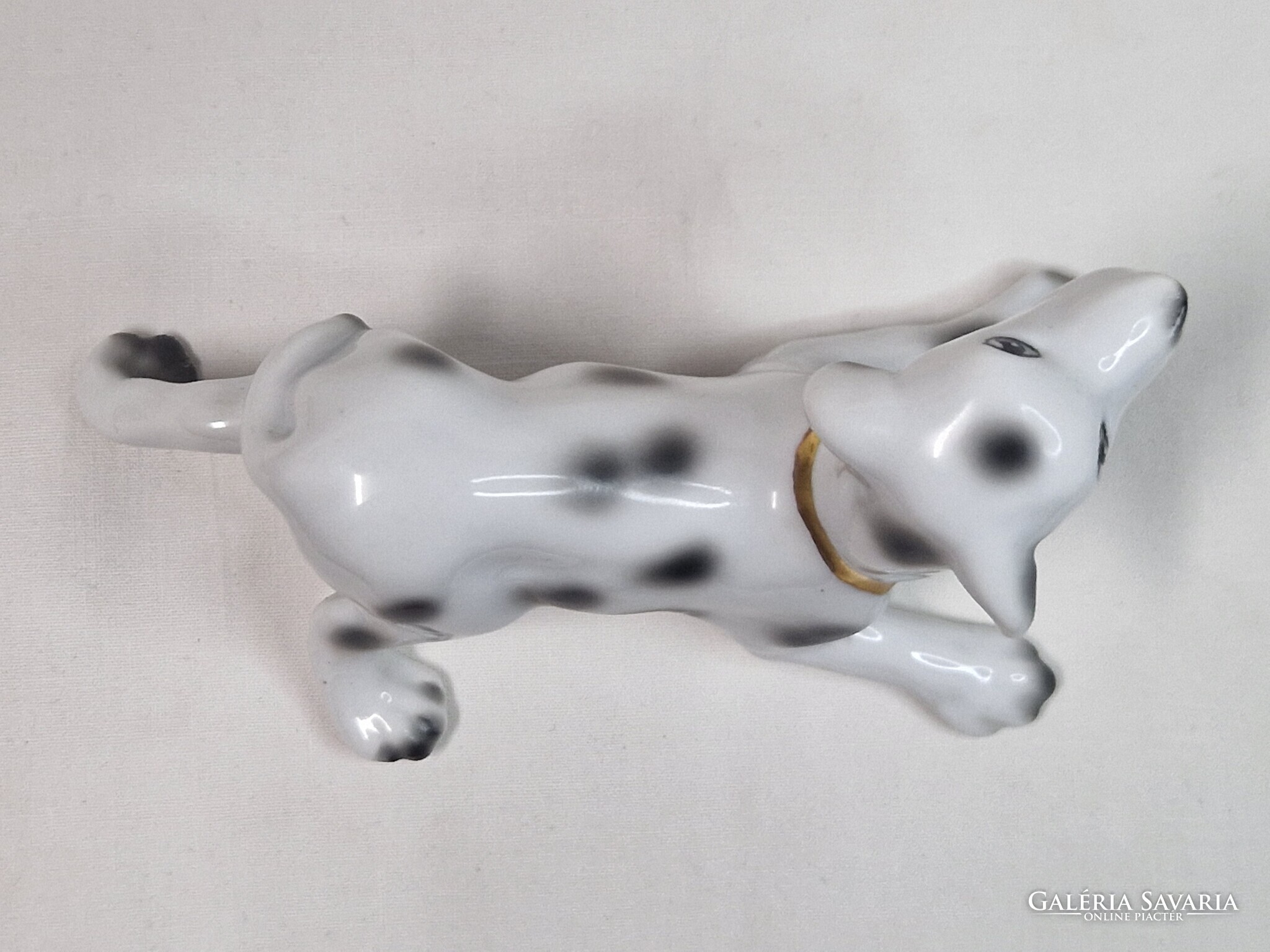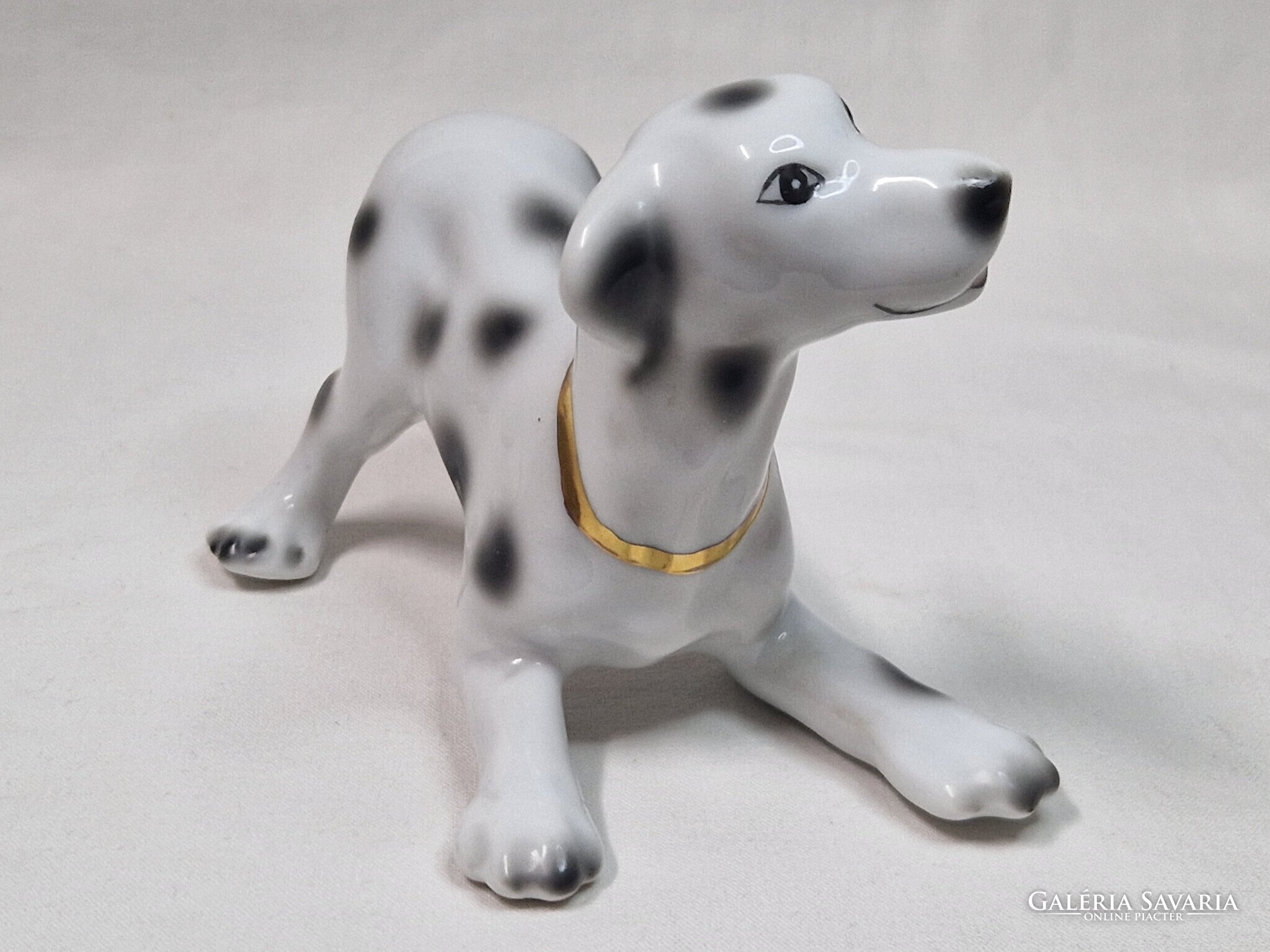 Porcelán dalmata kutya arany színű nyakörvvel figura hibátlan állapotban 15 cm. hosszú