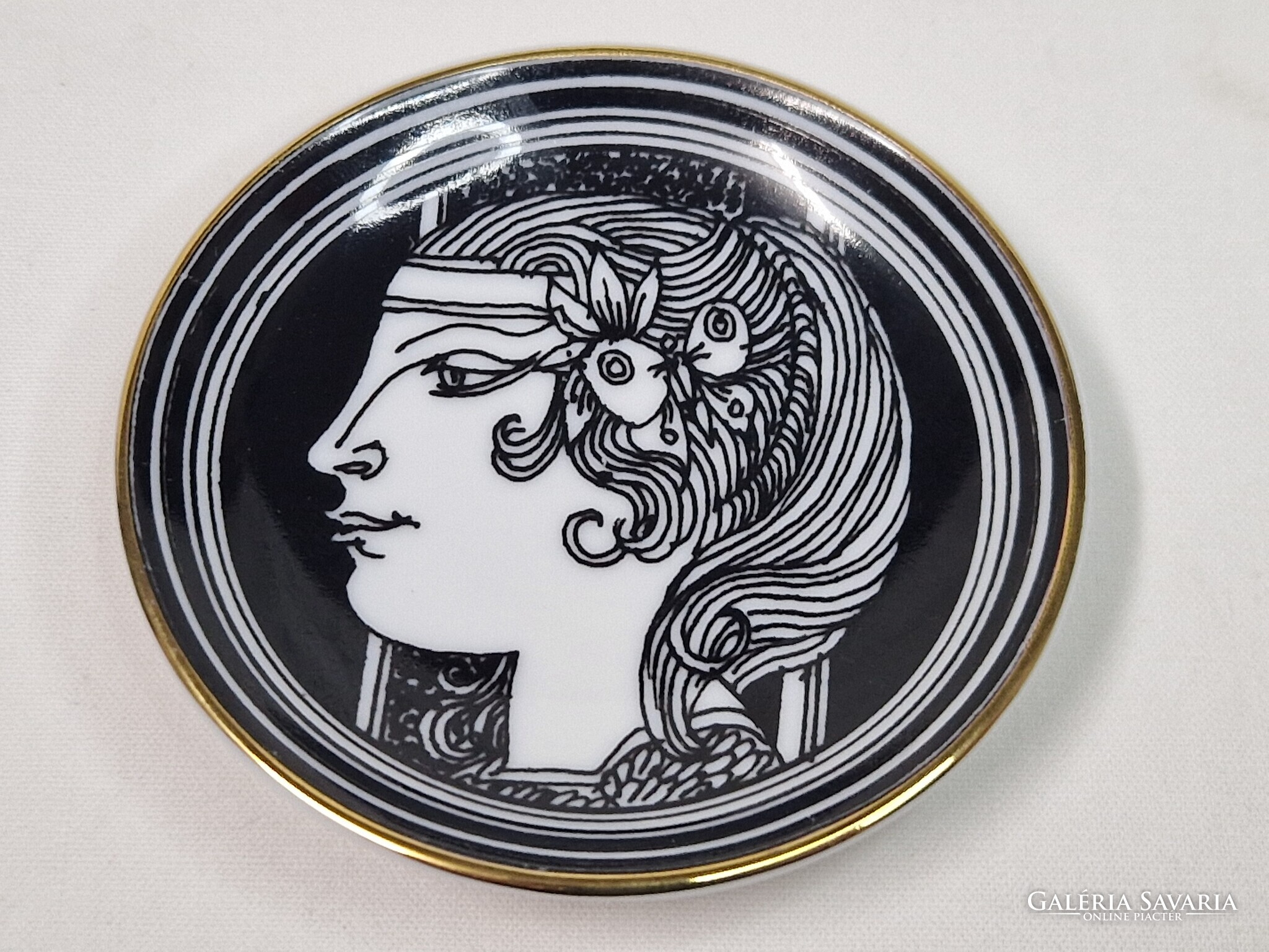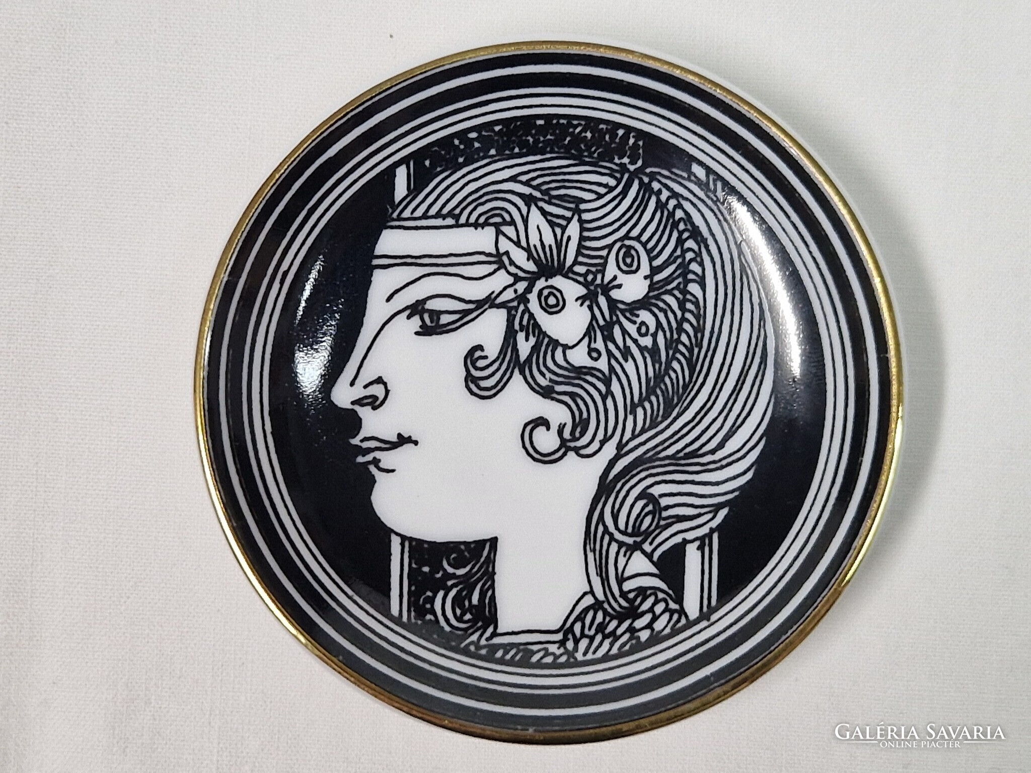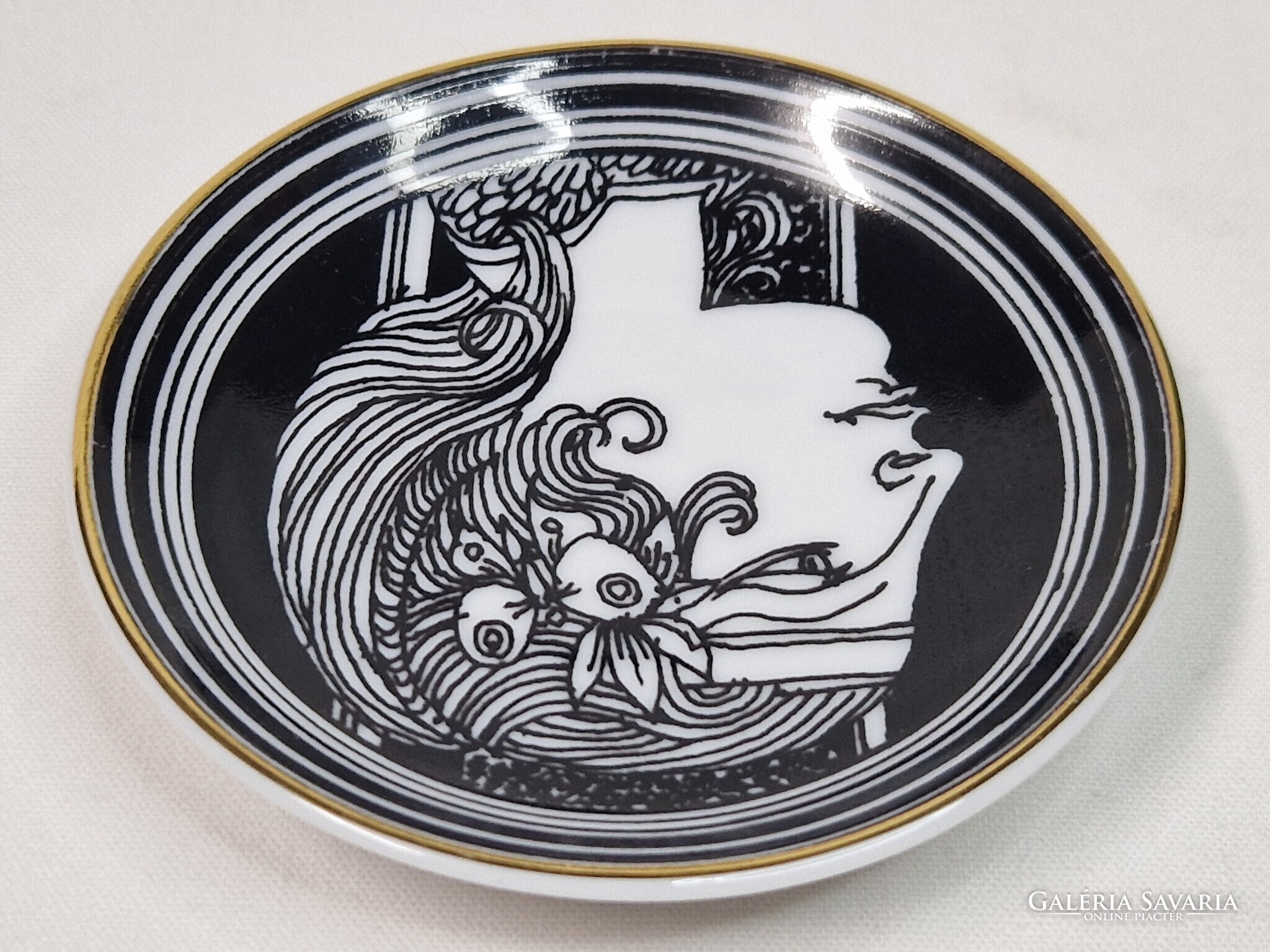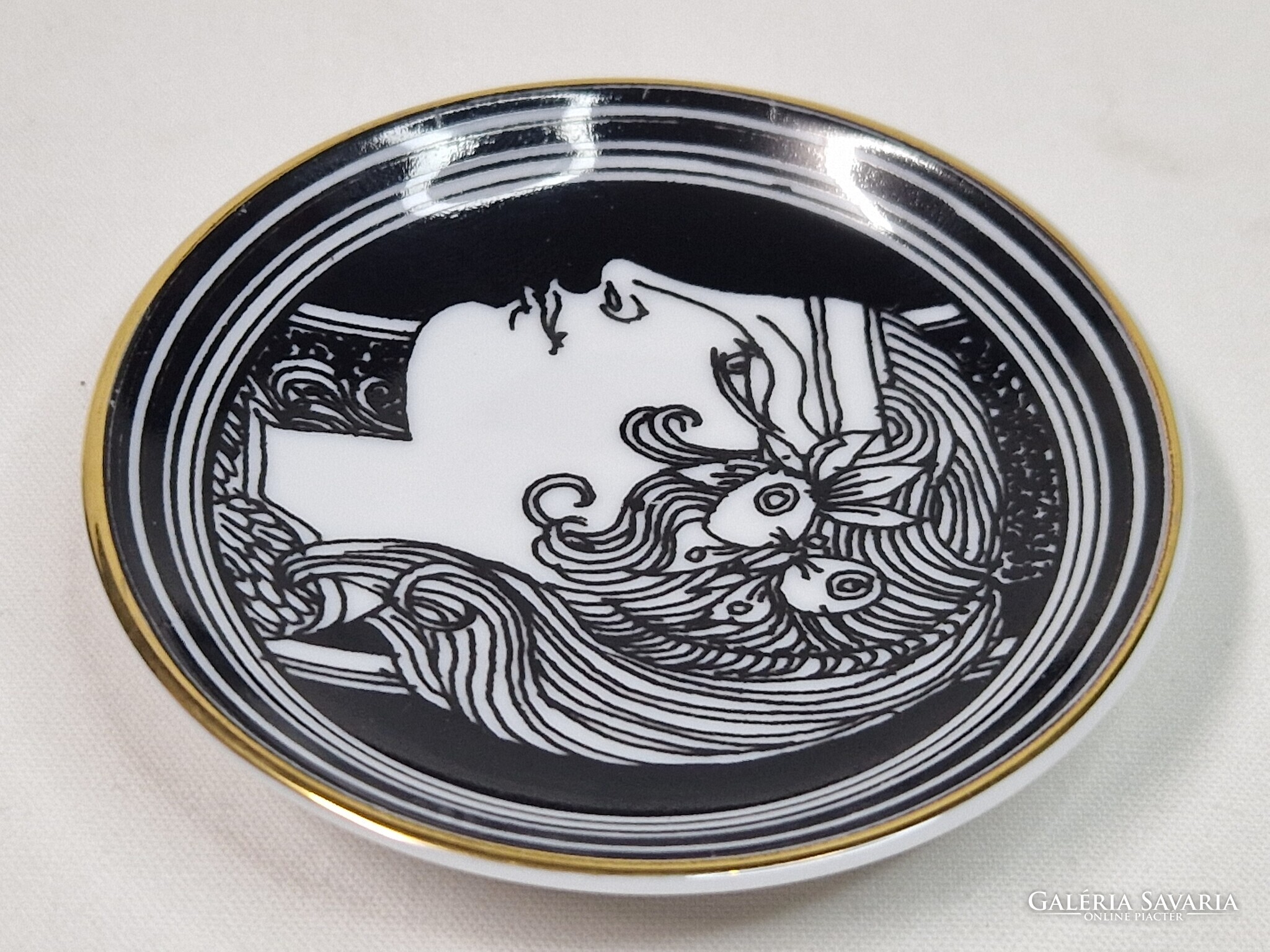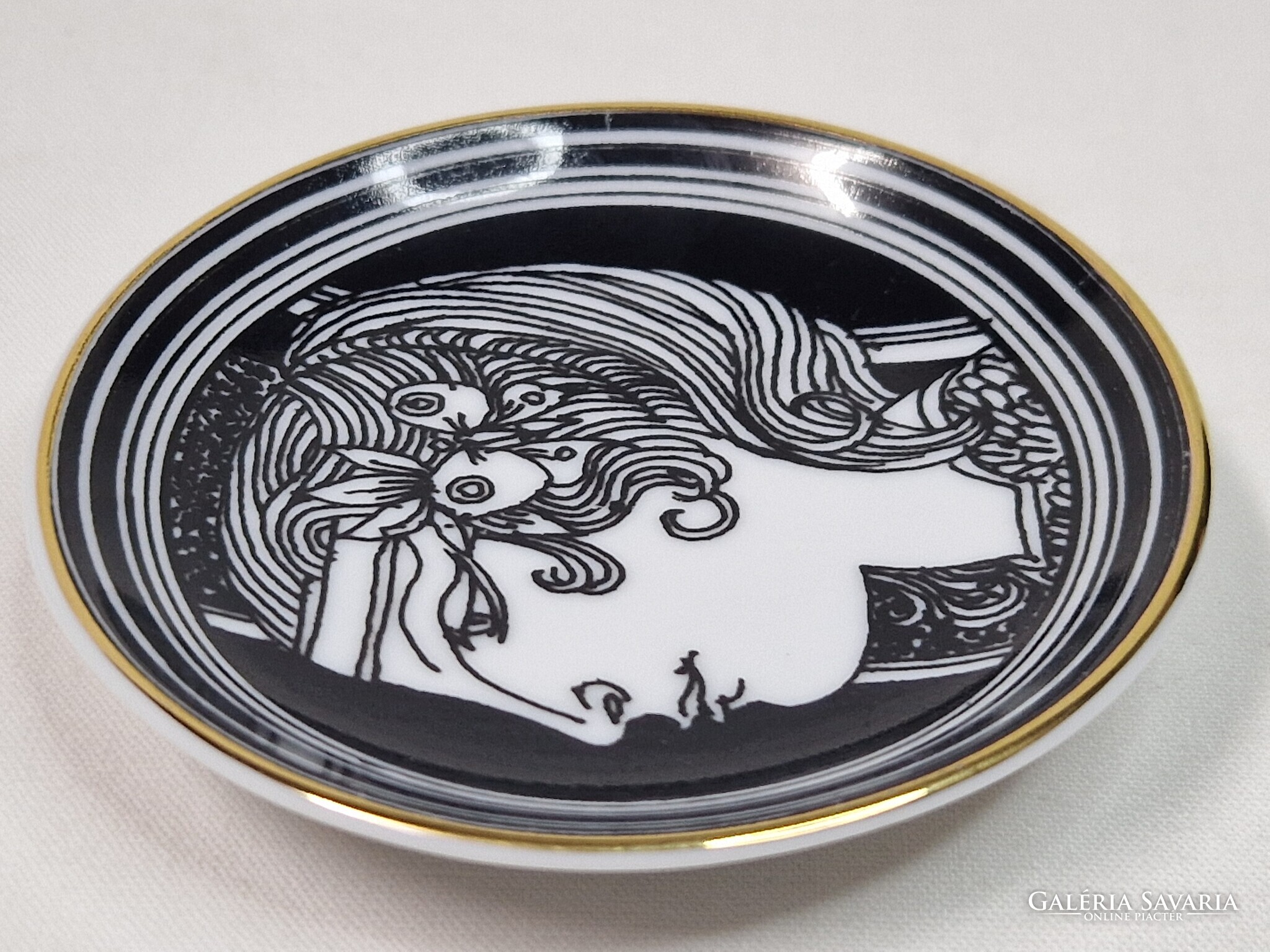 Szász Endre tervezte, Hollóházi, 21 karátos arannyal, kézzel festett, porcelán, gyűrűtartó tálka vagy fali dísz eladó. A falra akasztáshoz a hátulján lyukkal.