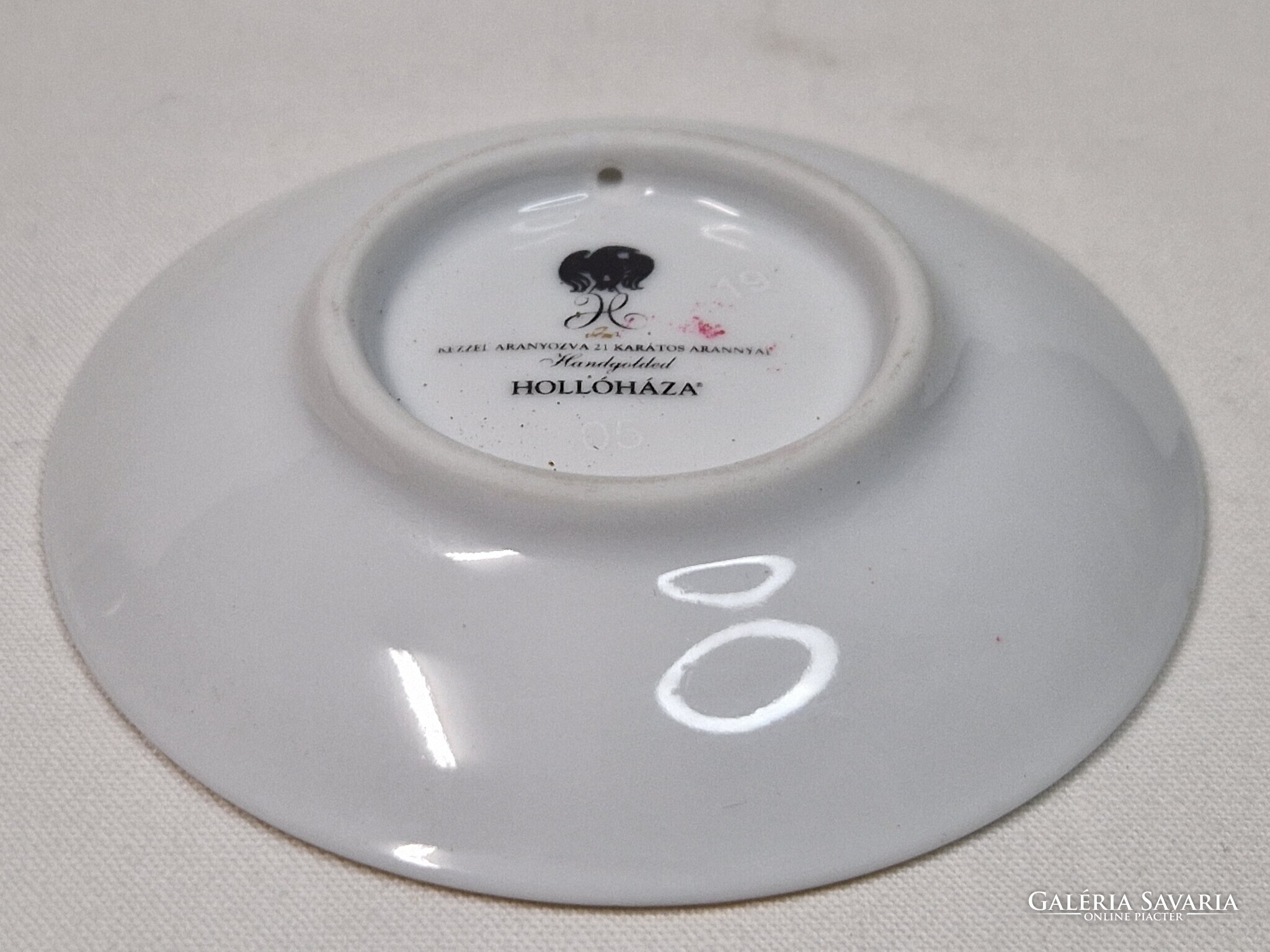 Szász Endre Hollóházi 21 karátos arannyal festett gyűrűtartó hibátlan állapotban 8 cm. átmérőjű