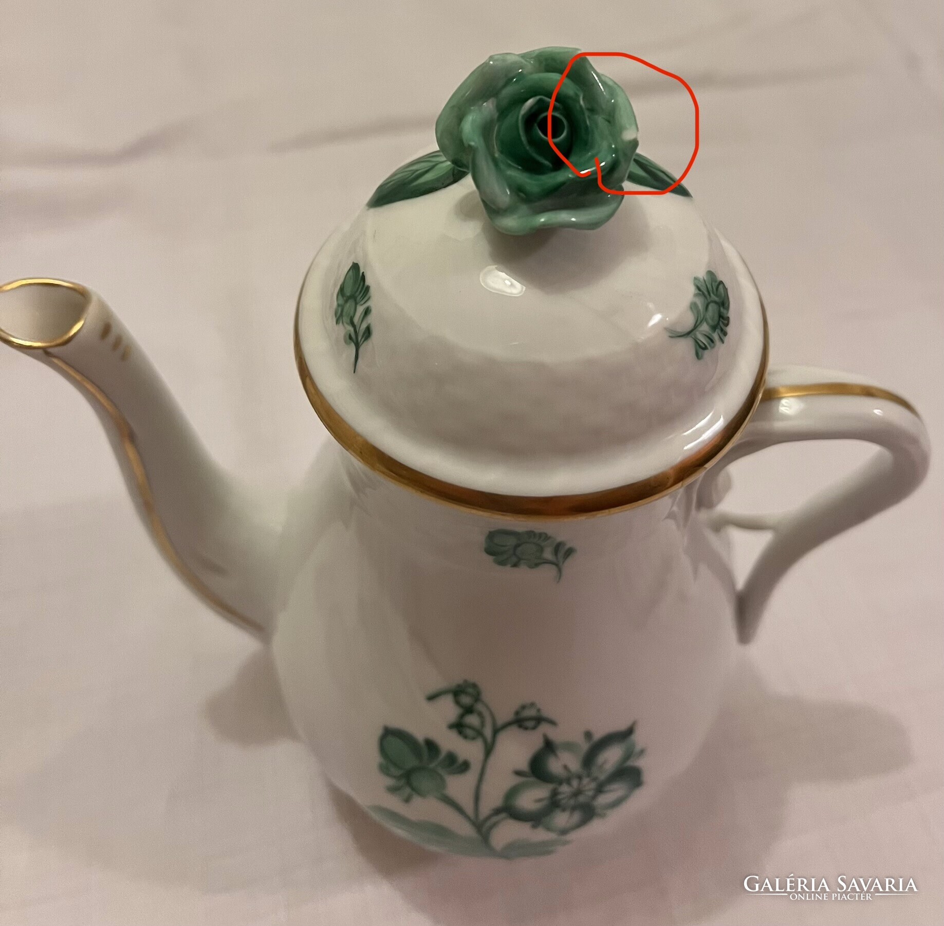 - A kanna és a cukortartó tetején lévő porcelánrózsákon kisebb lepattanások, sziromhiányok találhatóak (fotózva).