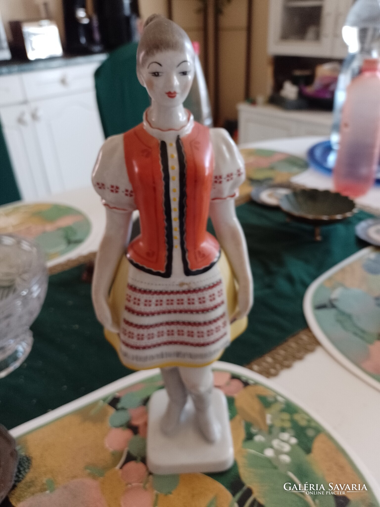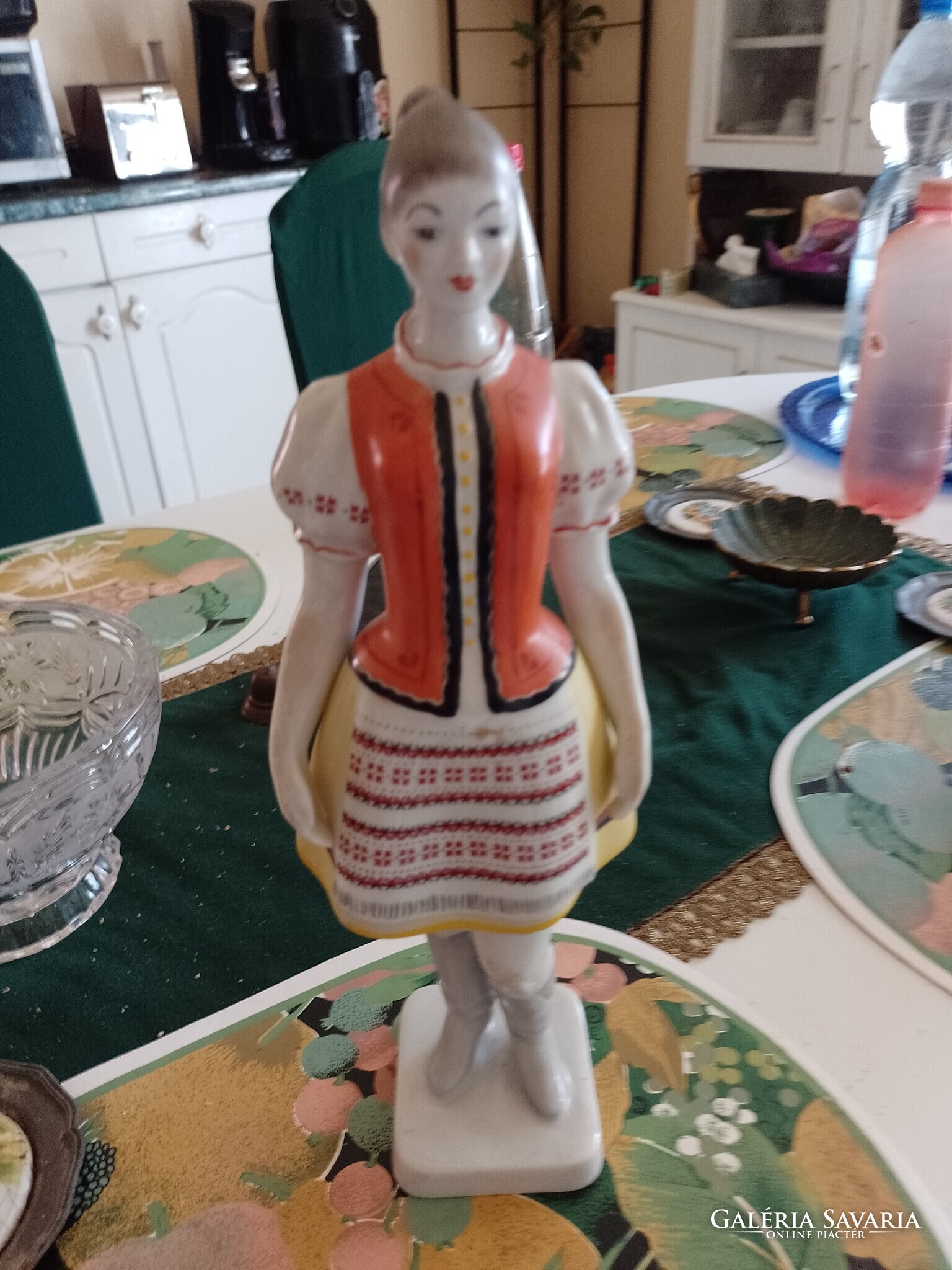 Antik Hollóházi porcelán .Népviseletes ruhás.Gyűjtõi darab. Kézi festésű.Mérete 30 cm .Jelzett ,hibátlan