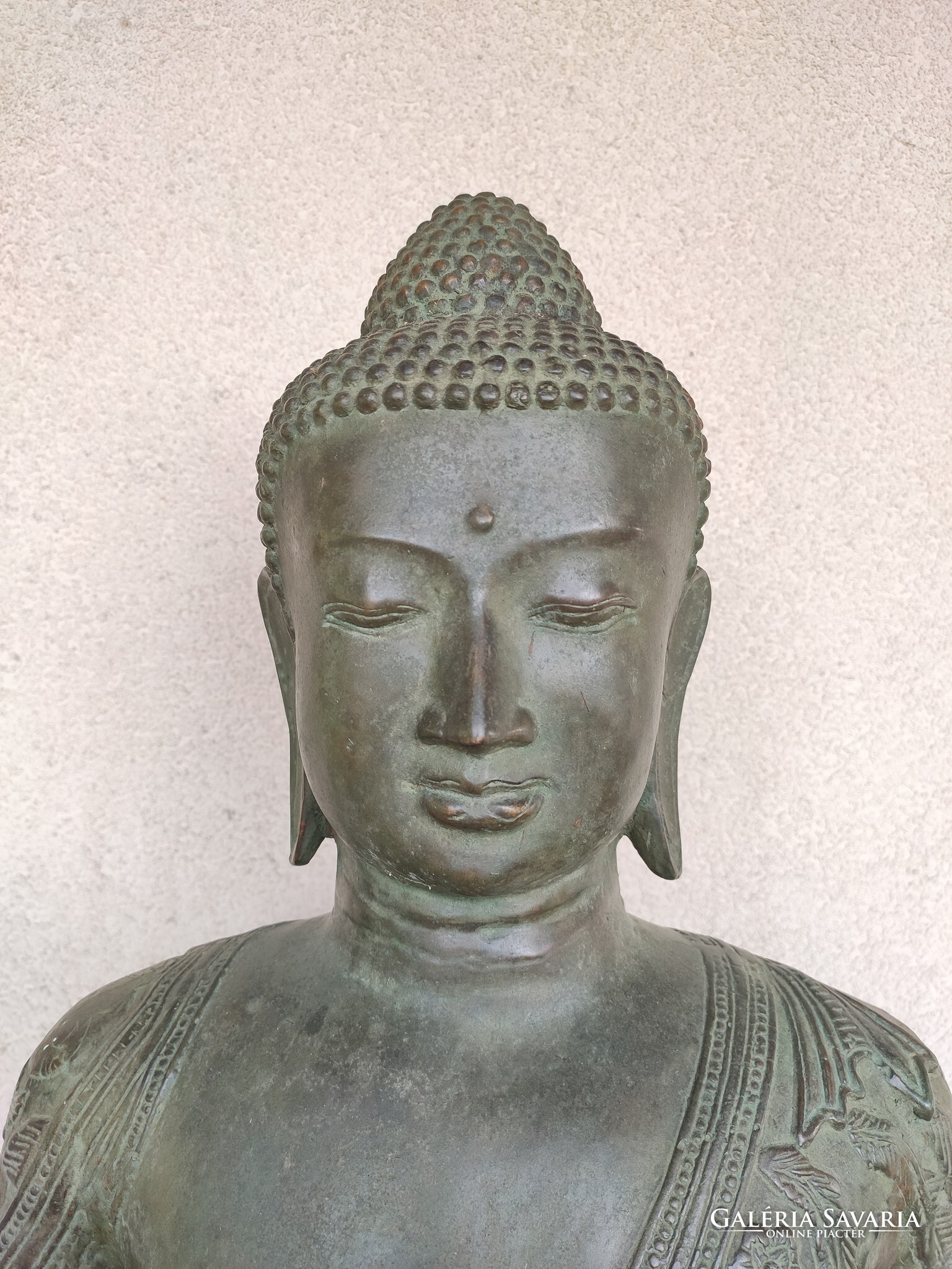 Hatalmas (123 cm), csodálatosan kidolgozott bronz Buddha.