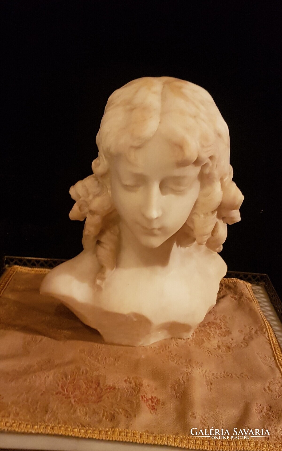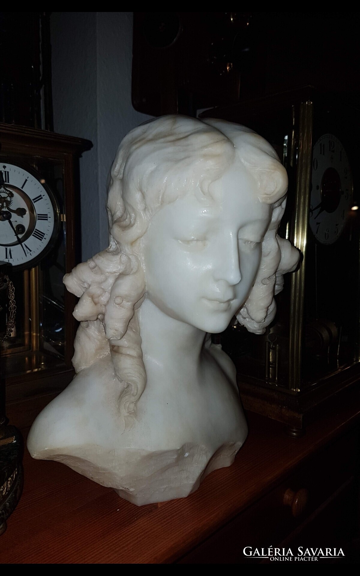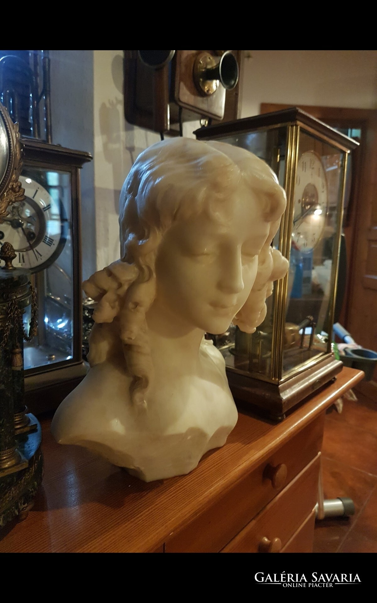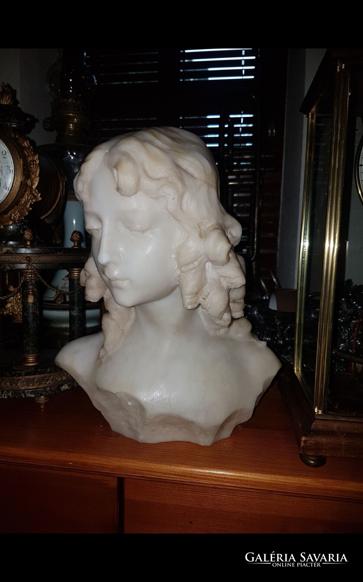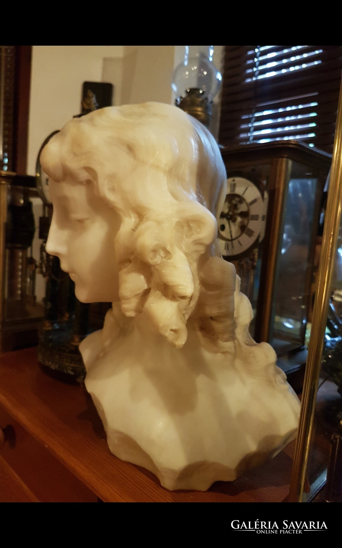 Gyönyörű, elegáns leányarcot ábrázoló márvány szobor.