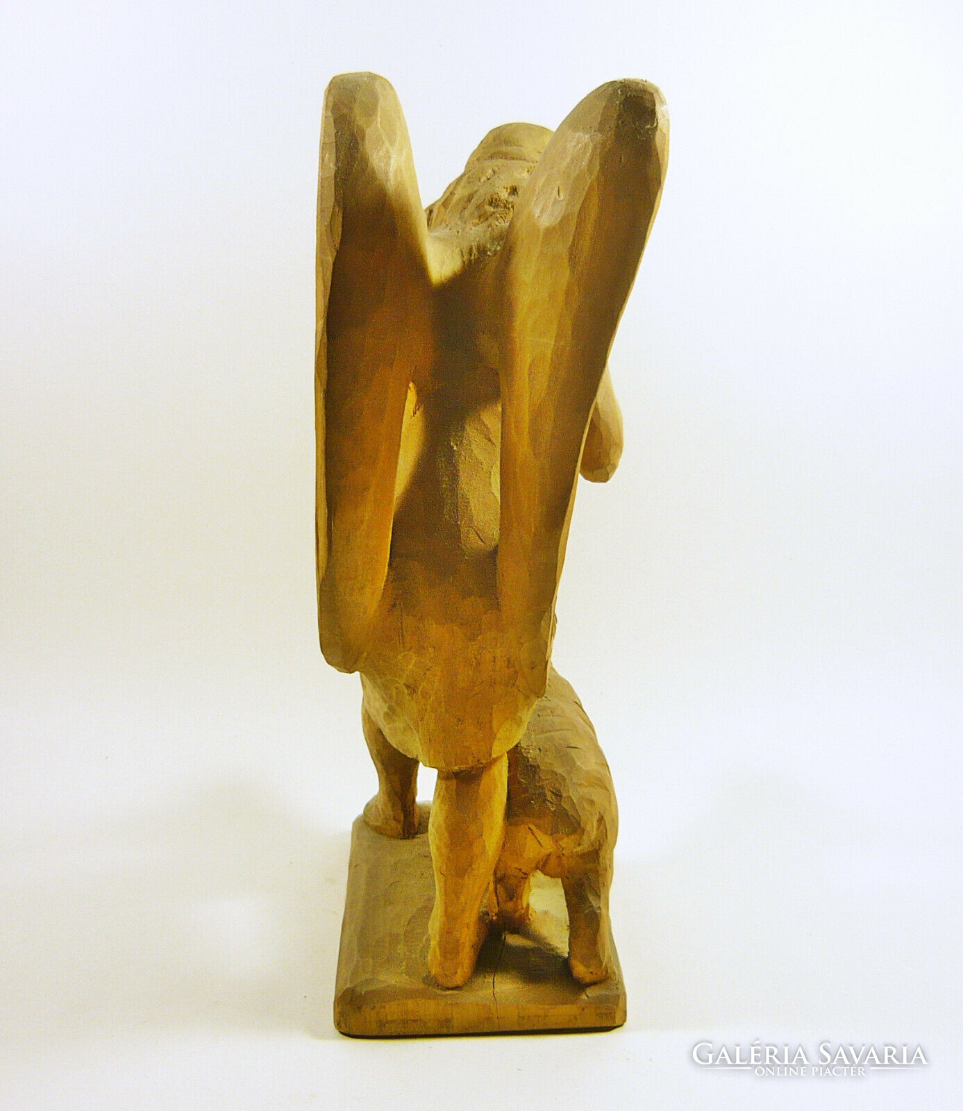 ANGYAL BÁRÁNNYAL 30 CM., JELZETT, FÁBÓL FARAGOTT FIGURA! (F006)