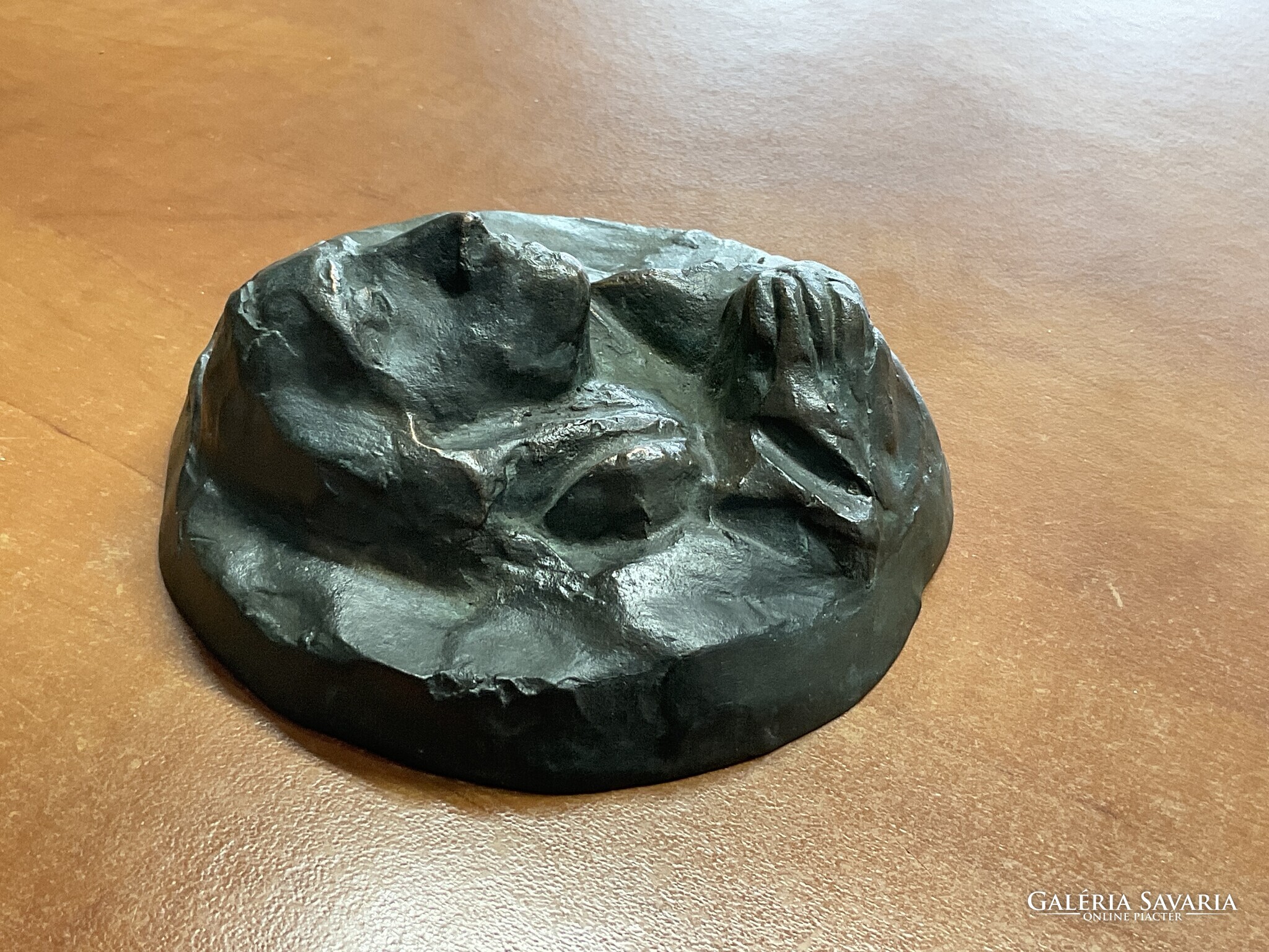 Kárpáti Tamás bronz kis plasztika , magas plasztika, Méret 12 cm átmérőjű.