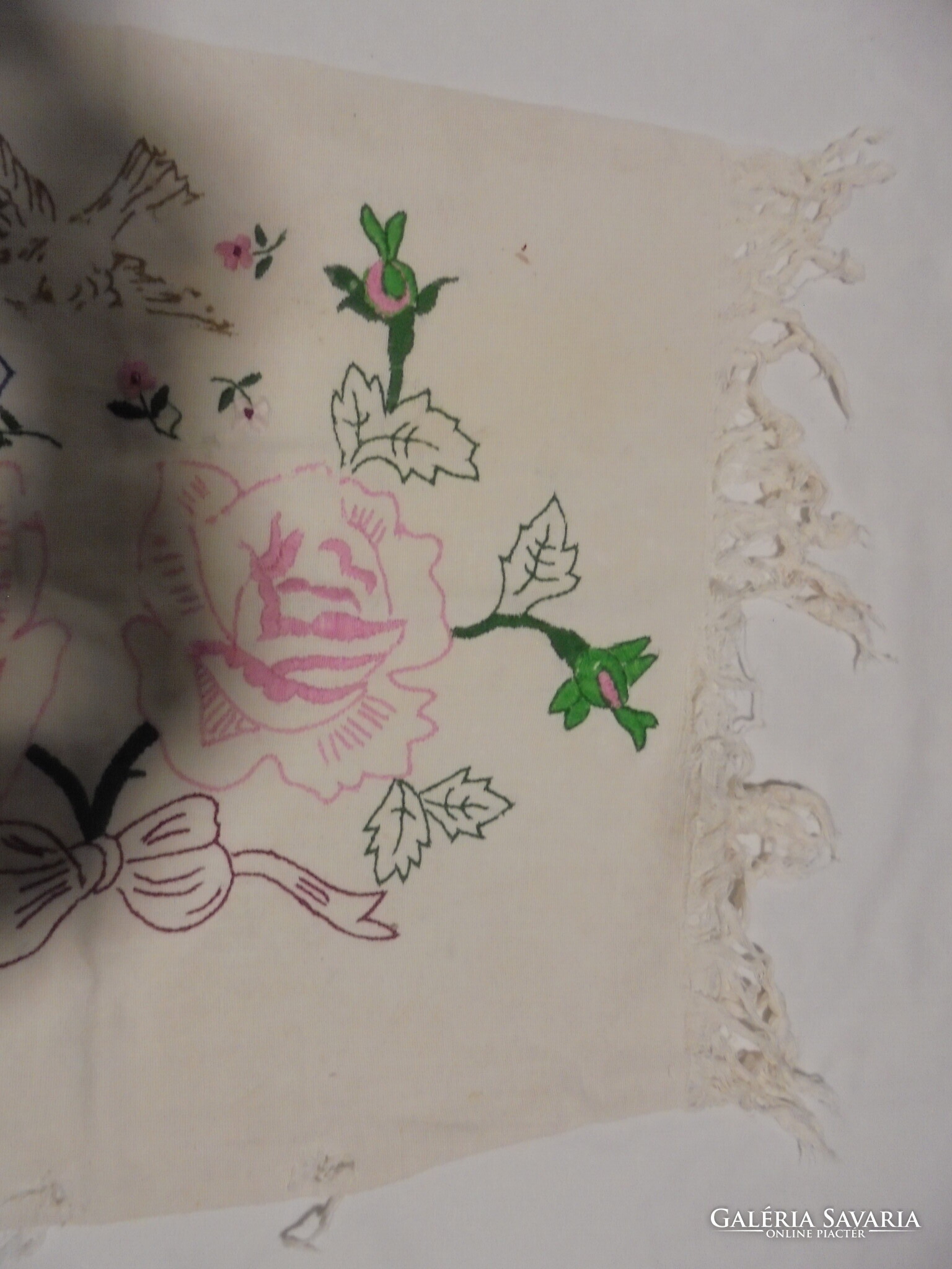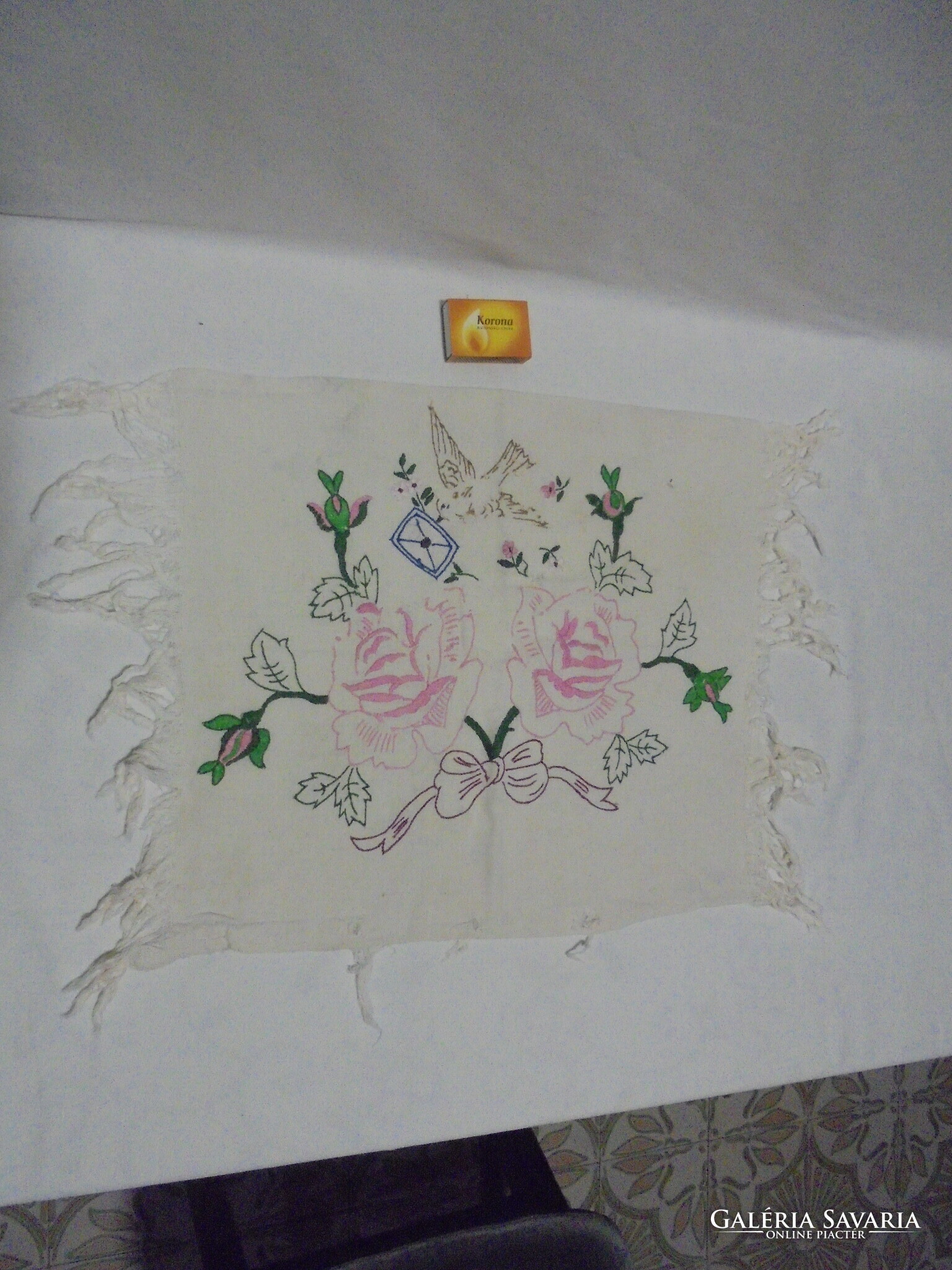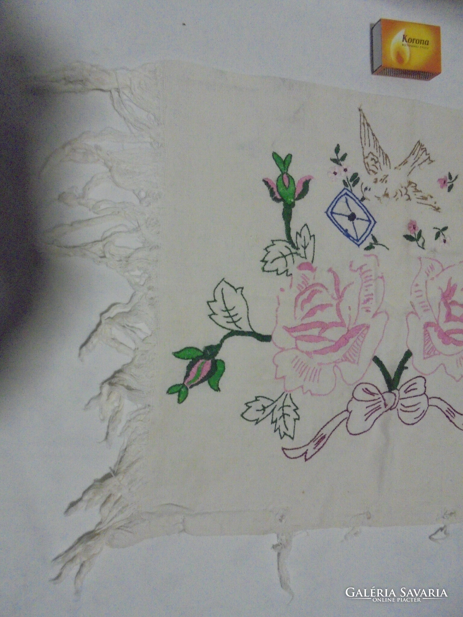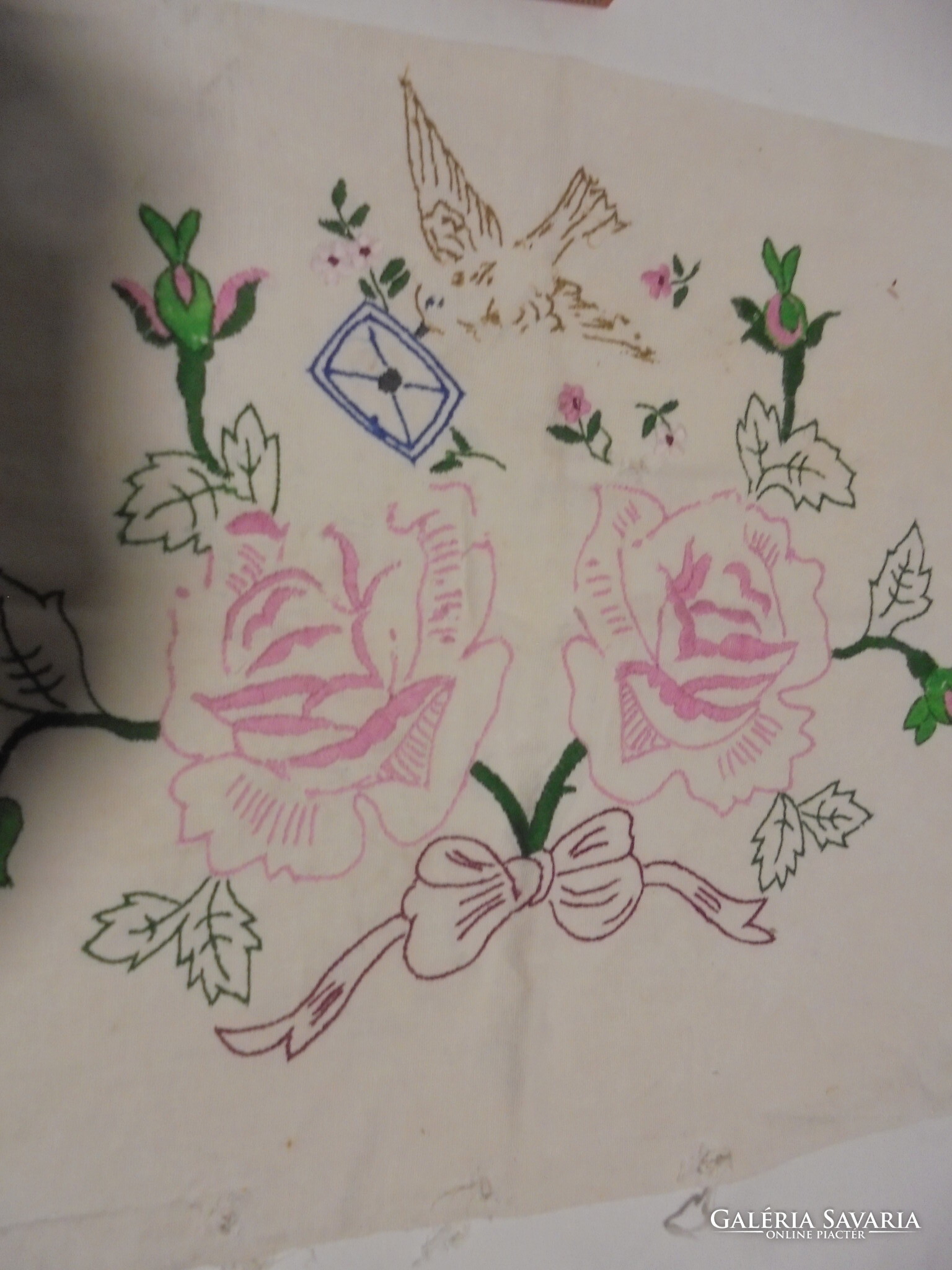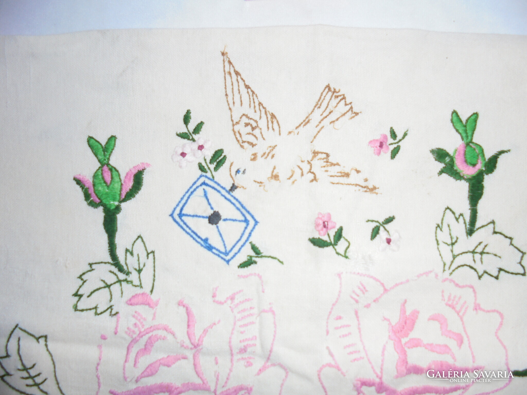 Régi, kézzel hímzett díszpárna - virágok, galamb,...