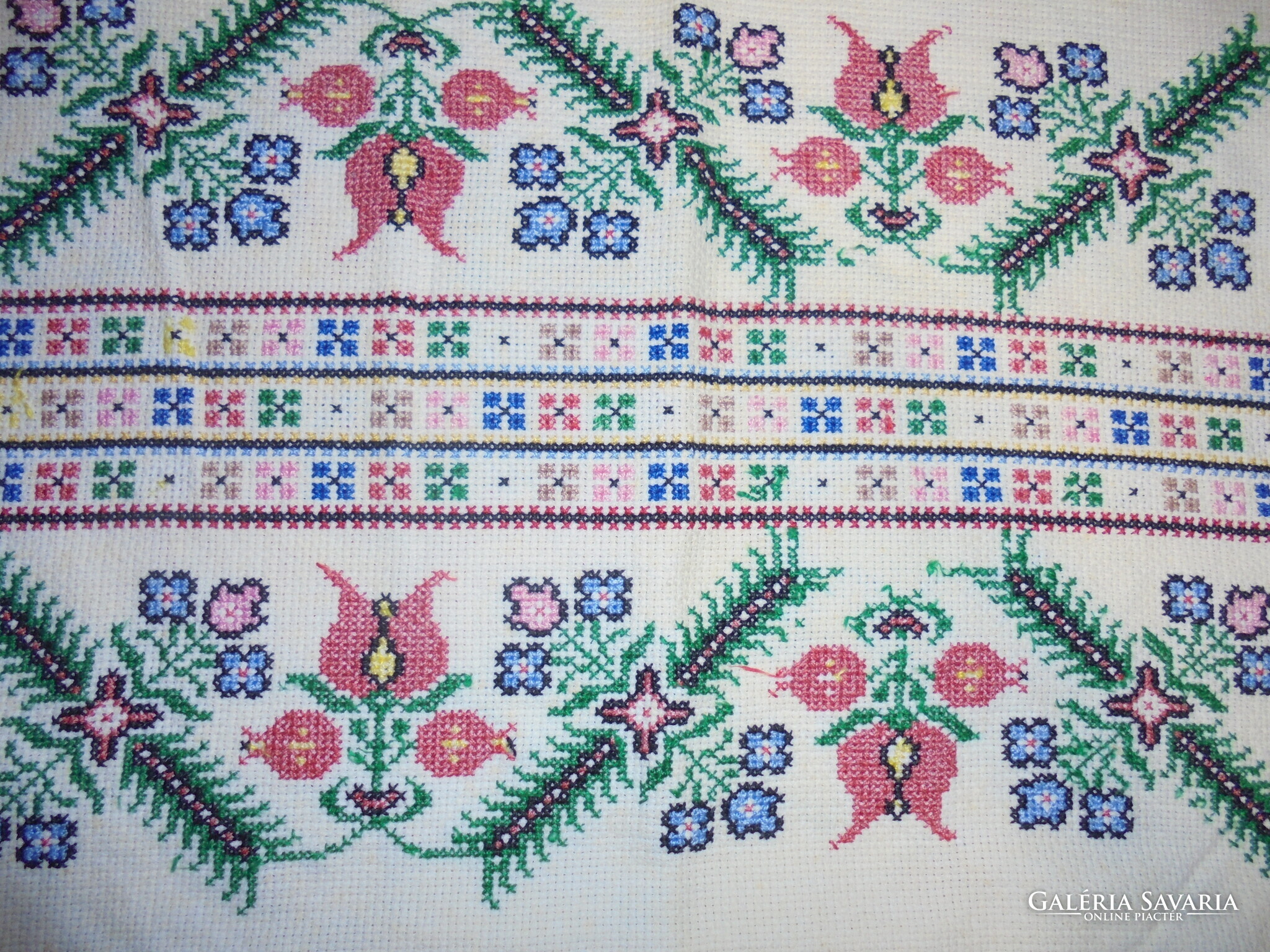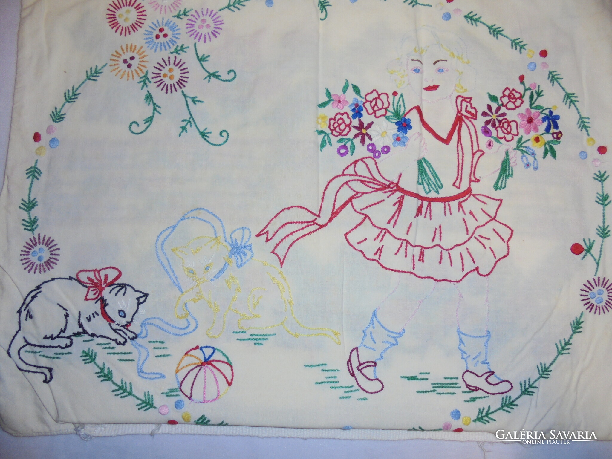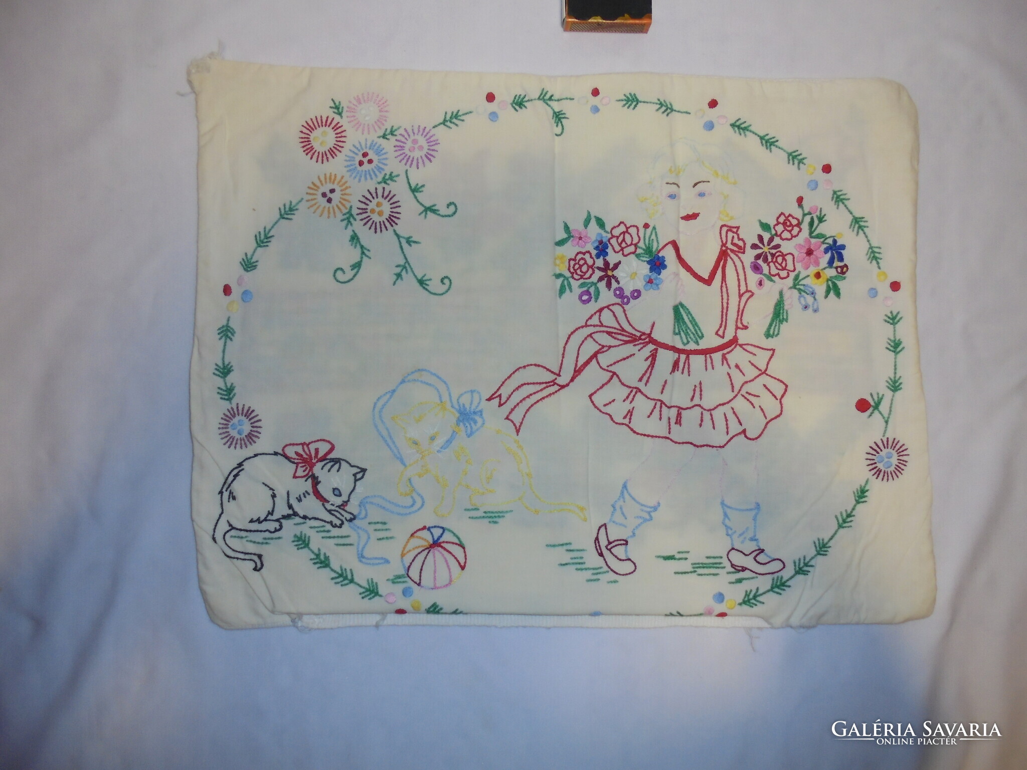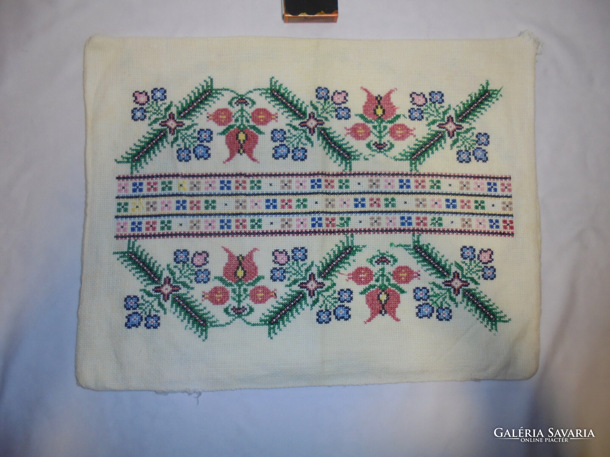Régi, két oldalán hímzett díszpárna - keresztszemes, jekenetes