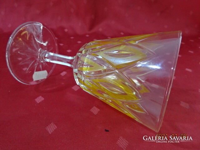 Francia kristály színes üvegpohár - sárga, VMC Reim, magassága 15 cm, átmérője 8,5 cm.