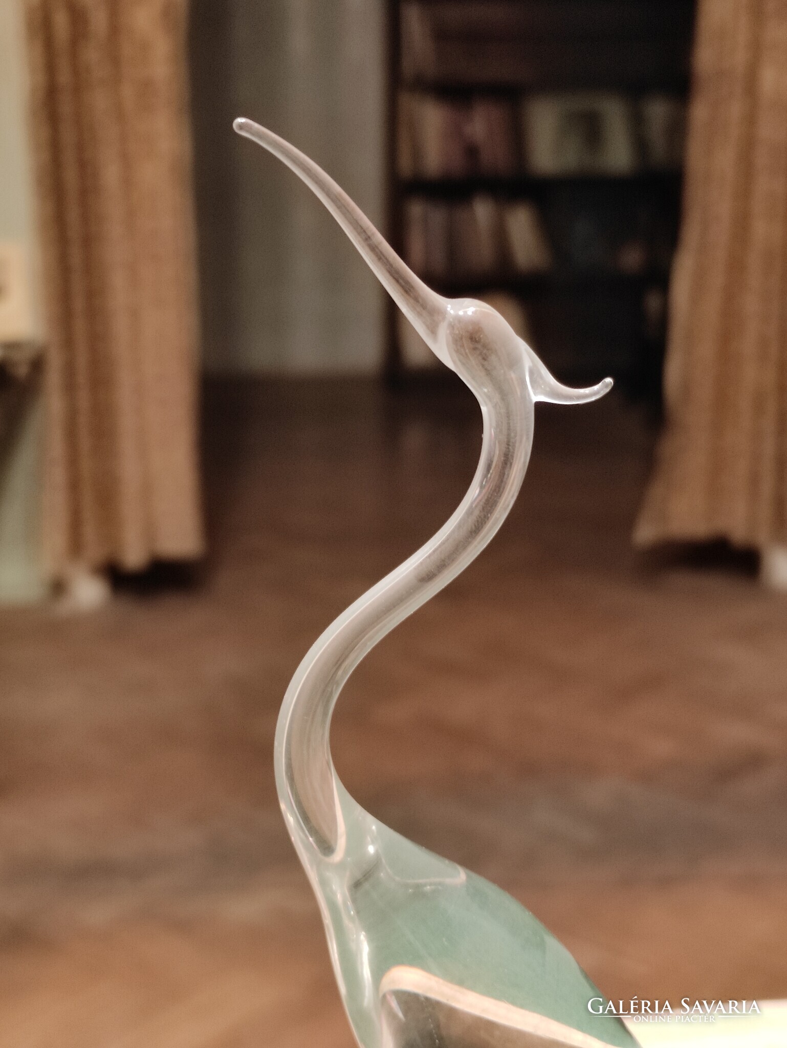 Üvegeszobor - gém, 20. század 60-70. évei, kristályüveg, kompaktan formázva és polírozva.