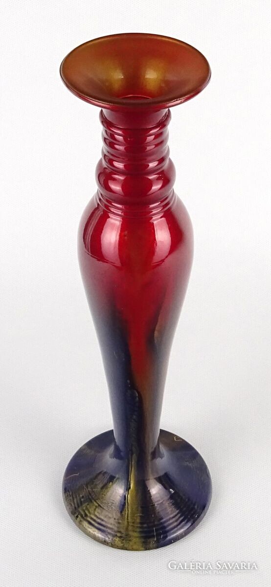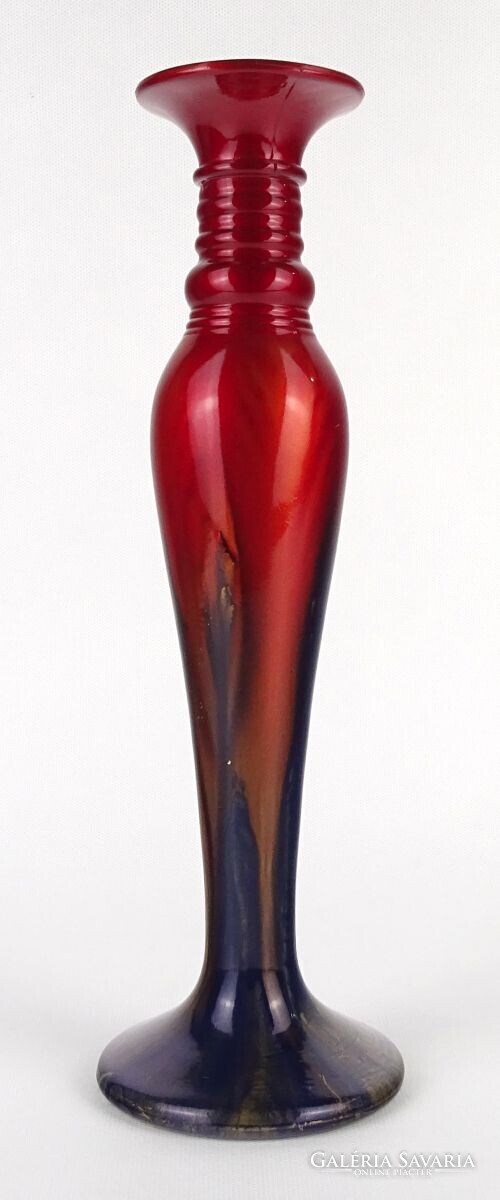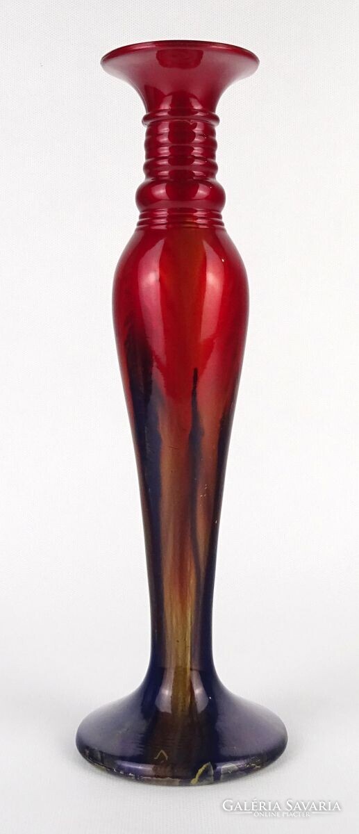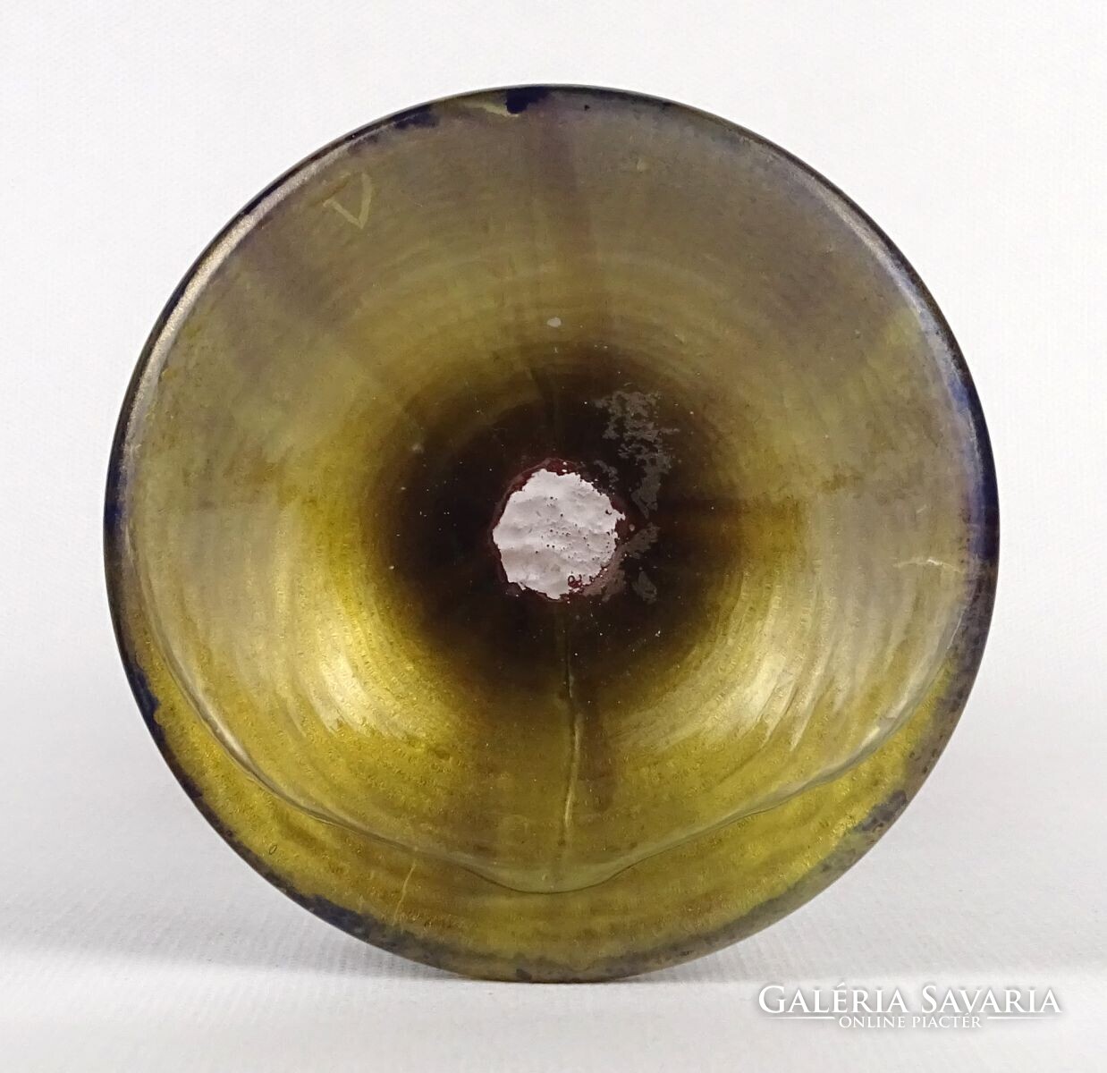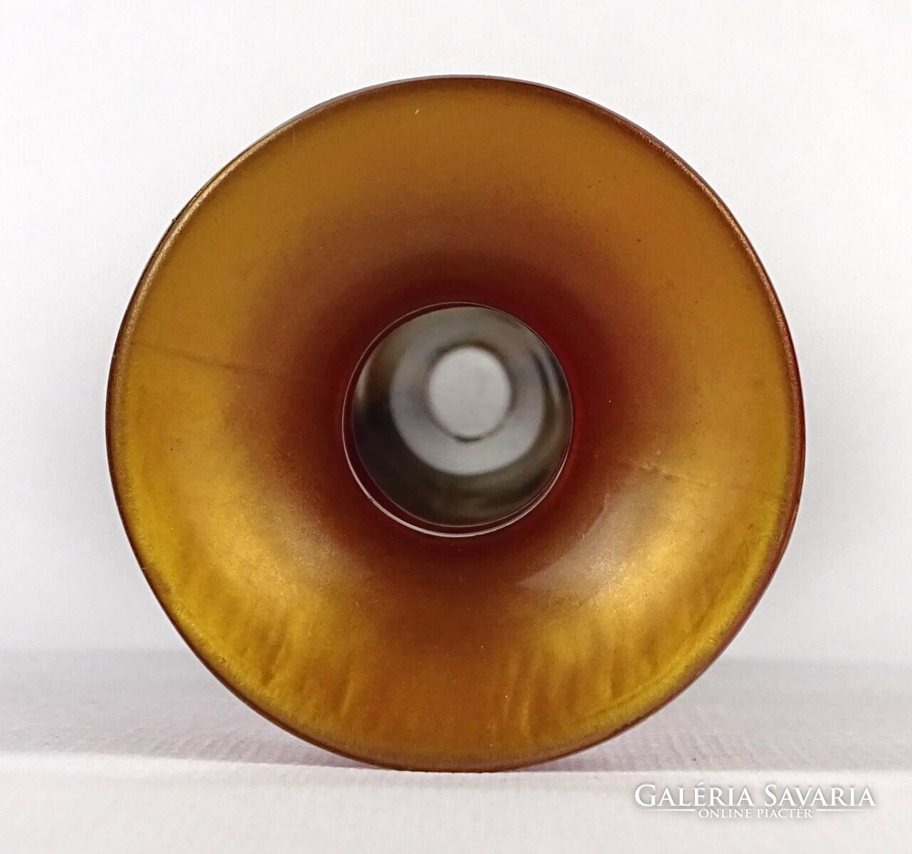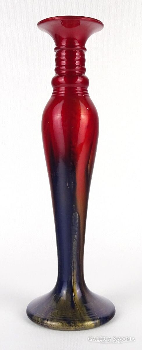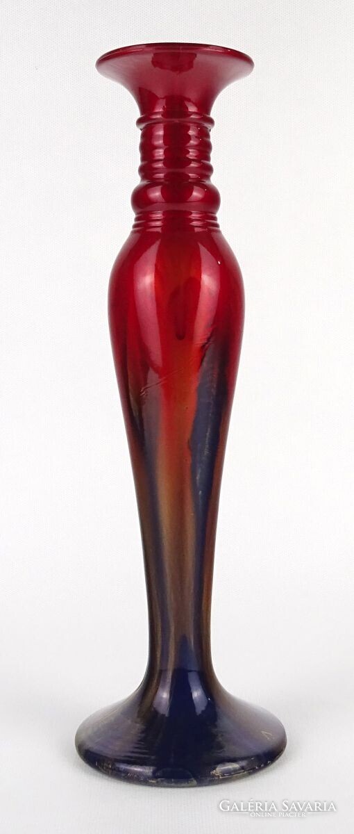 Nagy méretű, karcsú talpas üveg váza, díszváza, virágváza. Szálváza, egy szál virág számára. Formába préselt csorgatott, színezet üveg váza.