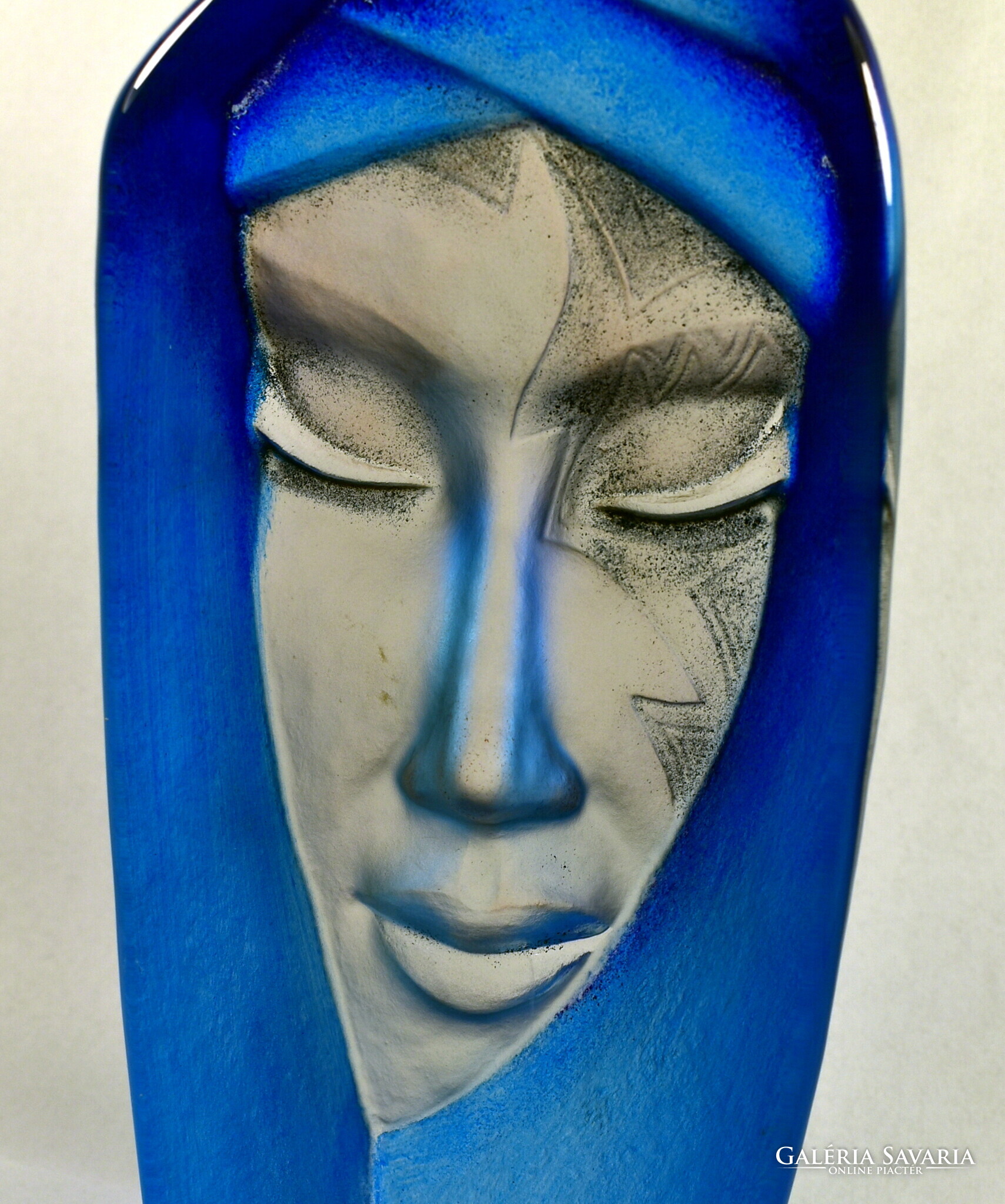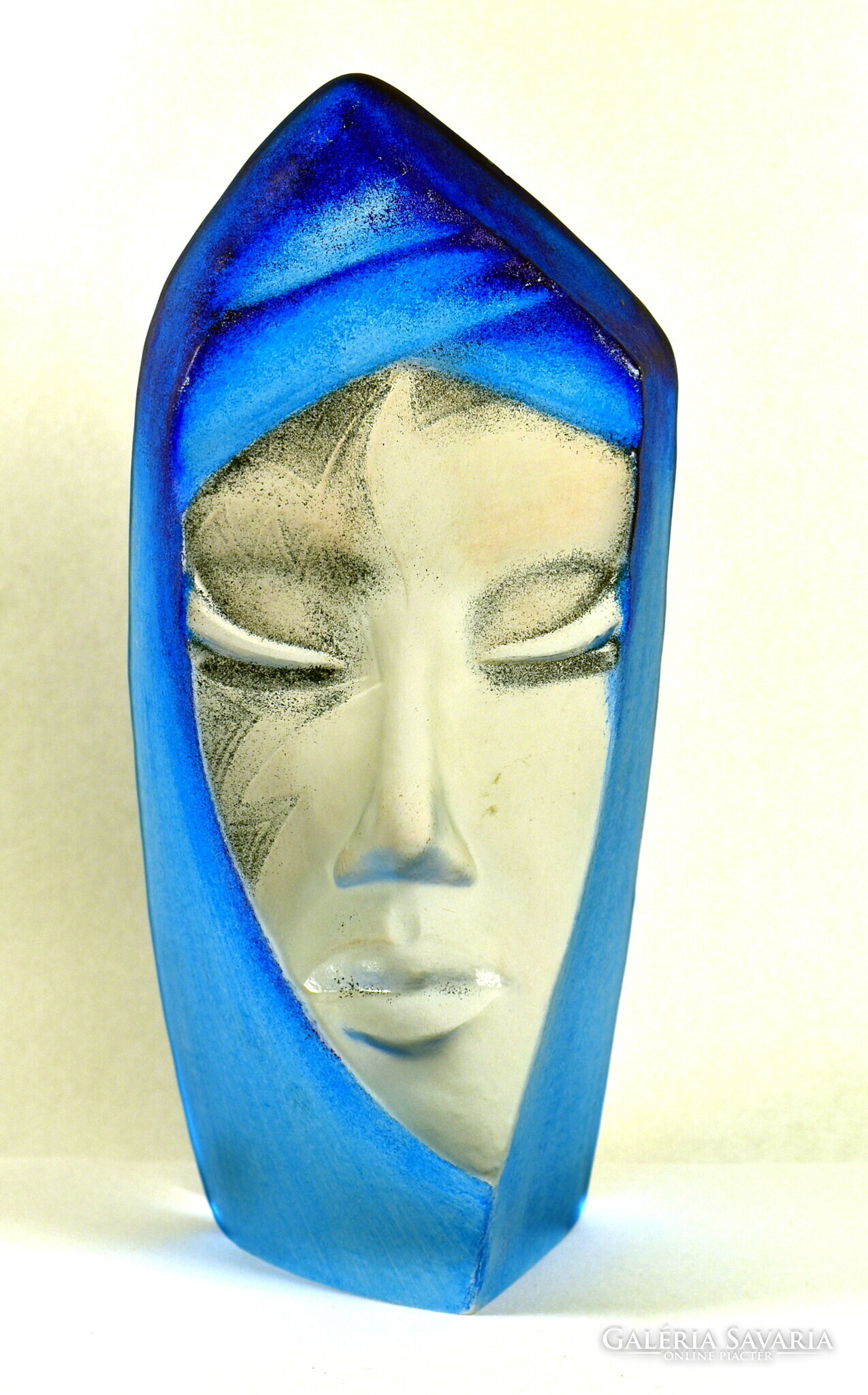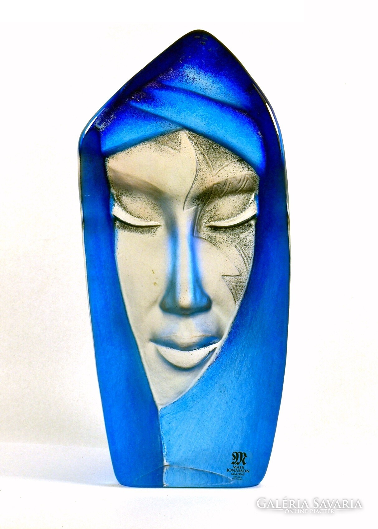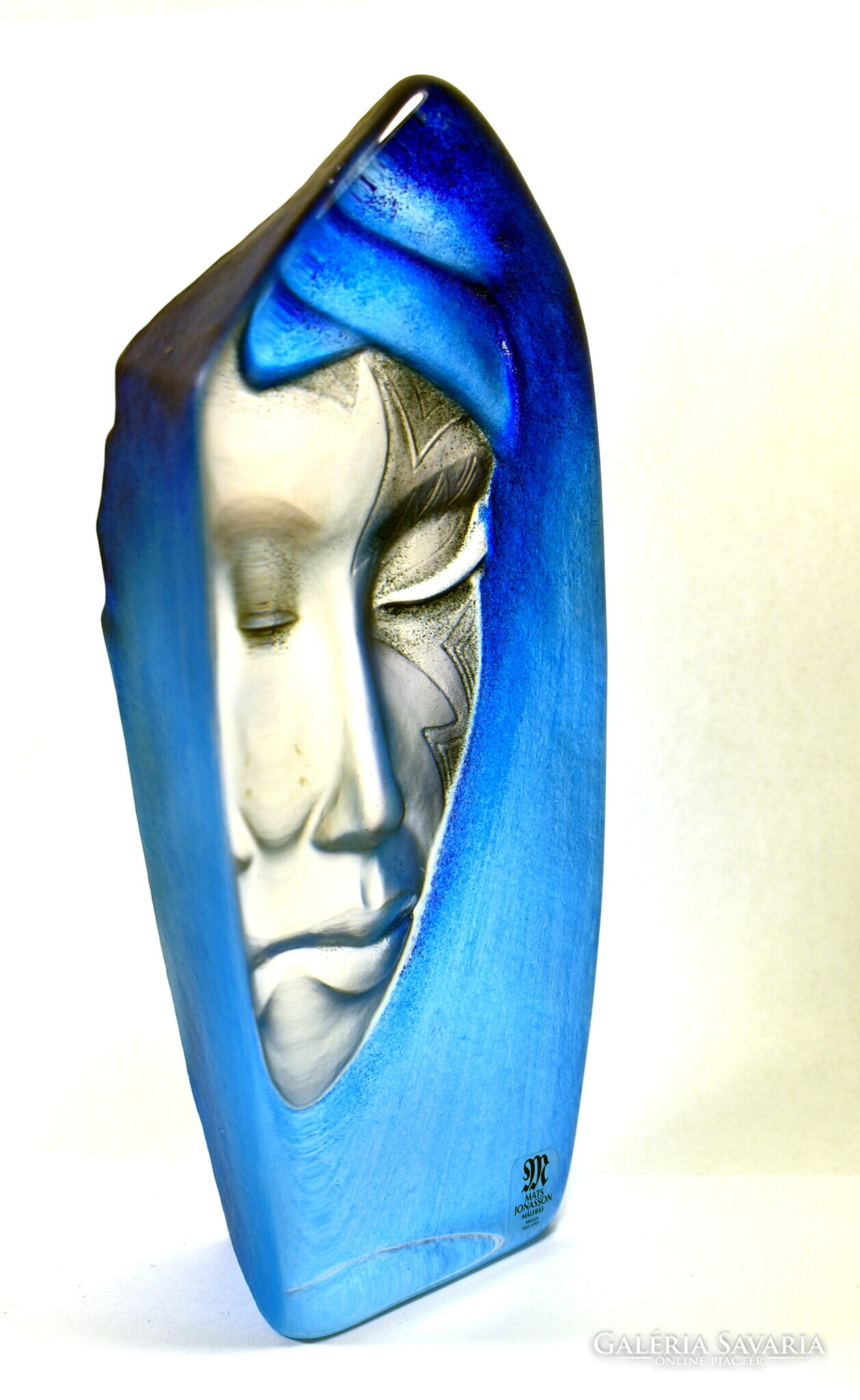 Anyagában színezett formázott kristályüveg , jelezett , csiszolt aljában gravírozással , ritka modell a nemzetközileg elismert Svéd üvegművestől ! Hibátlan , m.: 18.5 x 8 cm Súly 1 kiló !