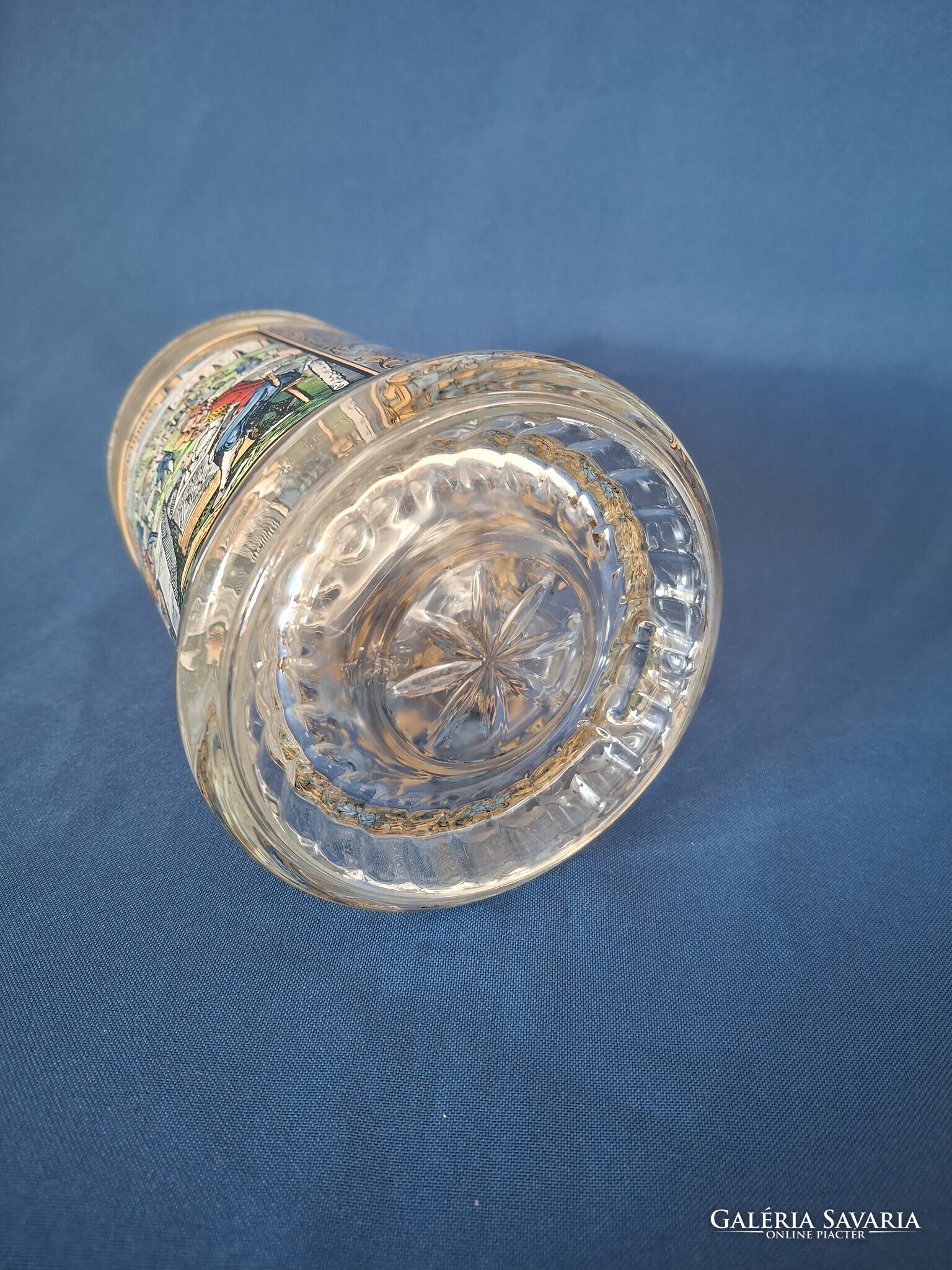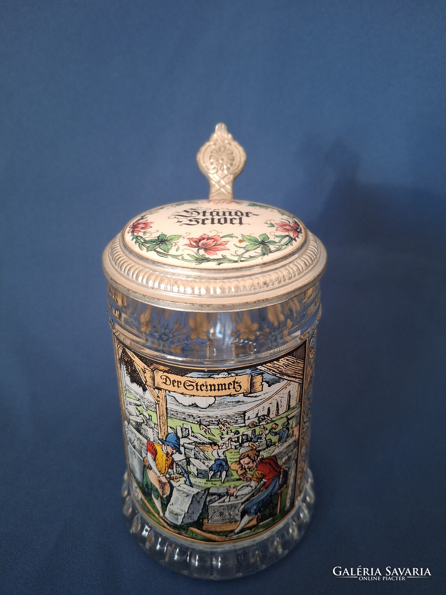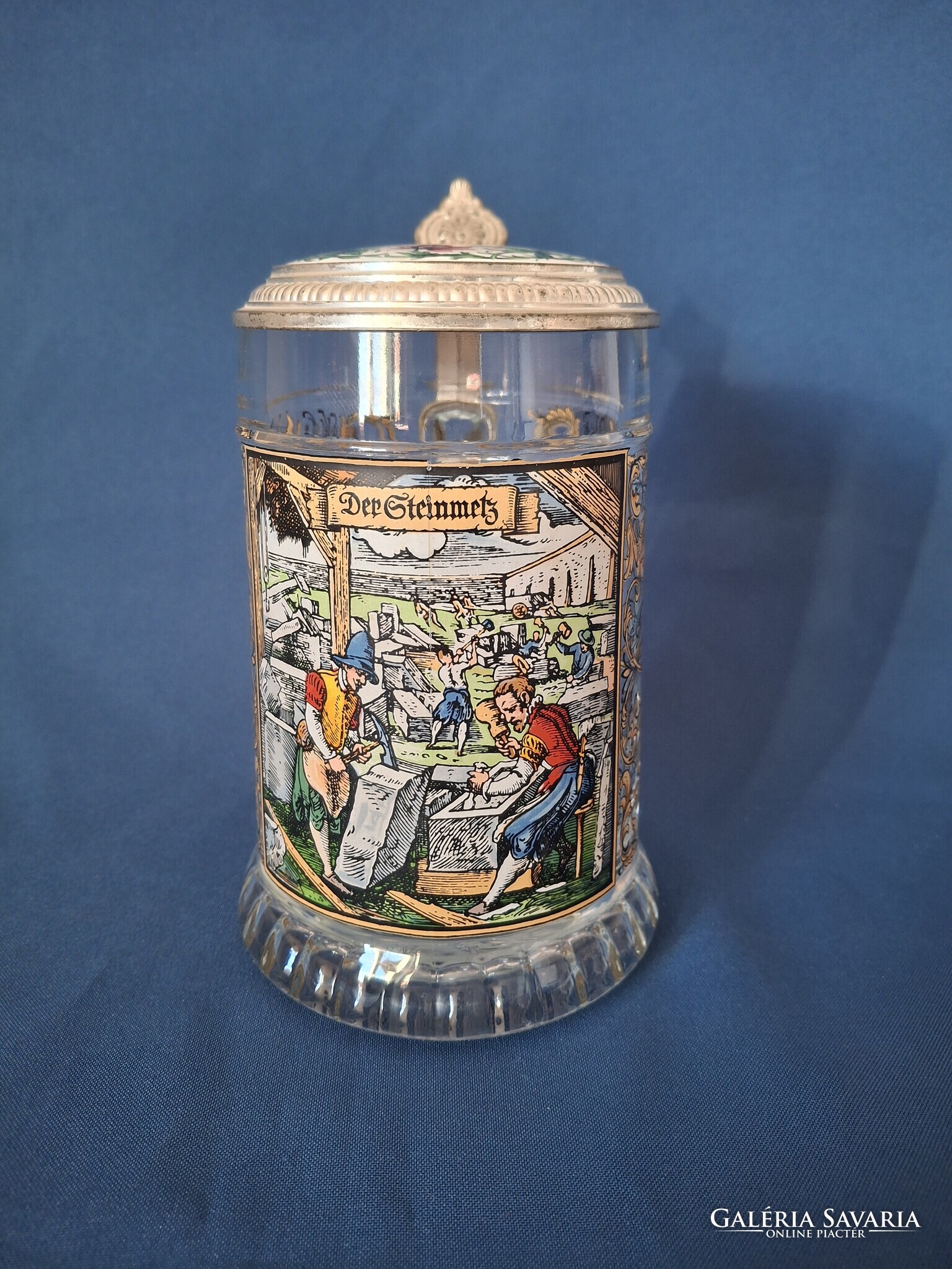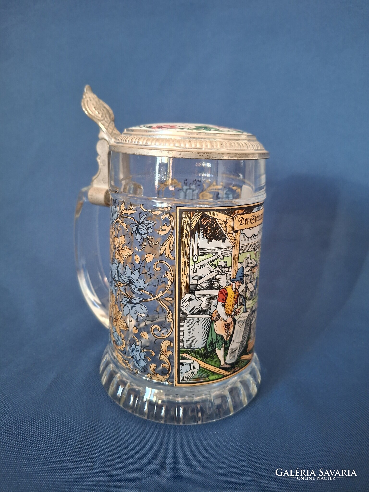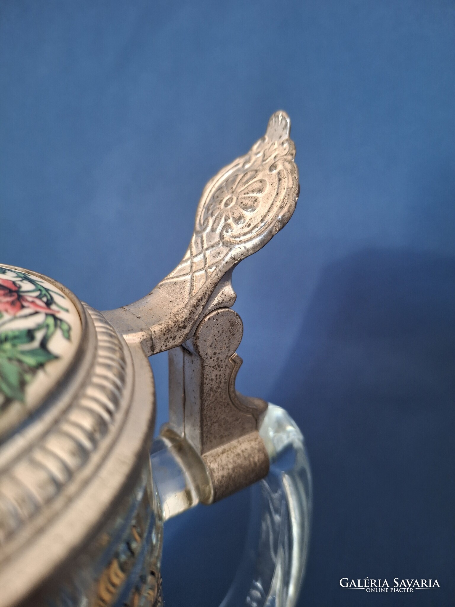 Eladó egy nagyon szép állapotban lévő, német, ónfedeles söröskorsó. A fedél belsejében a gyártó cég monogramja. Űrtartalma kb fél liter .