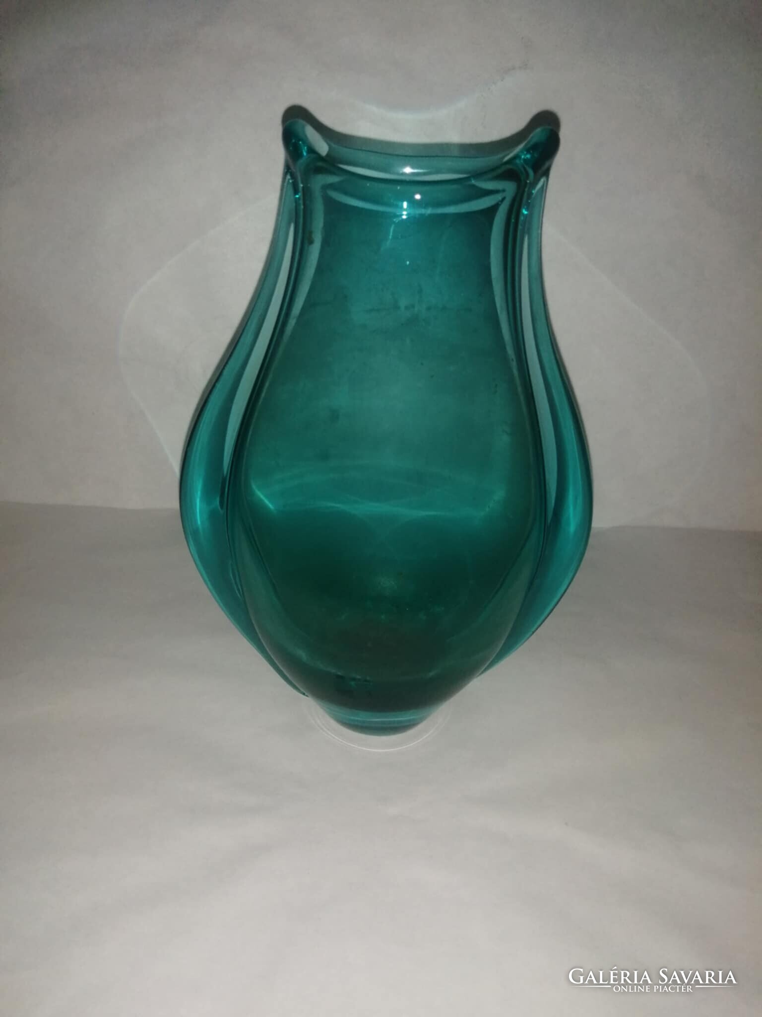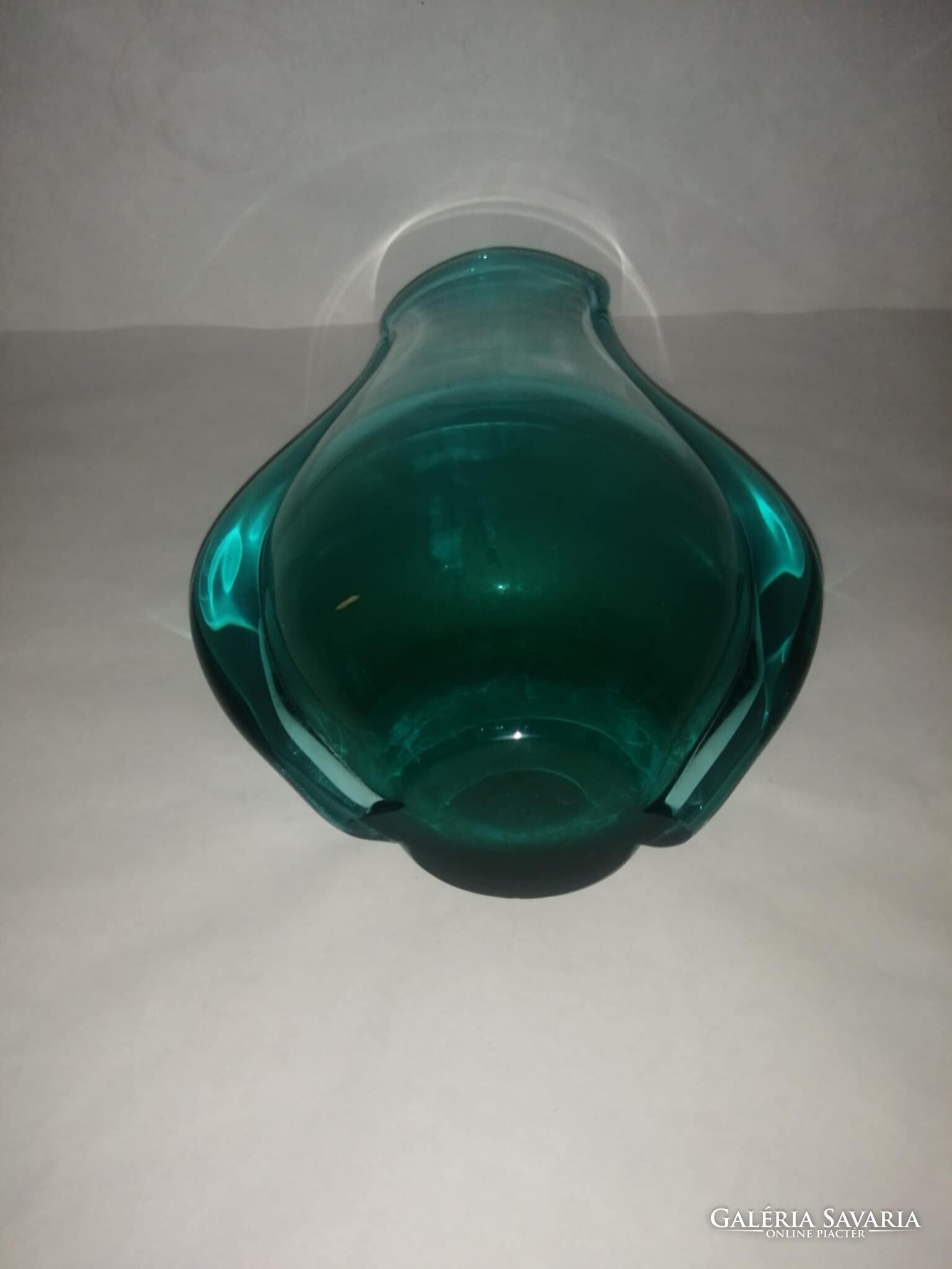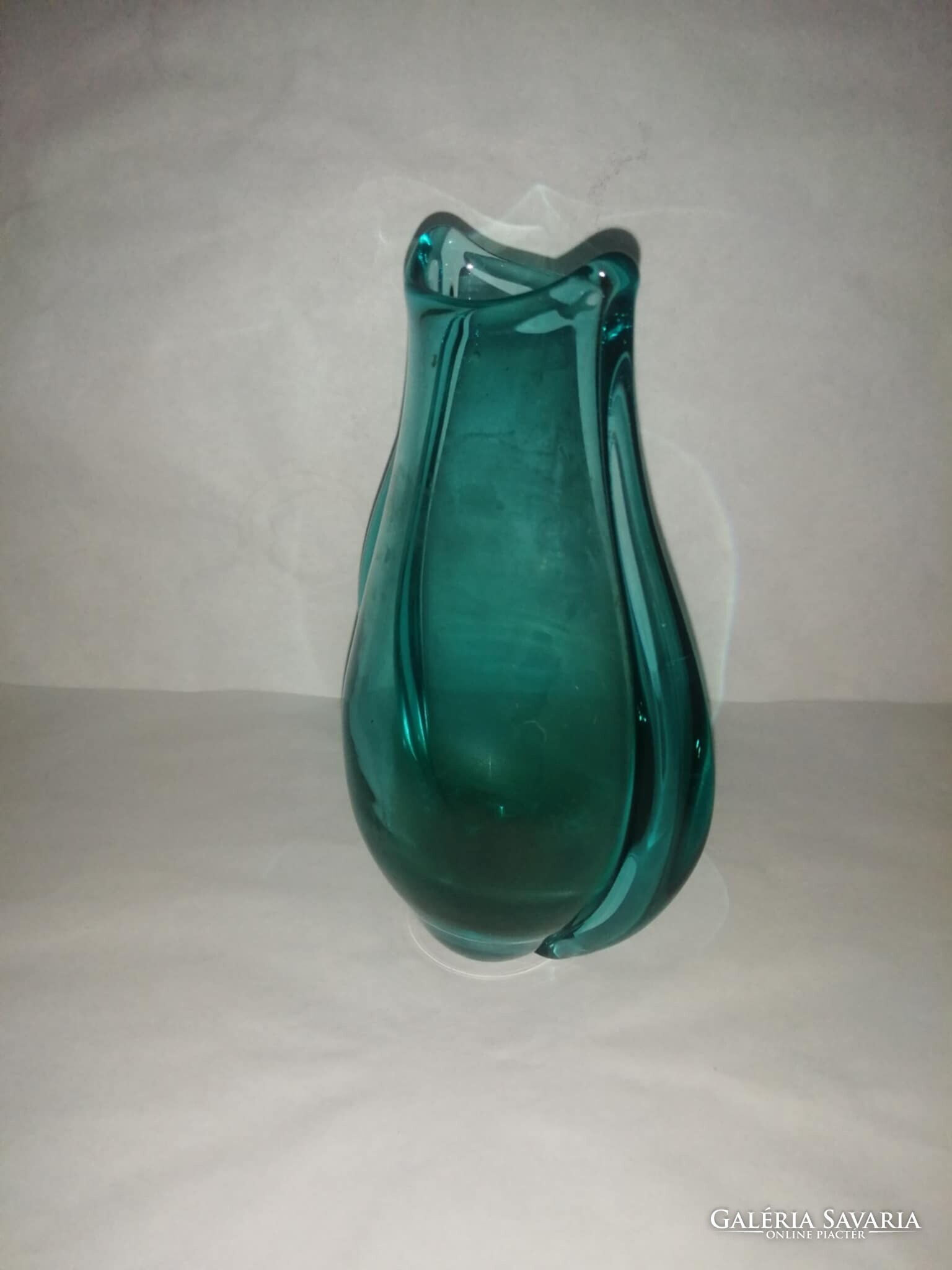 Miloslav Klinger türkiz üveg váza - 18,5 cm magas (25/d)