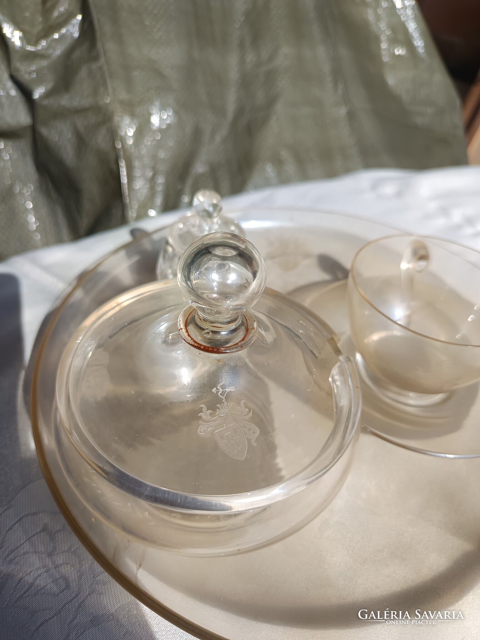 Nemesi címeres, 1 személyes üveg kávézó szett. 1915-20