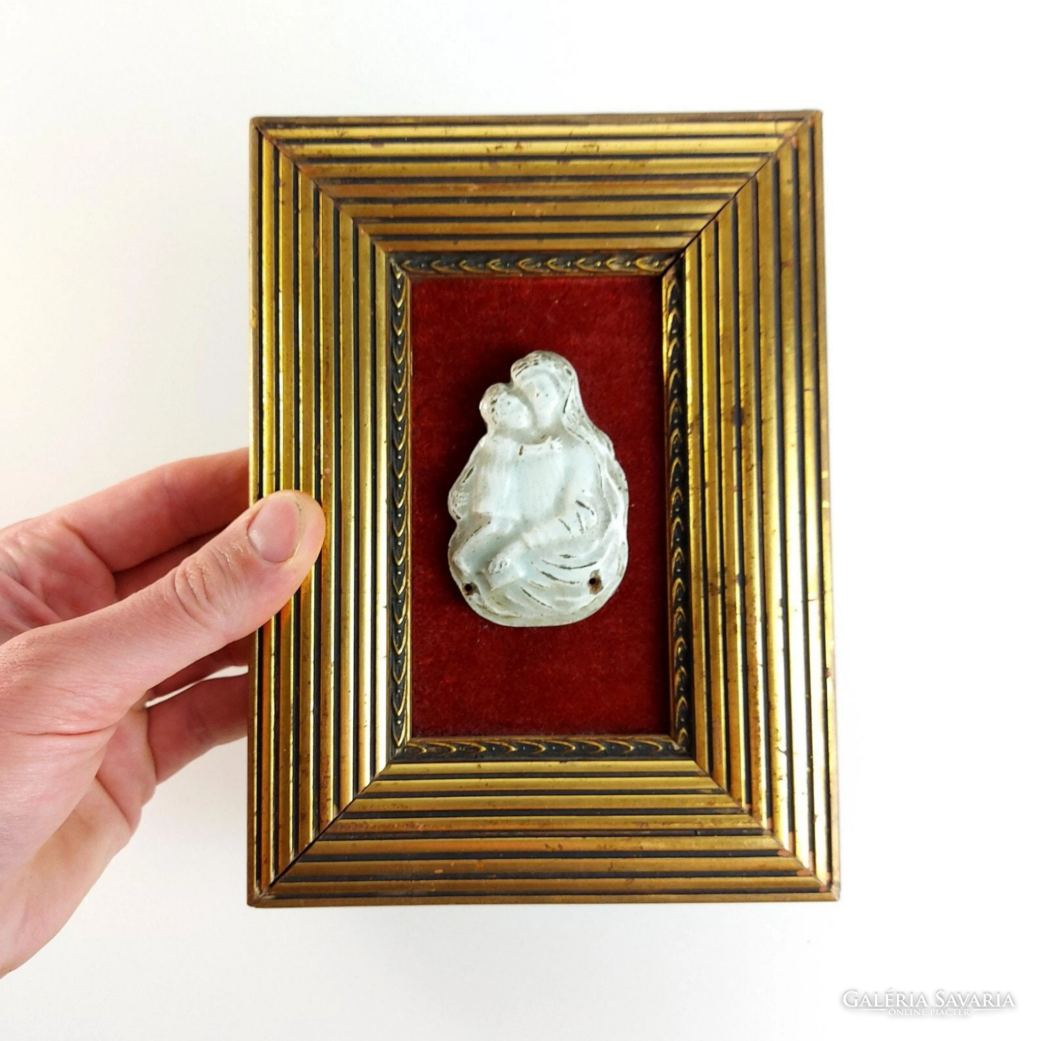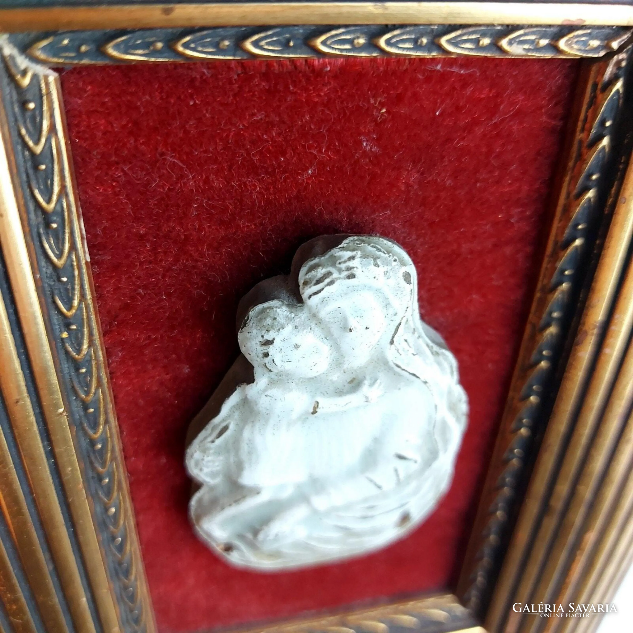 19. századi antik Madonna dombormű aranyozott faragott fakeretben.