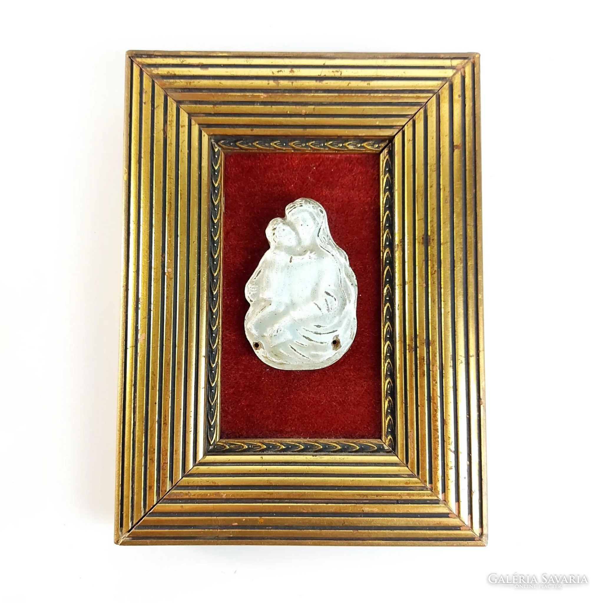 19. századi antik Madonna dombormű aranyozott faragott fakeretben