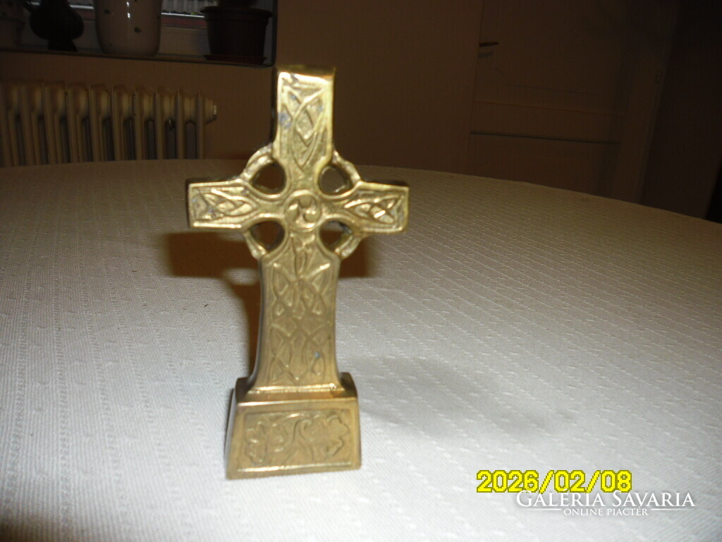 Antik, asztali ortodox /pravoszláv/ réz kereszt, szép gyűjtői darab. Alul az oldalán, vésett IRELAND felirat látható. Hátoldalán tetszetős vésett mintázat.